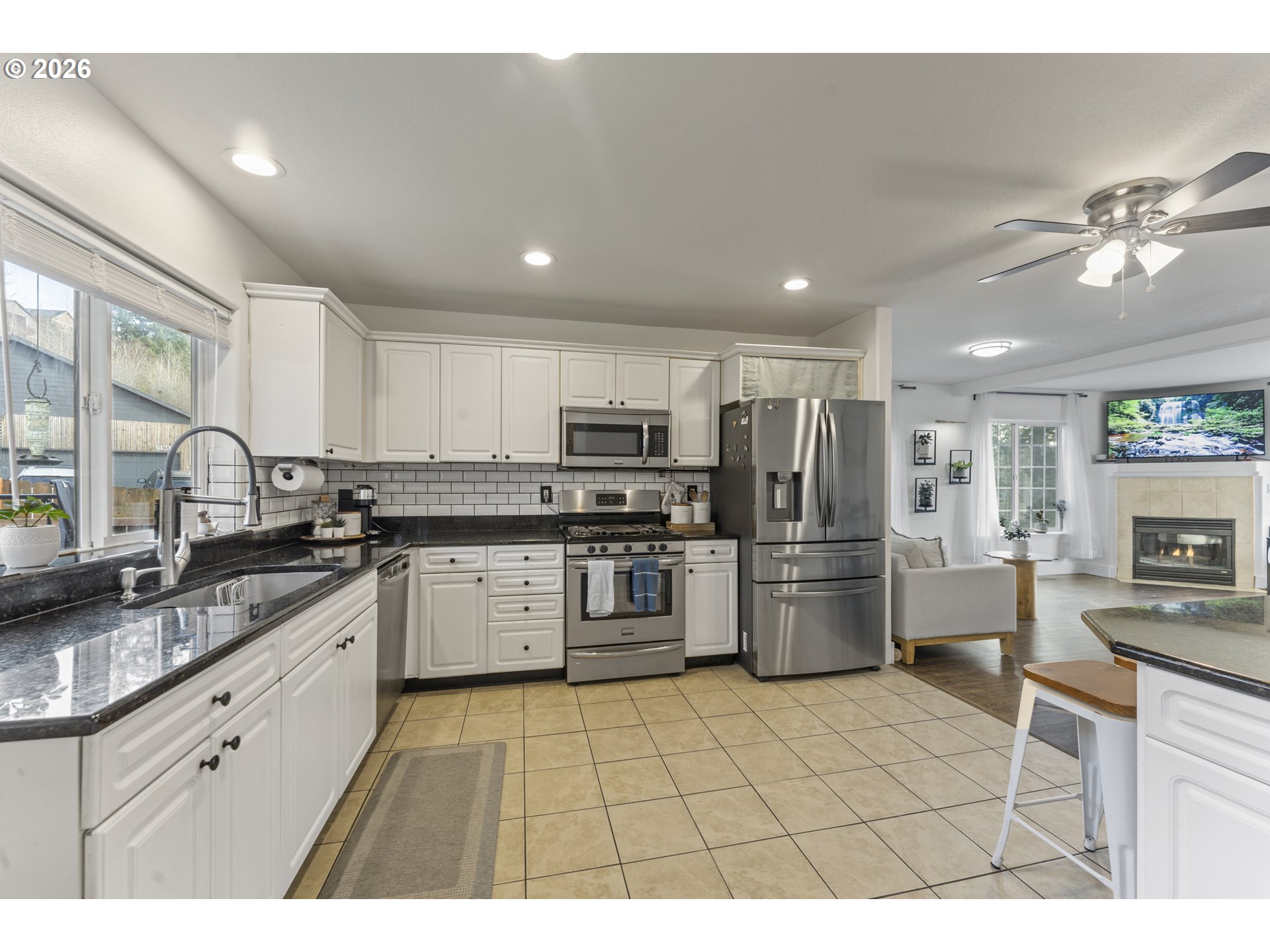 - Spacious 3 bedroom, 2.5 bath home on large fenced corner lot. Being Sold "As-Is." Awesome large covered front porch, great place to hangout! Open floor plan. Living room features a gas fireplace. Luxury Vinyl Plank flooring throughout entire home (no carpet). Kitchen features lots of cabinets, granite counters w/ recessed sink, Large built-in eating area (an against the wall island) with more storage, tile floor, stainless steel appliances, gas range, subway tile backsplash, built-in microwave. Large utility room with built-in cabinets. Upgraded 6" base boards throughout. Primary bedroom has vaulted ceilings, built-in storage, walk-in closet with custom organizers, spacious remodeled bathroom with dual sinks, large mirror and tile flooring. The fenced backyard is well landscaped and has apple, persimmon, fig, cherry & southern & Jane magnolia trees. Also lemon, blackberry, 2 crepe myrtle & limelight hydrangea. Storage is ample with a large shed and storage under the front porch. 2 car garage, new AC & 96% efficient gas furnace in 2023. New roof in 2017. Close to Summerfield Park, Mt. Talbert Nature Park. Clackamas Town Center & Hwy 205 are just 3 miles away. Highly rated schools!