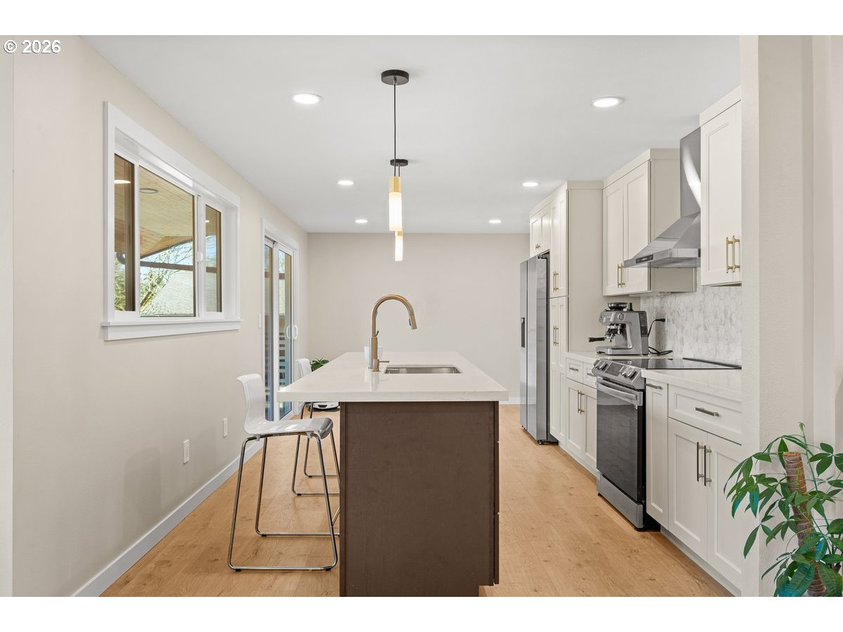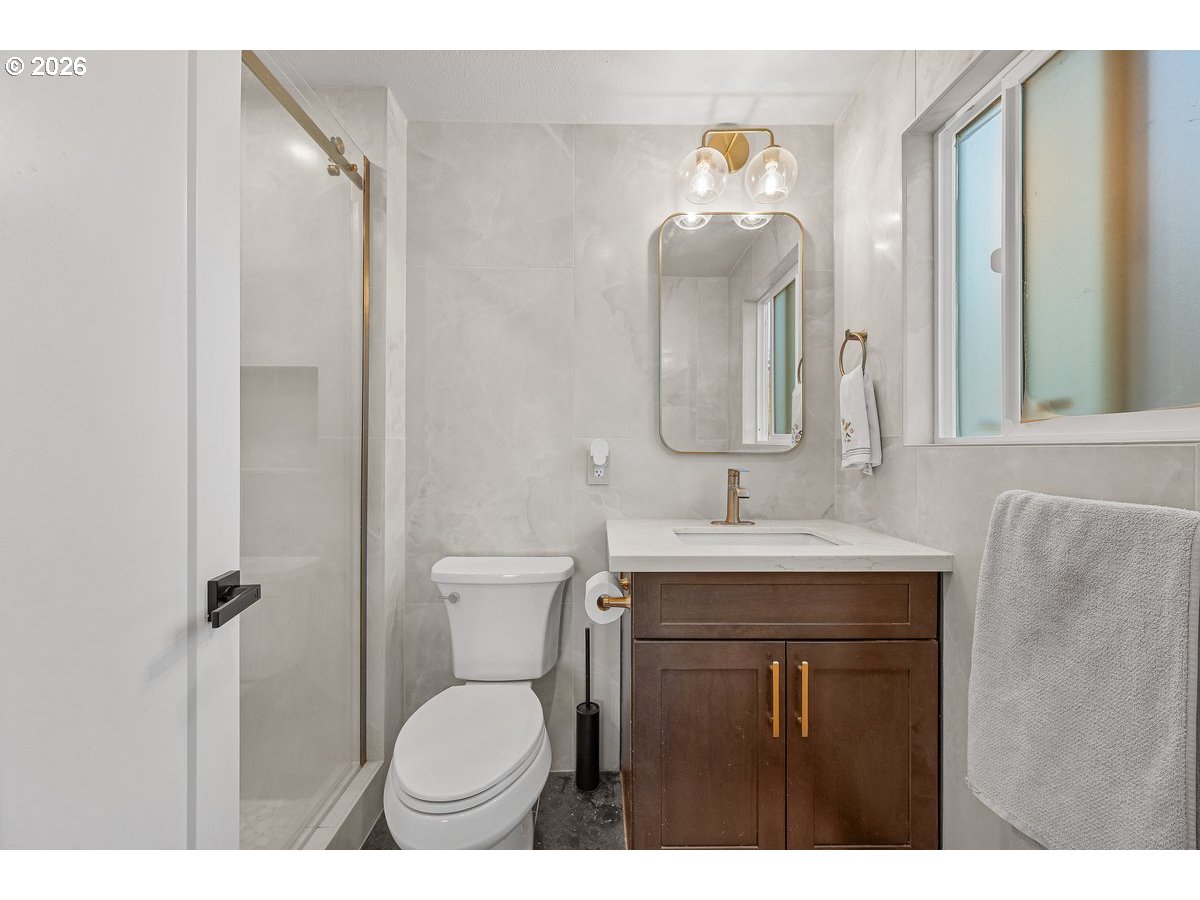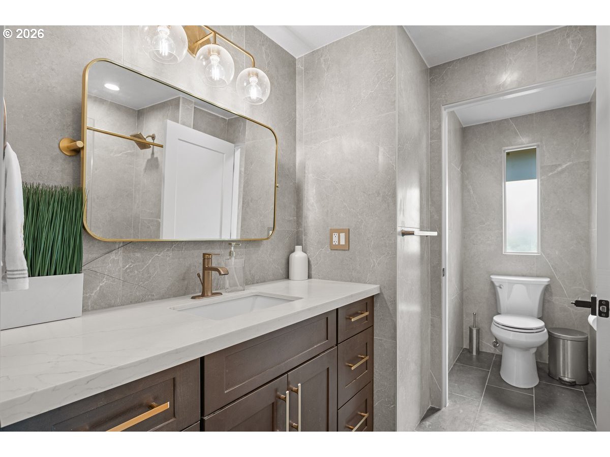 - Beautifully remodeled five bedroom two level home in Felida minutes to Salmon Creek. The home showcases 3 full bathrooms w/ extensive tile work in all bathrooms. Full interior makeover includes LVP flooring, vinyl windows, all new fencing, light fixtures, interior, exterior & closet doors, soft close kitchen cabinets, nine foot island made of quartz & SS Appliances. A nice feature to this home is the open floor plan that starts at the entry w/ stunning new handrails that lead you into an oversized living room w/ 15x10 eating area between kitchen & living room. Beautiful open site lines from the kitchen to the living room w/ electric fireplace. The covered patio is over 150 square feet & overlooks the new manicured backyard that includes astro turf, putting green & multiple patios. Two bedrooms in lower level have closets which is great for a large family or multigenerational living. Oversized family room that leads out to the large patio. Has a bonus room that could be utilized as a home office. This is a very spacious home that provides a lot of different options for an expanding family. Astro turf in both front & backyard w/ a beautiful new front porch. The backyard is stunning and set up perfect for the golf enthusiast.