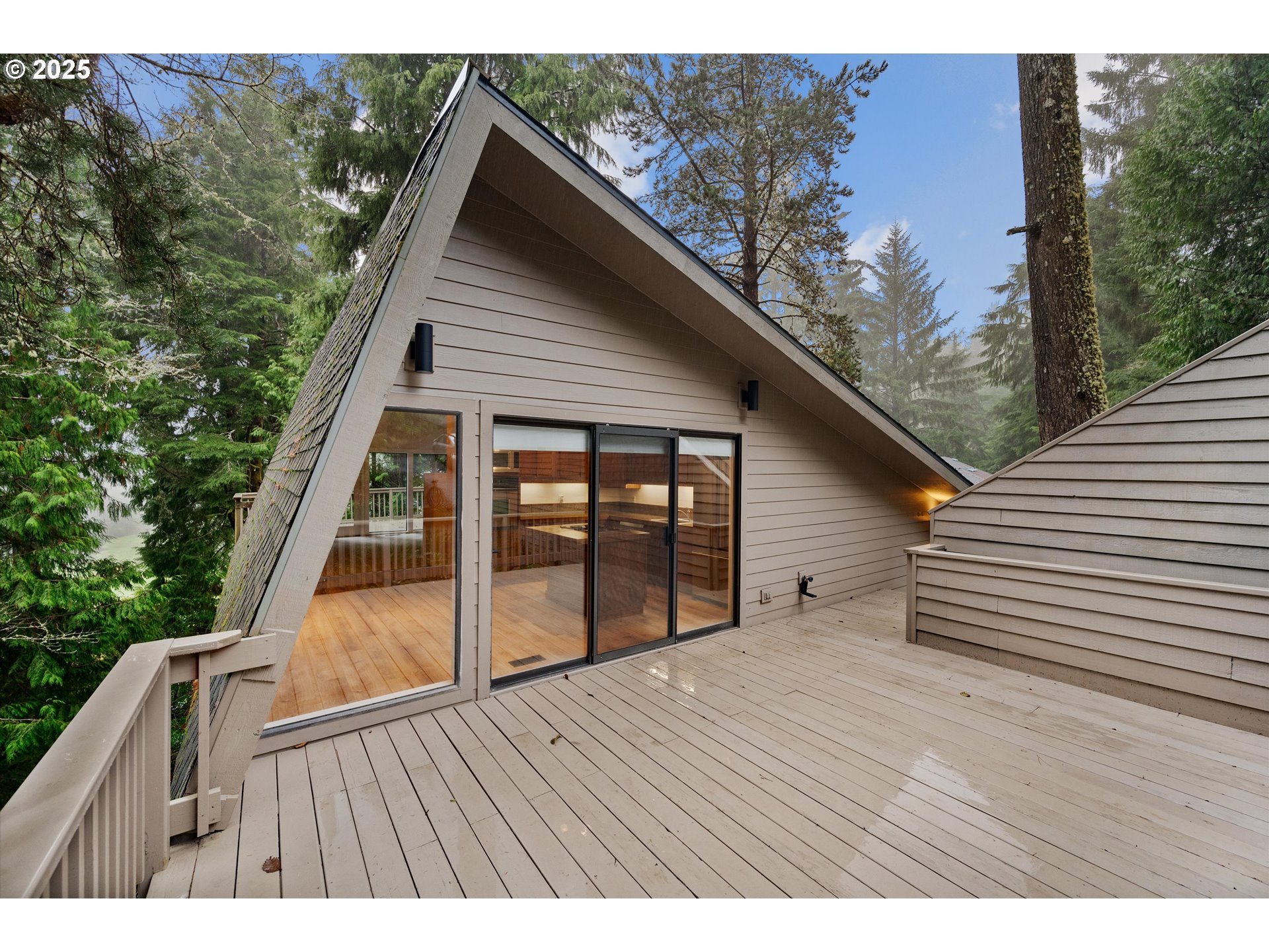 - Lodge inspired charm shines throughout with warm cedar accents, vaulted ceilings, expansive windows, and a cozy gas fireplace. A slider off the kitchen opens to an oversized deck, perfect for outdoor living and entertaining. The spacious primary suite features modern closet doors and an updated bath. Two additional guest bedrooms share a beautifully renovated bathroom.Above the detached garage, you'll find a fantastic studio/guest quarters or office complete with a half bath—ideal for added flexibility. Enjoy the serenity of multiple decks nestled among the trees, overlooking the 4th tee of the Peter Jacobsen designed 18 hole golf course.Recent improvements include foundation and cross-bracing work, new flooring, two fully renovated bathrooms, fresh paint, updated lighting fixtures, and more!
