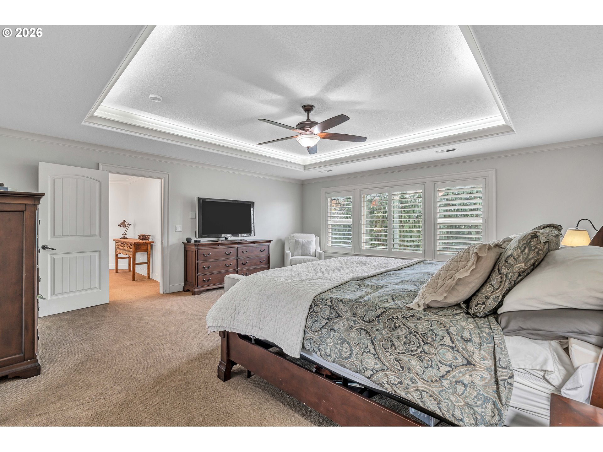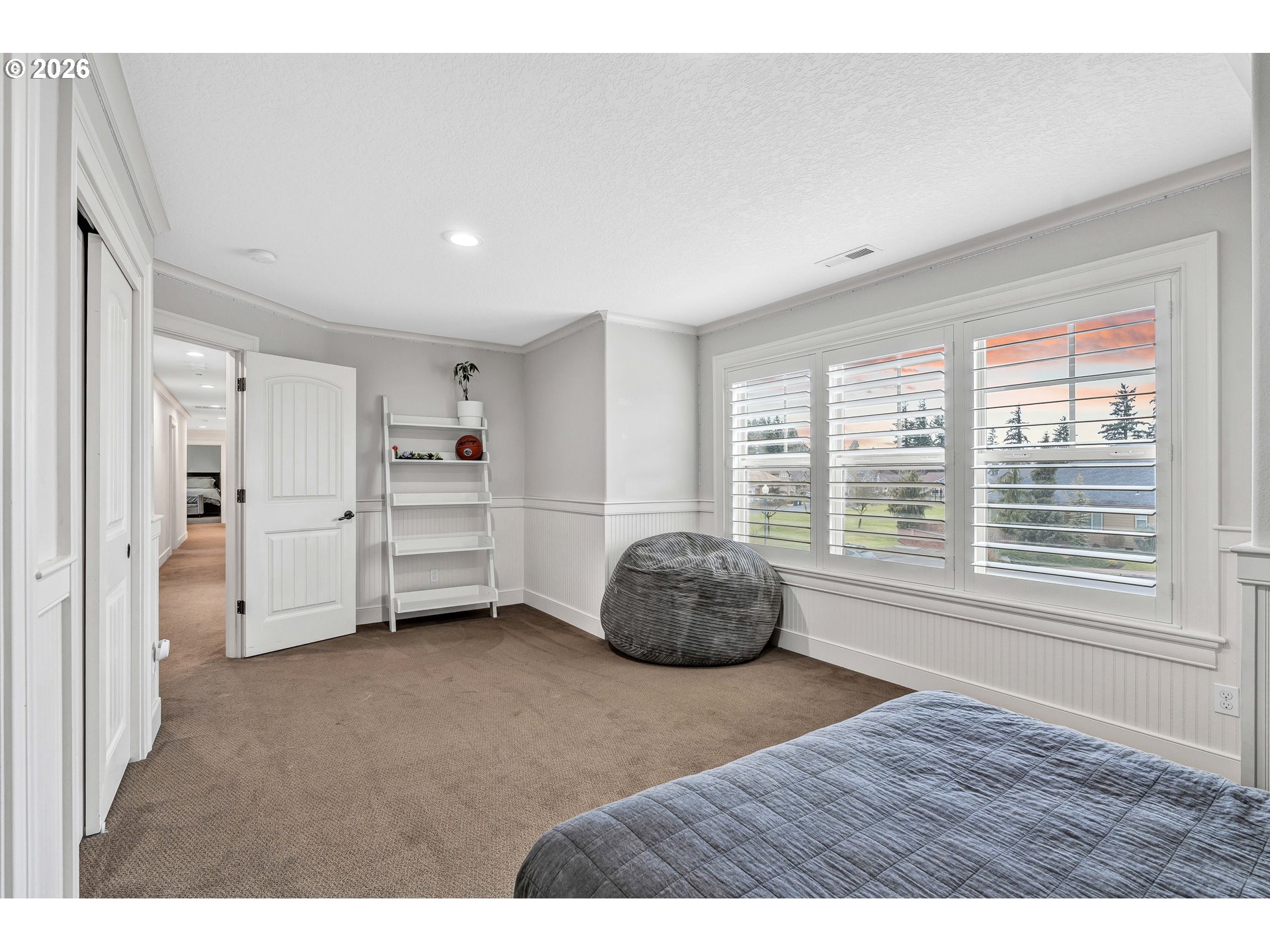 - Step into unparalleled luxury in this stunning two-level estate featuring 7 bedrooms and 5 baths, all on a huge lot bordering the park. The main floor welcomes you with gleaming hardwood floors, an open-concept living, dining, and gourmet kitchen space, and oversized windows that flood the home with natural light. The living room fireplace creates a warm focal point, while the dining area’s sliding doors seamlessly connect indoor and outdoor living. A guest suite with ensuite bath offers convenience and privacy. The chef’s kitchen is a showstopper, boasting a $200k remodel, custom cabinetry, a hidden butler’s pantry with ice maker, double oven, and induction cooktop, plus an entry mudroom designed for modern living. Upstairs, six spacious bedrooms feature wall-to-wall carpeting, with three offering private ensuite baths. The expansive primary suite includes French doors, a walk-in closet, and a spa-like bathroom with double sinks, a soaking tub, and walk-in shower. Premium custom finishes, extensive millwork, and smart design details elevate every room. Comfort and efficiency are ensured with a brand-new AC, furnace, and a water heater just 2 years old. Car enthusiasts will appreciate the 5-car garage with a huge shop, while outdoor amenities include a basketball court, shed, fenced backyard, expansive patio with firepit, and meticulously landscaped grounds—perfect for entertaining or relaxing in style. This home effortlessly blends elegance, function, and luxury for the ultimate living experience on a remarkable park-adjacent lot.