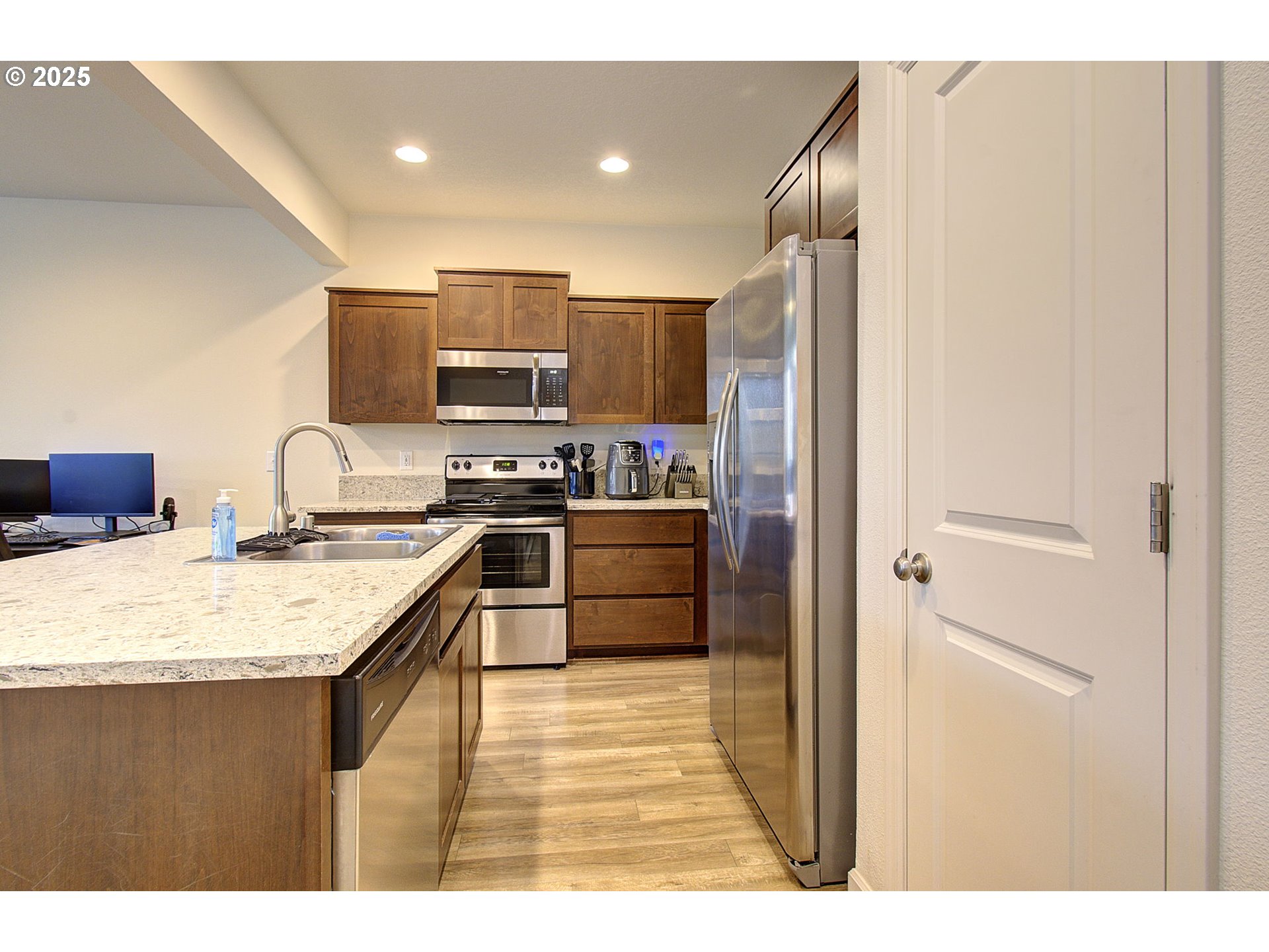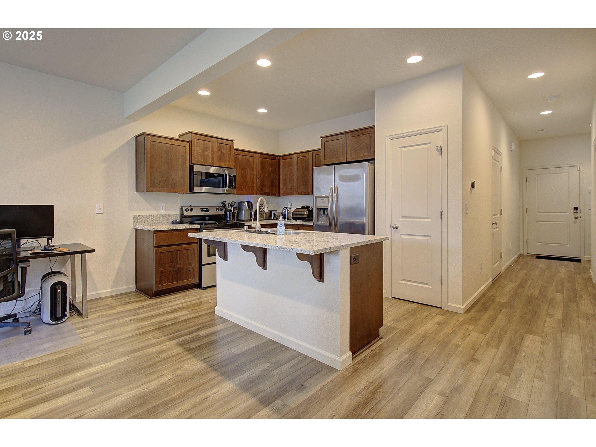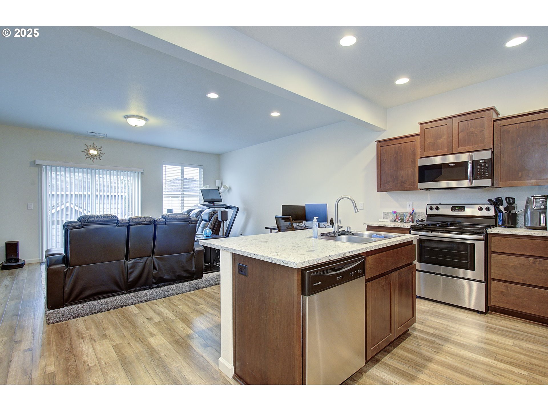 - Is a new home on your Christmas list this year? This one is ready for its next owner before the holidays. The main level has an open layout with nine-foot ceilings and laminate flooring throughout. The kitchen offers plenty of space to cook and gather with a large island, stainless steel appliances, and custom cabinetry. The living room opens to a back deck that overlooks the fully fenced yard. Upstairs are three bedrooms and two full bathrooms, including a primary suite with a walk-in closet. The home is energy efficient and includes an oversized one-car garage for extra storage and parking. This move-in-ready home won't last long.