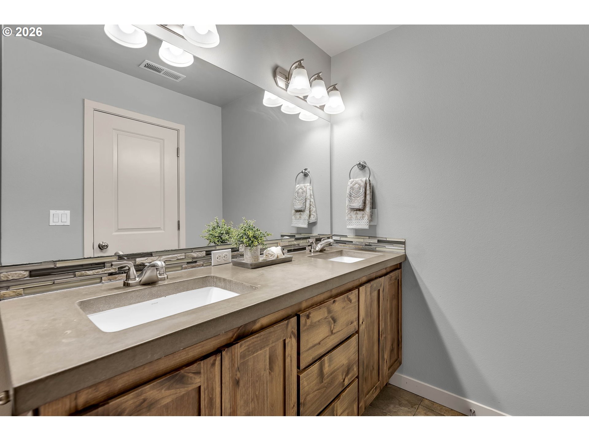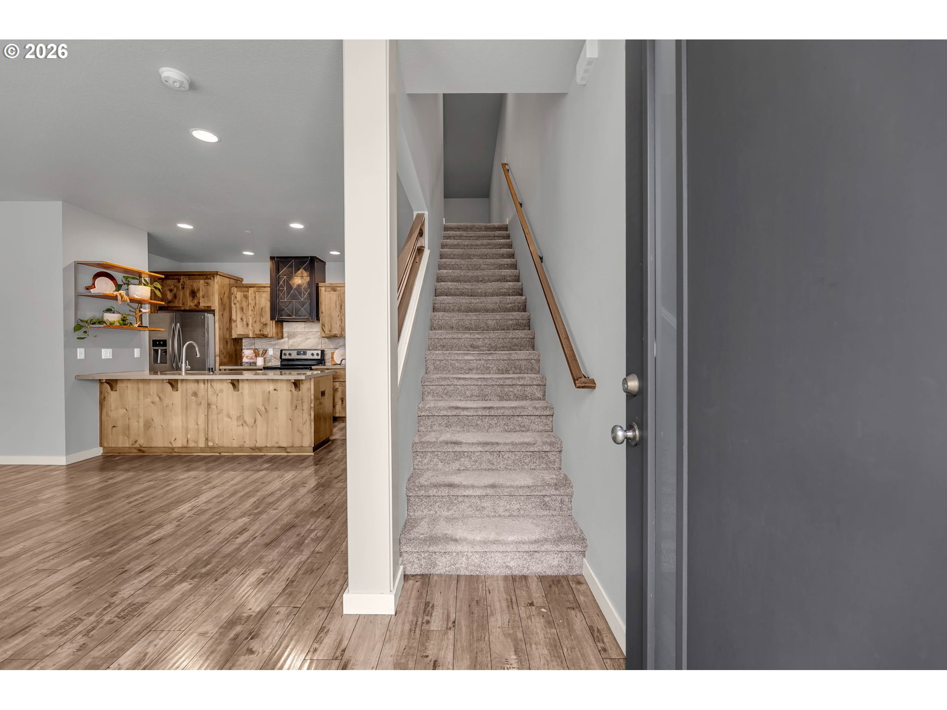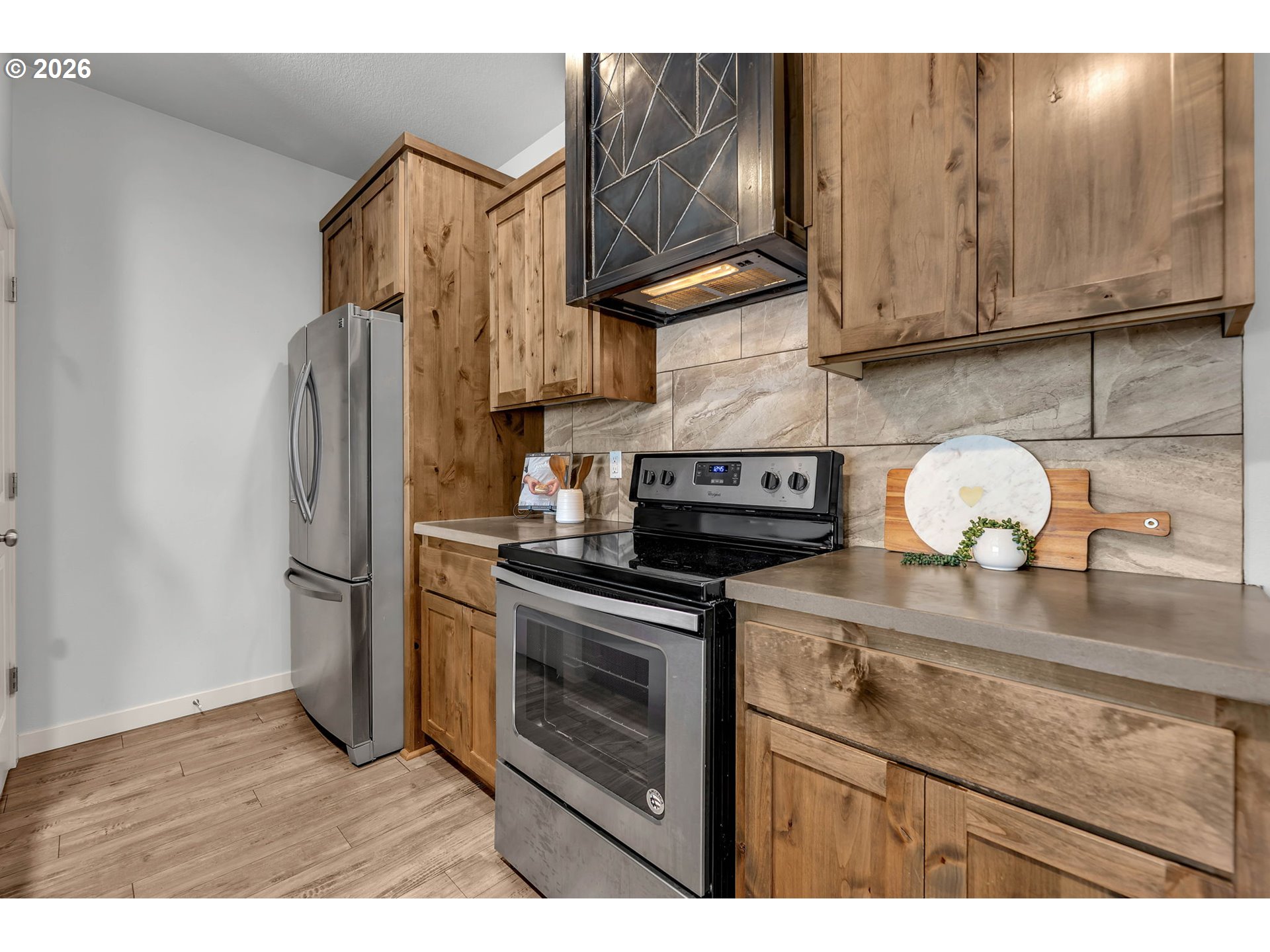 - Low-maintenance living in the heart of Ridgefield. This modern home's front yard features hassle-free astro-turf maintained by the HOA, giving you more time to enjoy the vibrant surrounding community. Inside, the main level offers a functional floor plan that seamlessly connects the great room, powder bath, and a modern kitchen. Designed for everyday living and entertaining, the kitchen is beautifully appointed with sleek concrete countertops, an eating bar, a dedicated pantry, and premium stainless-steel appliances, including the refrigerator. Upstairs, a spacious loft area provides the perfect setup for a home office, media room, or play area. The vaulted primary suite serves as a relaxing private retreat, complete with a generous walk-in closet and an en-suite bathroom featuring a tiled walk-in shower and dual vanity. The upper level is rounded out by two additional bedrooms, a full guest bathroom, and laundry room with the washer and dryer included. The attached two-car garage is easily accessed via the rear alley, providing off-street parking. Beyond the home, an unbeatable lifestyle awaits. Just one street away, Pioneer Picnic Park offers overflow parking, a playground, and covered picnic tables. Other nearby parks include Rose Homestead Park and its full basketball court. City of Ridgefield has numerous parks and a waterfront development providing multi-use trails. When you are ready to explore further, you are just minutes from the bustling hubs of Pioneer Village and Discovery Ridge, home to local coffee shops, ice cream parlors, restaurants, and retail stores. Finally, you can soak in the historic charm of Downtown Ridgefield, known for its unique boutiques, delightful eateries, and popular seasonal small-town events.