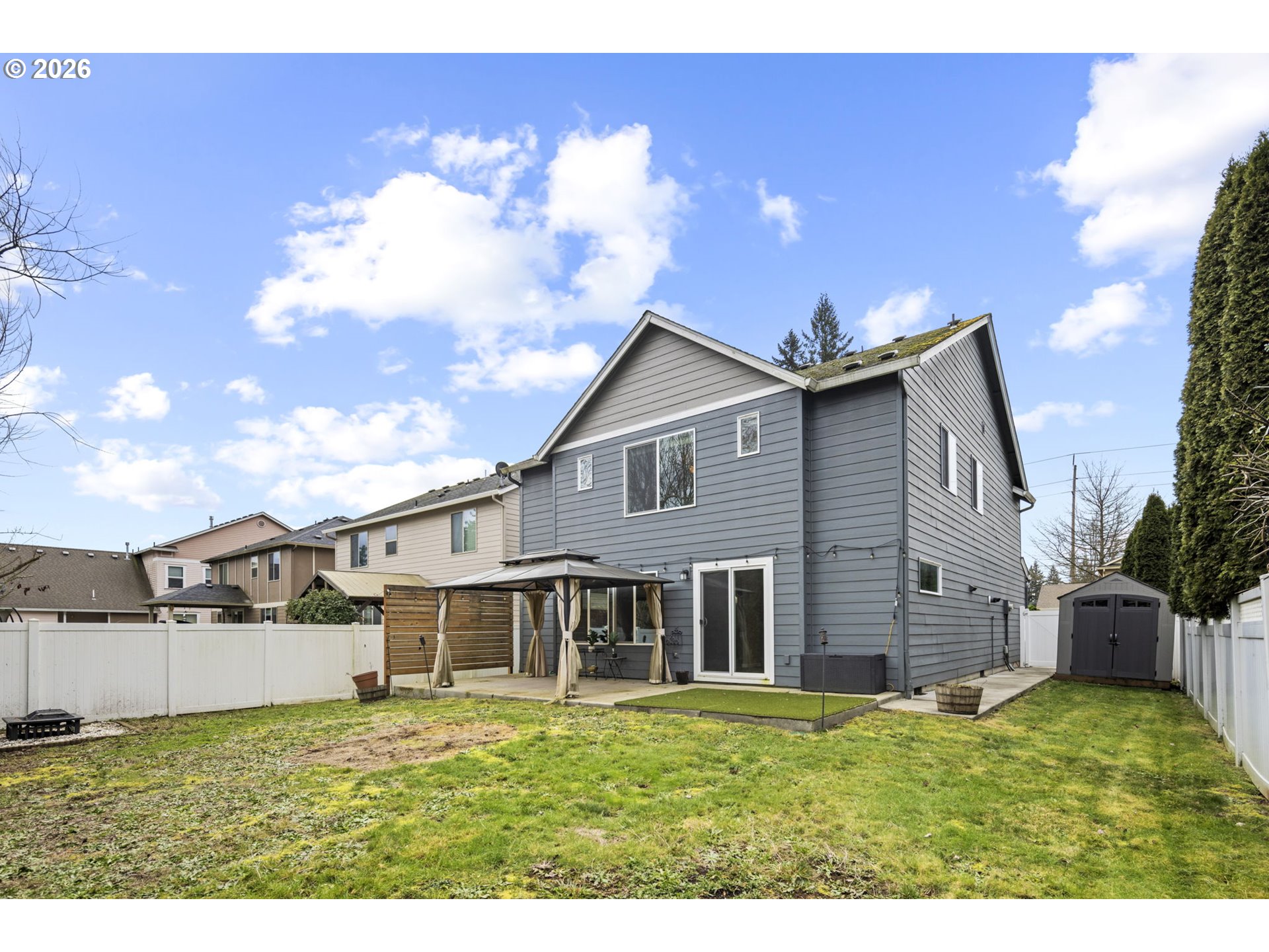 - Back on market / No fault of seller. Welcome to this beautifully maintained 2-story traditional home in desirable Misty Dawn Estates! This 2,104 sq ft residence features 4 bedrooms and 2.5 baths with NEW CARPET throughout. Main level offers open living space, kitchen with stainless steel appliances, built-in microwave, dishwasher, pantry, and half bath. Upstairs includes spacious primary bedroom, three additional bedrooms, and two full baths with soaking tub.Forced air heating, tankless gas hot water, and central air. Fiber cement siding and composition roof. Enjoy your privacy and space with fenced yard, patio, porch, raised beds, sprinklers, and tool shed. Attached 2-car garage PLUS RV parking! This dream home is move-in ready!