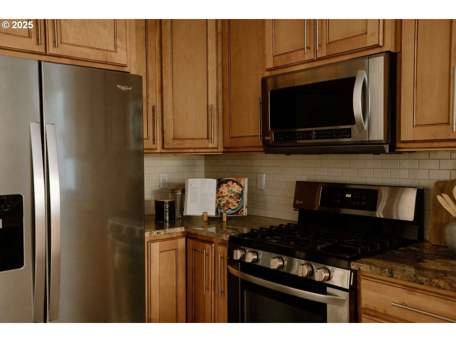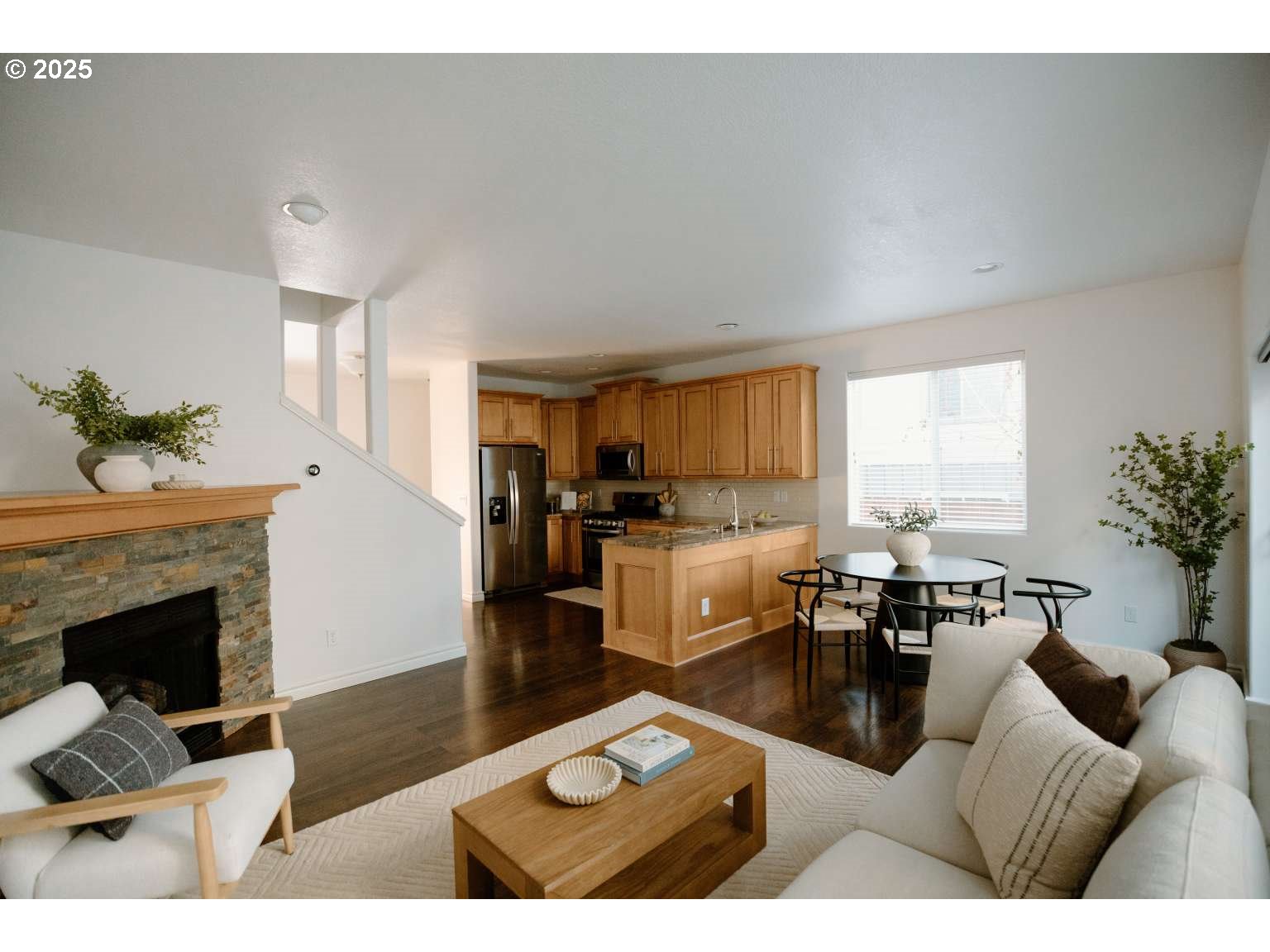 - Beautiful end-unit townhouse, clean, well-maintained, and move-in ready! This home has been thoughtfully cared for over the years, with a major round of updates completed in 2015, including new cabinets, granite and quartz countertops, tile and laminate flooring, updated plumbing and lighting fixtures, and a tiled master shower. In 2025, the home received fresh carpet, new interior paint, and a brand-new roof, giving it a refreshed feel.All three upstairs bedrooms feature vaulted ceilings, and the main level offers an open floor plan with 9' ceilings and a slate fireplace. The property also includes extra built-in storage in the garage and a low-maintenance backyard with a private patio. Well kept, spacious, and ideally situated—this end-unit townhome is a great opportunity!
