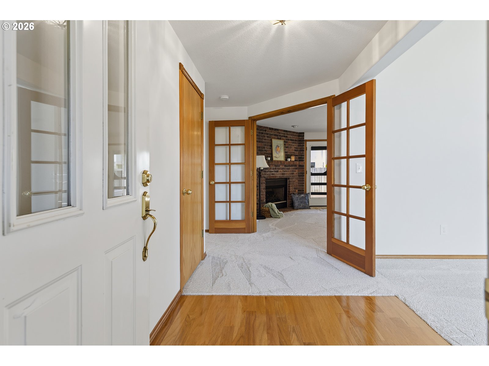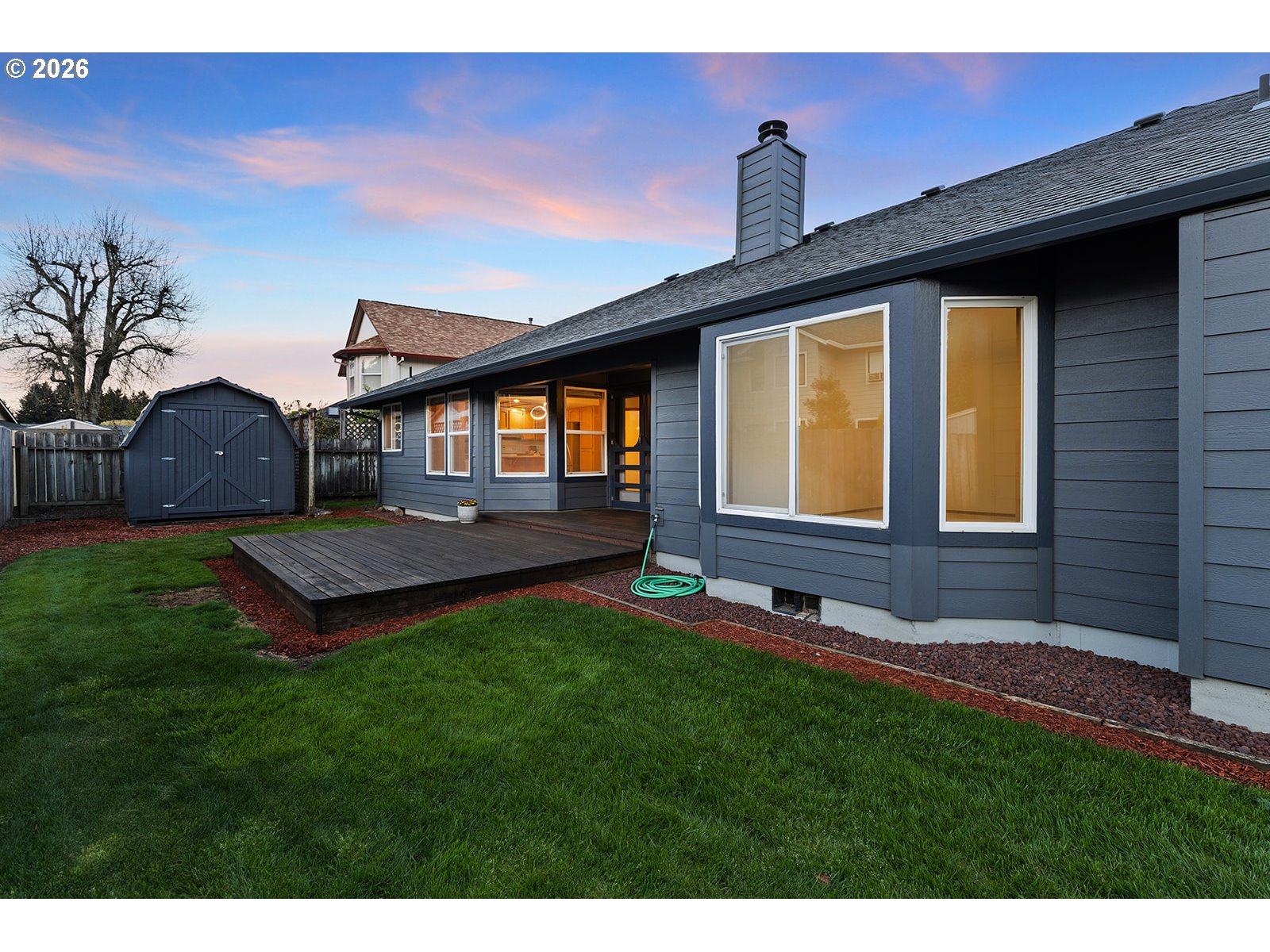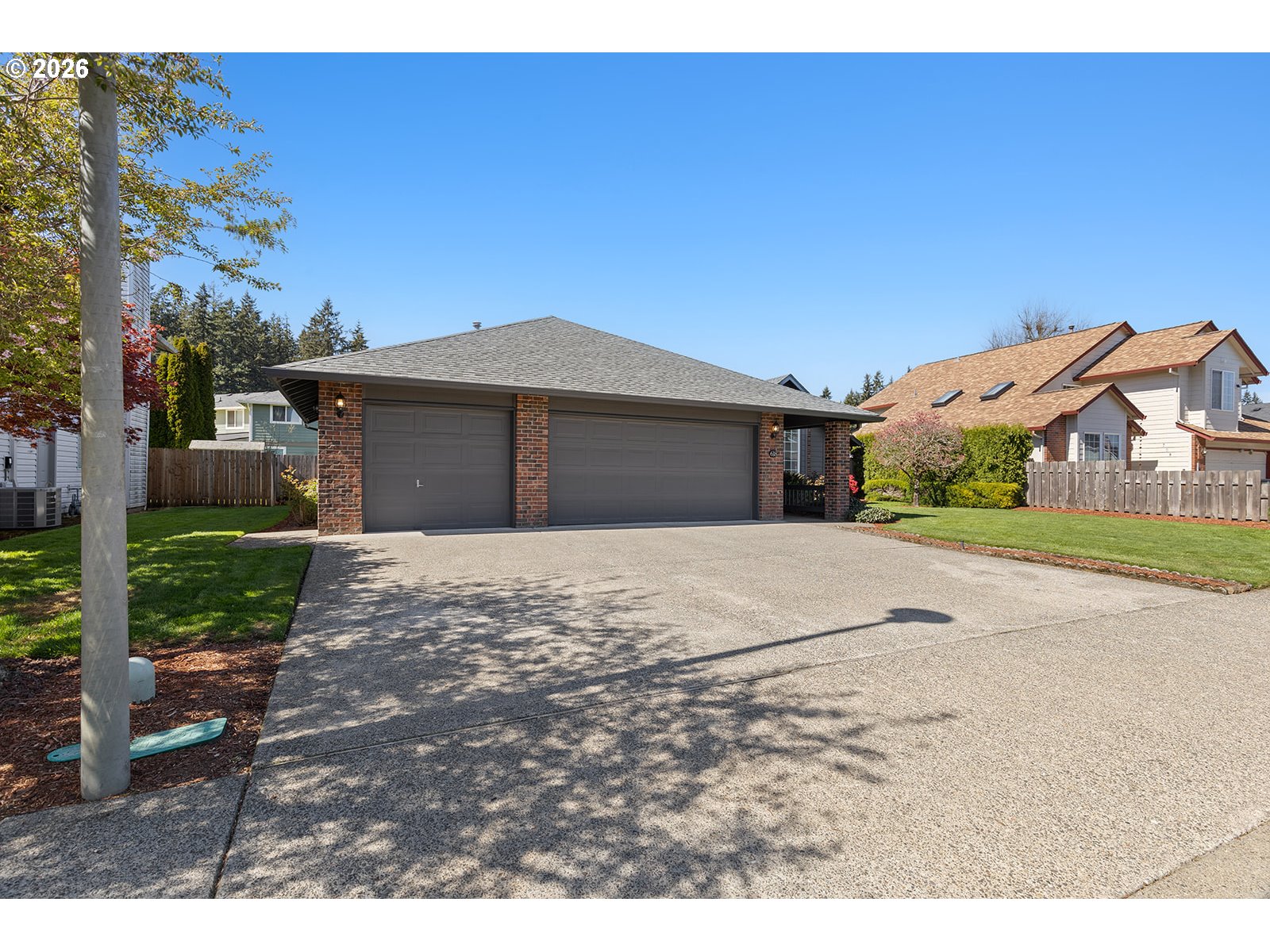 - Welcome home to this spacious 1849 sq. ft. one level home with a large 3 bay garage! This home is a cream puff and absolutely immaculate! This light and bright home has wide hallways, and unique details throughout. Vaulted ceilings, large windows, hardwood entry floor, beautiful wood trim and doors to name a few. Relax in the large primary suite with bayed windows. Attached bathroom has dual sink vanity and large walk-in closet. Enjoy a beautiful brick hearth and cozy gas fireplace in the family room, open to the kitchen with island and lots of cabinets and counter space. French doors open onto a lovely deck and lush backyard. Incredibly well cared for home has forced air and central AC, newer concrete lap siding & exterior paint, roof, freshly painted interior and garage, and new plush carpet! Enjoy the luxury of a built-in vacuum system too! Quality built shed for backyard storage. Freshly barked yard with established plantings including roses and a pink dogwood tree. This is home sweet home!