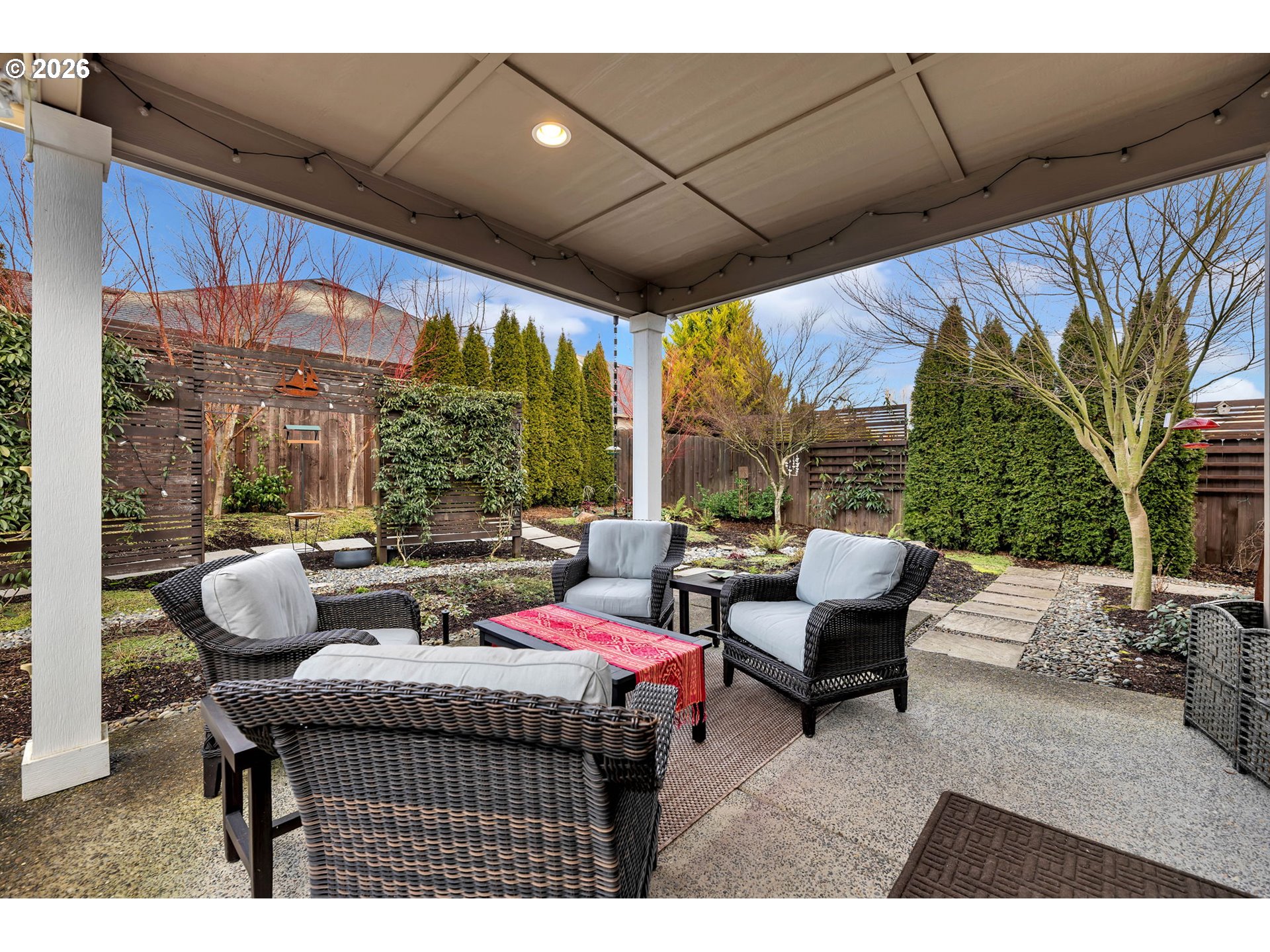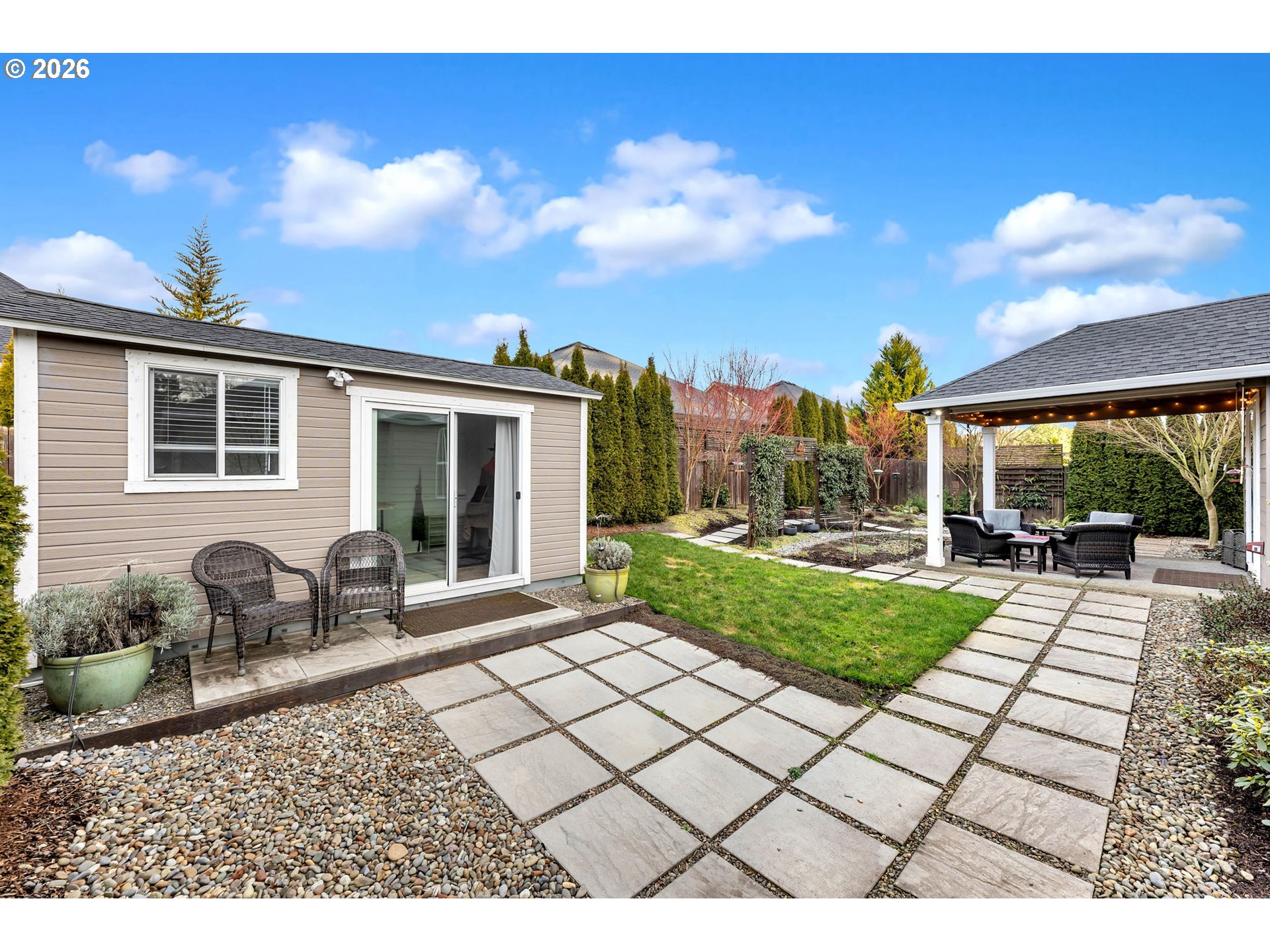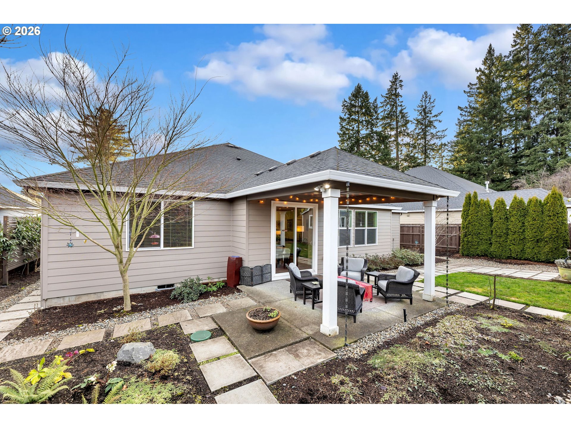 - This exceptional one-level Pleasant Valley home is the one you’ve been waiting for. Better than new, this custom-built residence by Garrett Homes was completed in 2019 and is located on a quiet dead-end road, offering numerous high-end upgrades throughout. The open-concept great room floor plan provides a bright, spacious layout ideal for entertaining.The kitchen is outstanding and features top-of-the-line appliances, including an Electrolux oven with air fryer, Electrolux microwave/convection oven, Wolf gas cooktop, and Bosch dishwasher. Additional highlights include on demand hot water throughout the home and beautiful cabinetry with soft-close doors and pull-out shelving.The home offers three bedrooms plus a dedicated office. The generously sized primary suite includes an ensuite with heated floors, a beautifully designed walk-in shower, a walk-in closet, and a bright skylight.The outdoor space is equally impressive, set on a rare, level 10,000+ square foot lot. The property offers excellent privacy with mature landscaping, covered patios, a fully fenced backyard, and a separate insulated art studio wired with electricity. No HOA.Conveniently located less than 10 minutes from Legacy Hospital, with easy access to I-5 and I-205.