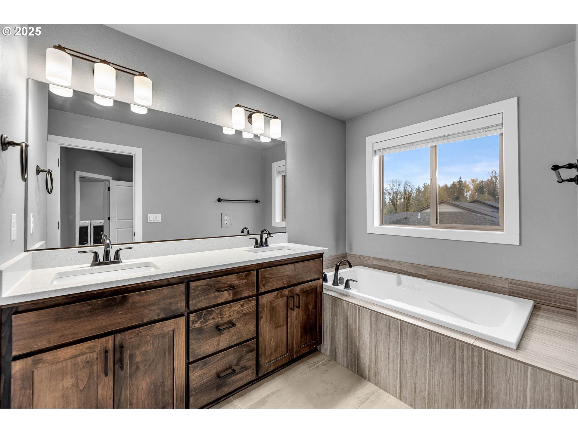 - Better than new! Welcome to this exceptional 2-story home with a true 3-car garage backing to serene greenery and peaceful forest views. Featuring 5 bedrooms and 3 full baths, including a bedroom with full bath on the main, the ultimate flexibility for multi-generational living, added privacy, a spacious office, or more. This home is loaded with upgrades, including high ceilings, quartz slab counters and quartz island, gas appliances, and custom wood built-ins throughout. Enjoy dimmable lighting, usb port outlets, smurf boxes, and an entertainment outlet ready for surround sound. The upgraded primary ensuite features high vaulted ceilings, quartz counters, double vanity, soaking tub, and 3 shower heads that create a relaxing spa-like rain shower experience. Enjoy nature’s beauty from the remodeled private backyard, where French doors open to a covered patio with flagstone pavers surrounded by lush landscaping and a woodland backdrop offering a peaceful retreat at home. This home was built by Urban NW Homes, a local, multiple award-winning builder featured in the Parade of Homes. Don't wait, book a private tour TODAY!
