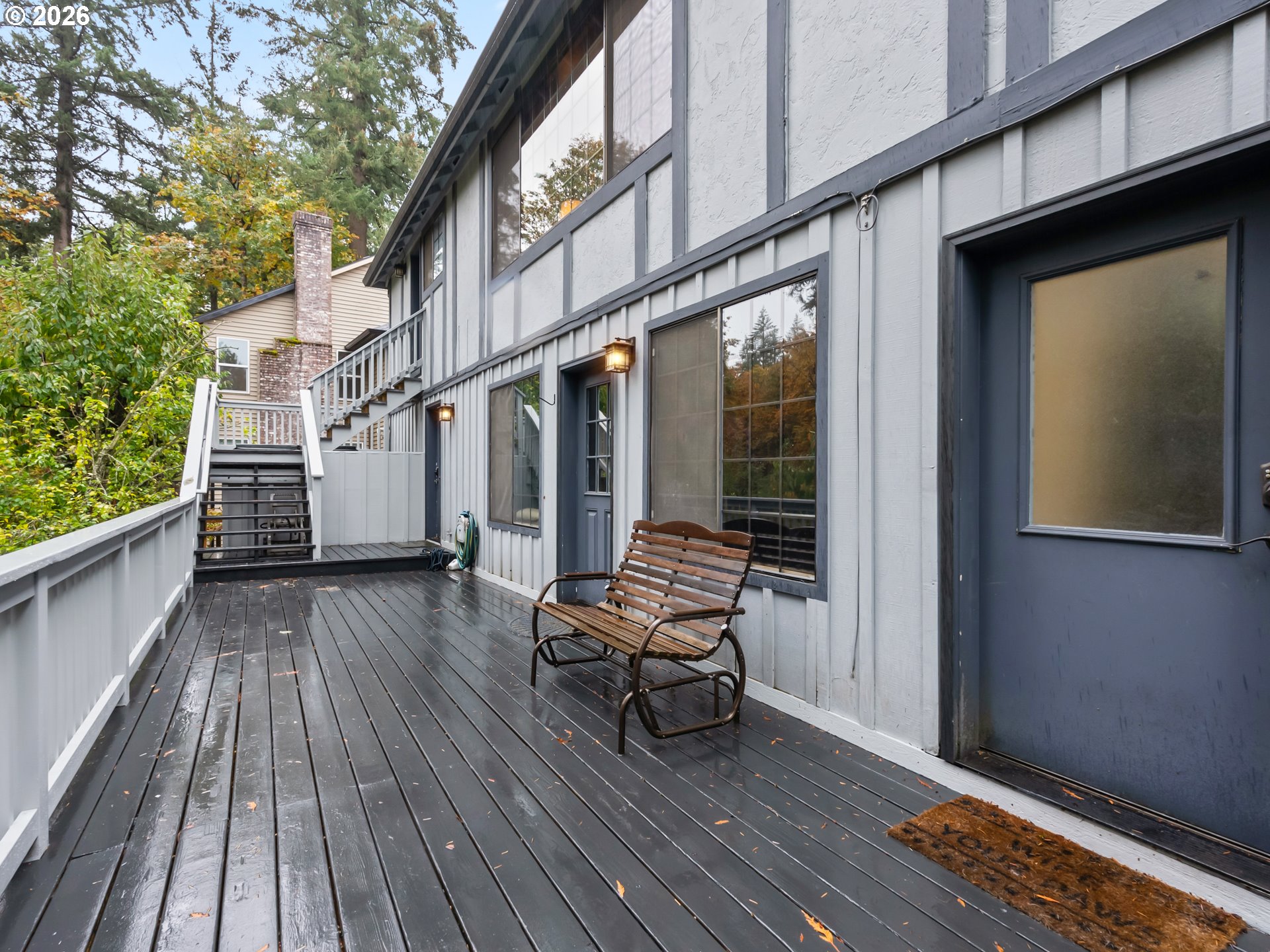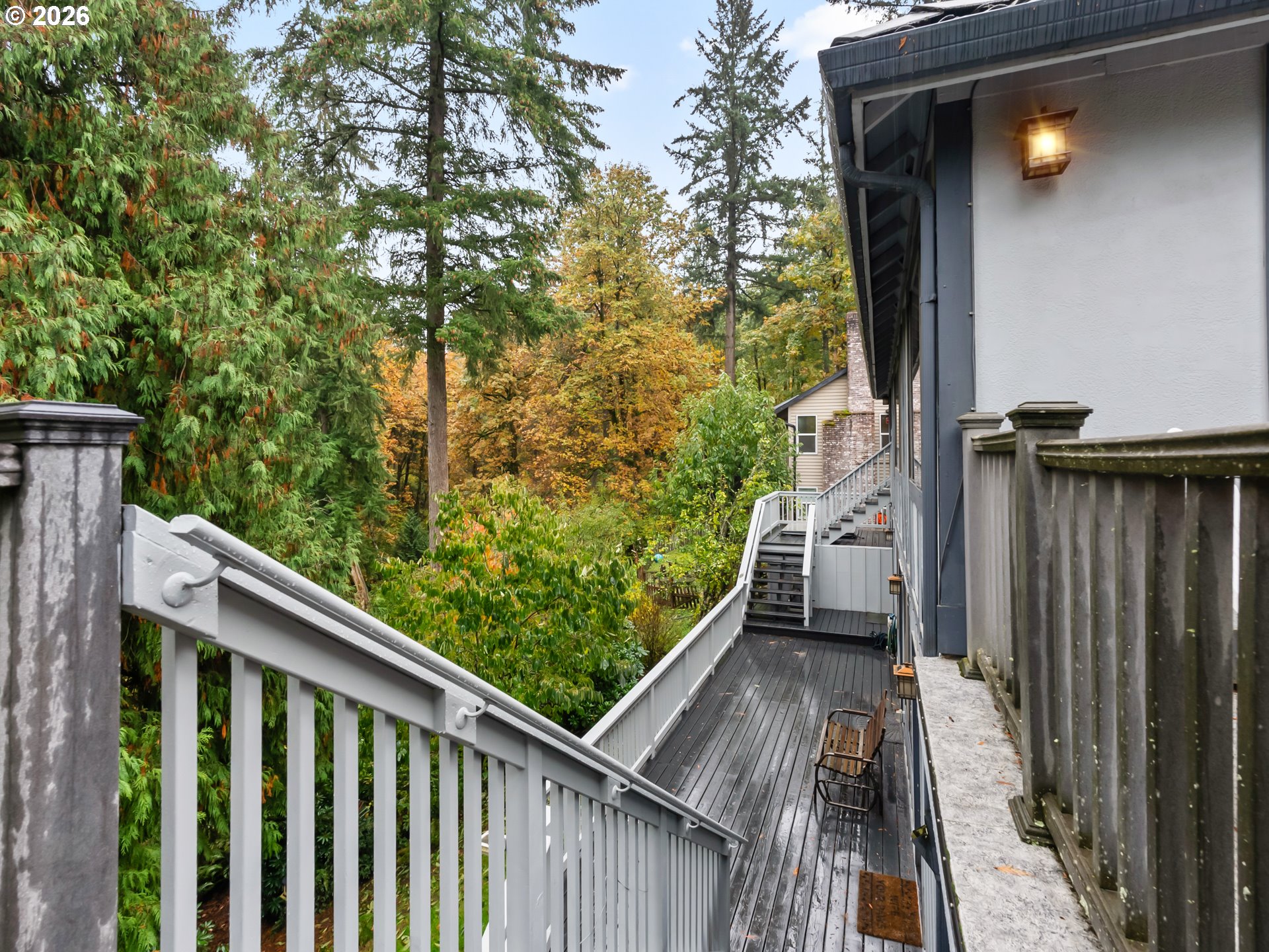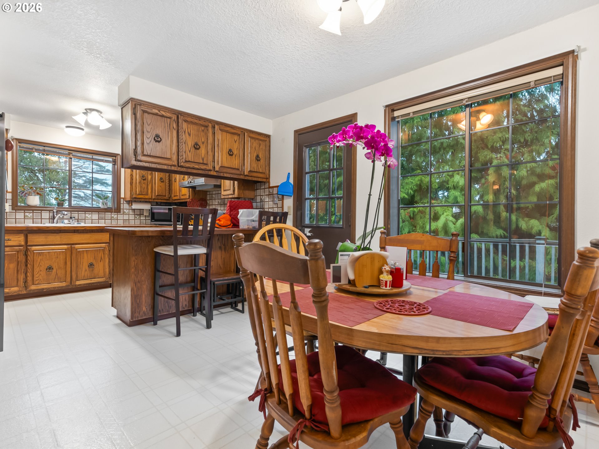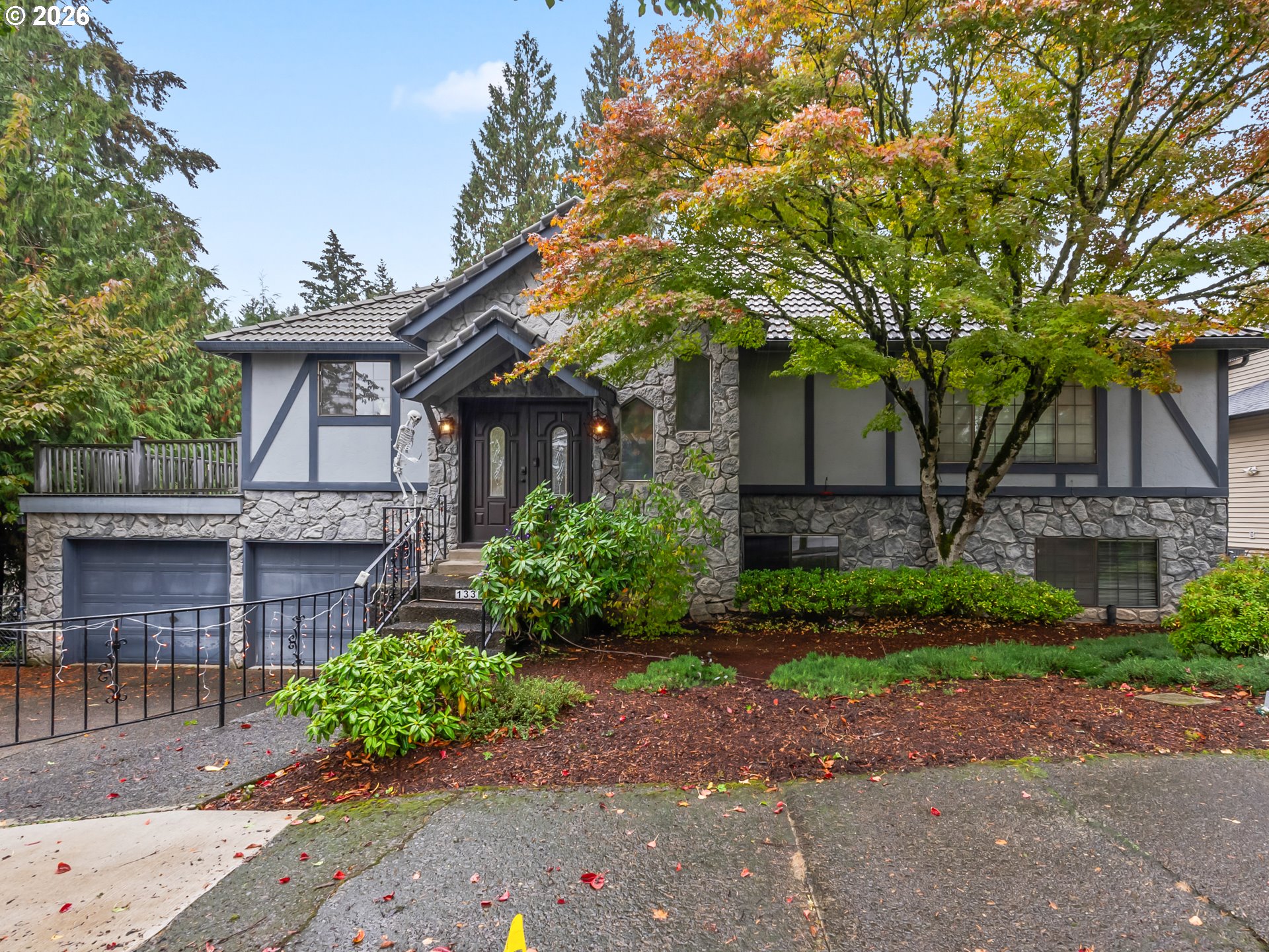 - so much potential in this 3105 SF home with 4 bedrooms, 3.5 baths on a private .34-acre lot, featuring two wood decks and outstanding multi-generational living potential. Located on one of the best streets in the area—a quiet cul-de-sac and dead-end with virtually no traffic and direct access to the Saddle Mountain Trail. Recent seller updates include carpet, pad, and stairs on the main floor. Double wood doors open to a vaulted foyer and light-filled great room with vaulted ceilings, ceiling fan, large picture windows, and a wood-burning fireplace with hearth. Enjoy beautiful views of tall evergreens, apple trees, and rare persimmon trees from the main living areas and upper deck. The main level features a formal dining room, tile-counter kitchen with eating nook, and Energy Star appliances, including built-in double ovens with convection, range, hood fan, refrigerator, and ice maker. Main-floor bedrooms and a full bath complete the level. The lower level offers exceptional flexibility with two bedrooms, full bath, kitchenette, laundry room, and a second wood-burning fireplace; ideal for multi-generational living, guests, or a game/party room. A separate exterior entrance opens to the lower deck. Backing to 20 acres of Gresham Buttes greenspace, the home offers year-round privacy. Two private decks overlook a secluded setting with a fenced area and creek nearby. Oversized 816 SF (34’ x 24’) three-car tandem garage allows for no-stairs street-level entry. Heat pump included.