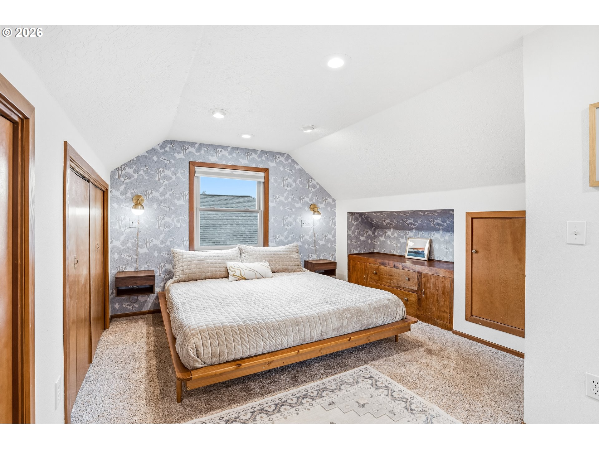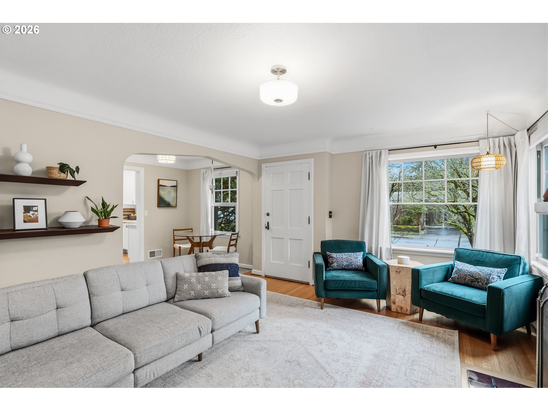 - The Piedmont Palm Bungalow! Stylish and well cared for, you will feel it when you see it! A statuesque palm tree and mature landscaping welcome you up the front steps. The main floor features wood floors, south-facing windows that emanate natural light throughout, a wood-burning fireplace, and a recently updated kitchen with quartz counters, newer cabinets, and the perfect window for plant lovers, all overlooking the front yard. Wherefore art thou, bedroom? The upper-level primary suite is complete with a full bath and Juliet balcony! Modern wallpaper and sconces add stylish detail. The knotty pine party basement is not to be missed - features tall ceilings, a bonus space/rumpus room with laundry, and an unfinished portion to use as you please. 95% efficient forced-air heat + central AC keep you cozy in winter and cool in the summer. The back patio is perfect for grilling & chilling, and there's enough emerald green grass for games, cartwheels, and four-legged friends to cavort. Low-maintenance landscaping looks good year-round! Detached garage provides additional storage for all your gear. Location is a dream! Just blocks to Peninsula and Farragut City Park, plus all the delights that Dekum and Kenton have to offer. [Home Energy Score = 7. HES Report at https://rpt.greenbuildingregistry.com/hes/OR10189008]