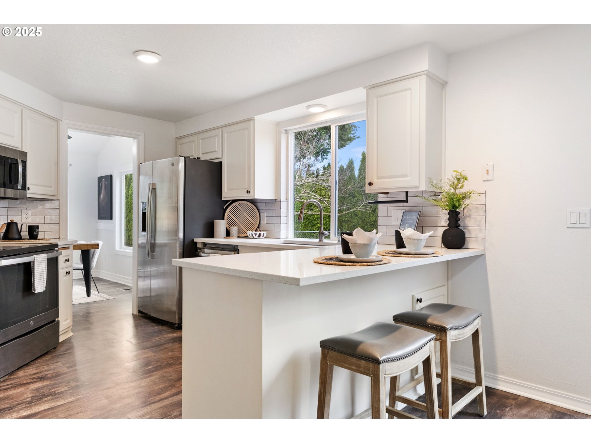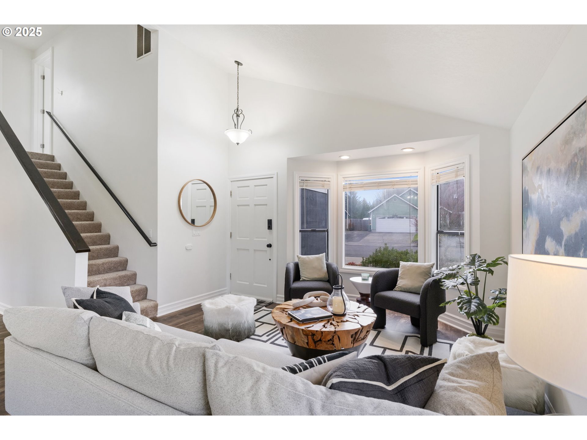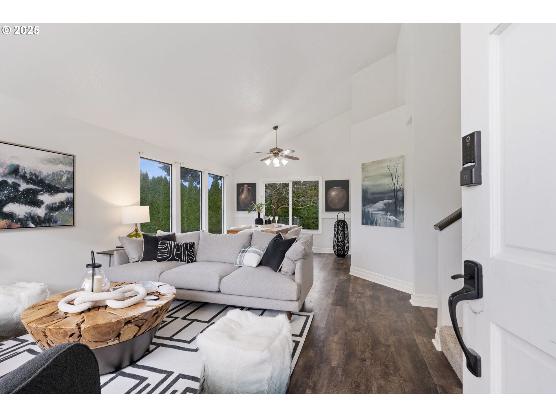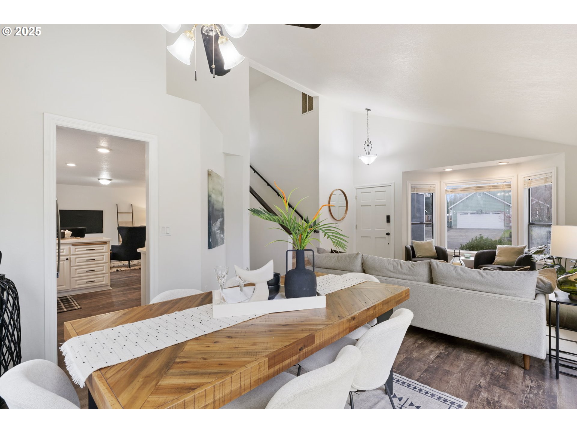 - Welcome to this beautifully maintained home in the heart of Troutdale! This move-in ready residence features high vaulted ceilings, new flooring, an updated kitchen, with quartz countertops, newer appliances, and fresh interior & exterior paint for a crisp, modern look. The spacious owner's suite and updated bath offer comfort and style, while the mature landscaping create a private outdoor retreat complete with RV parking. Major updates include a new roof (3yrs), newer AC and furnace (6-7 yrs), irrigation system (10 yrs), and LVP flooring on the main (7-8 yrs), upstairs flooring in bathrooms (2025), tiling in Owner's Suite(2025). Enjoy outdoor living on the updated rear deck and enclosed yard with newer fencing. Lava rock area is great for an outdoor firepit. Conveniently located near parks, schools and downtown Troutdale amenities--this home combines thoughtful updates with timeless charm. Make this home yours before the holidays!