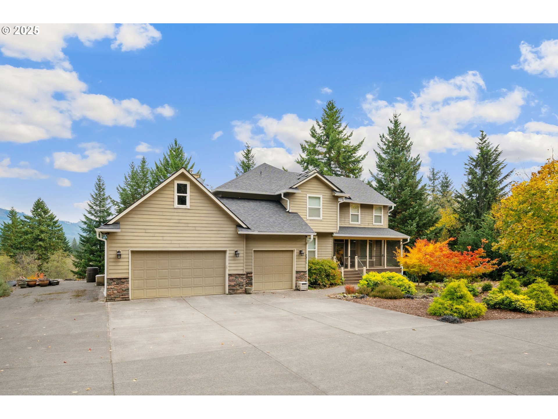 - Set on a fantastic 5-acre lot in the scenic Sunrise Mountain Estates, this expansive three-level, 4,776 sq ft home offers big territorial views and a seasonal creek, all within the sought-after Camas School District. Designed for flexibility and comfort, the three-level floor plan features 4 total bedrooms PLUS a main-level office, an upper-level loft, and a fully finished lower level complete with a storage area, a media room, and a game/workout area with a wet bar. The open kitchen features oak cabinets, granite tile counters, an eat bar, double ovens, under-cabinet lighting, dual pantries, and convenient pull-out shelving. Additional home highlights include a Kinetico water filtration and softener system, central vacuum, ample storage, and an oversized 3-car garage with an extended driveway—perfect for RV parking, guest vehicles, or a future shop. Upgrades include an expansive composite deck with a lower level patio, private generator and a four-year-old composite roof and gutters. Enjoy your space, and peaceful views in this established, quiet neighborhood with the options for multigenerational living or expansion.