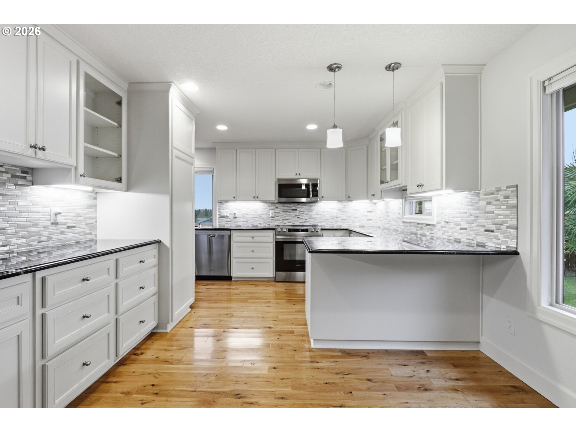 - Welcome to 10445 SW Highland Dr in the highly desirable Summerfield 55+ community. This well-maintained, remodeled home offers low-maintenance living with access to outstanding community amenities.Upon entry, you’ll immediately notice the 3/4” oak hardwood flooring that flows throughout the main living space. To the left, the beautifully remodeled kitchen features custom cabinetry, slab granite countertops, and stainless steel appliances. The kitchen seamlessly connects to the dining and living areas — creating an ideal layout for entertaining. Just off the living room, a short set of steps leads to three bedrooms and two full bathrooms. The primary suite includes a walk-in closet and private ensuite bath. The additional bedrooms offer flexibility for guests, hobbies, or a home office. Outside, enjoy a generously sized side yard and patio — perfect for relaxing or gardening. A fully permitted workshop/shed with electricity provides space for projects, storage, or creative pursuits. The two-car garage includes a convenient half bathroom, additional storage, and laundry hookups for added functionality. Experience comfort, community, and convenience in one of Tigard’s most sought-after 55+ neighborhoods.