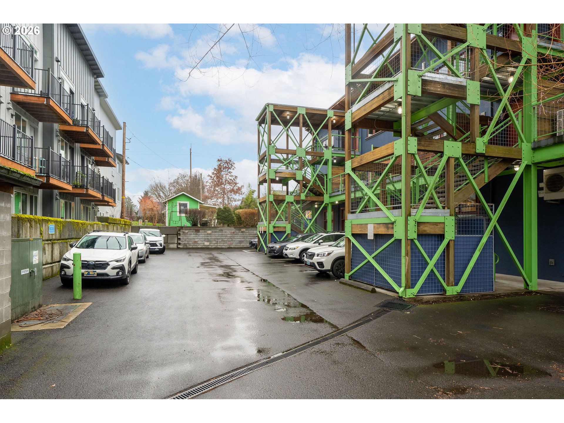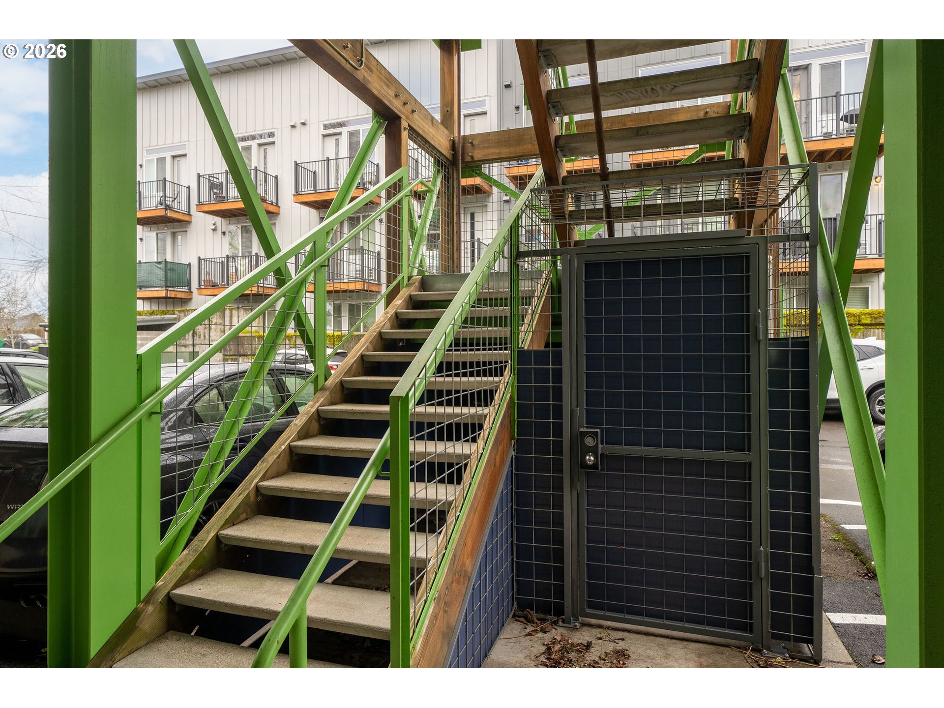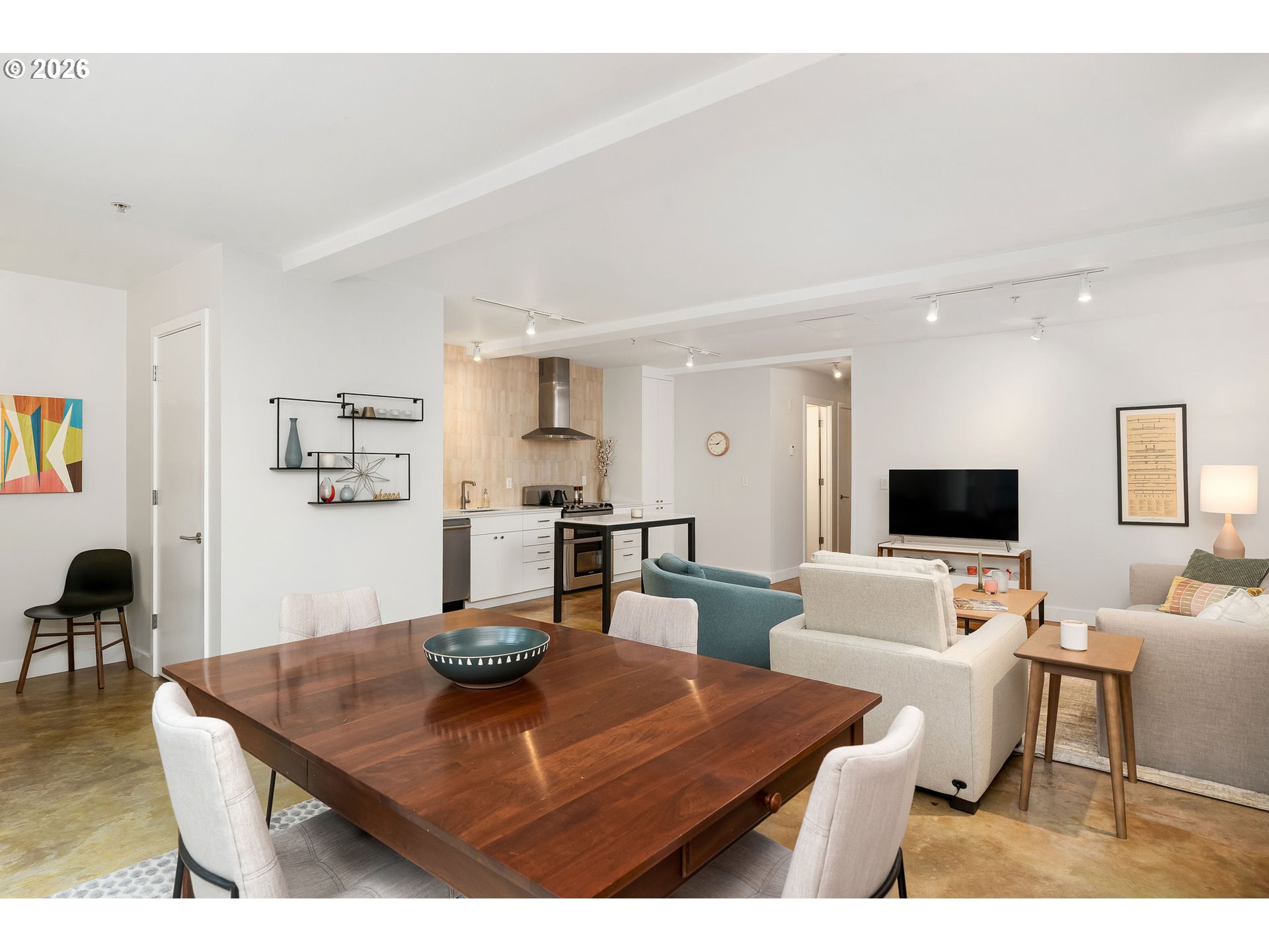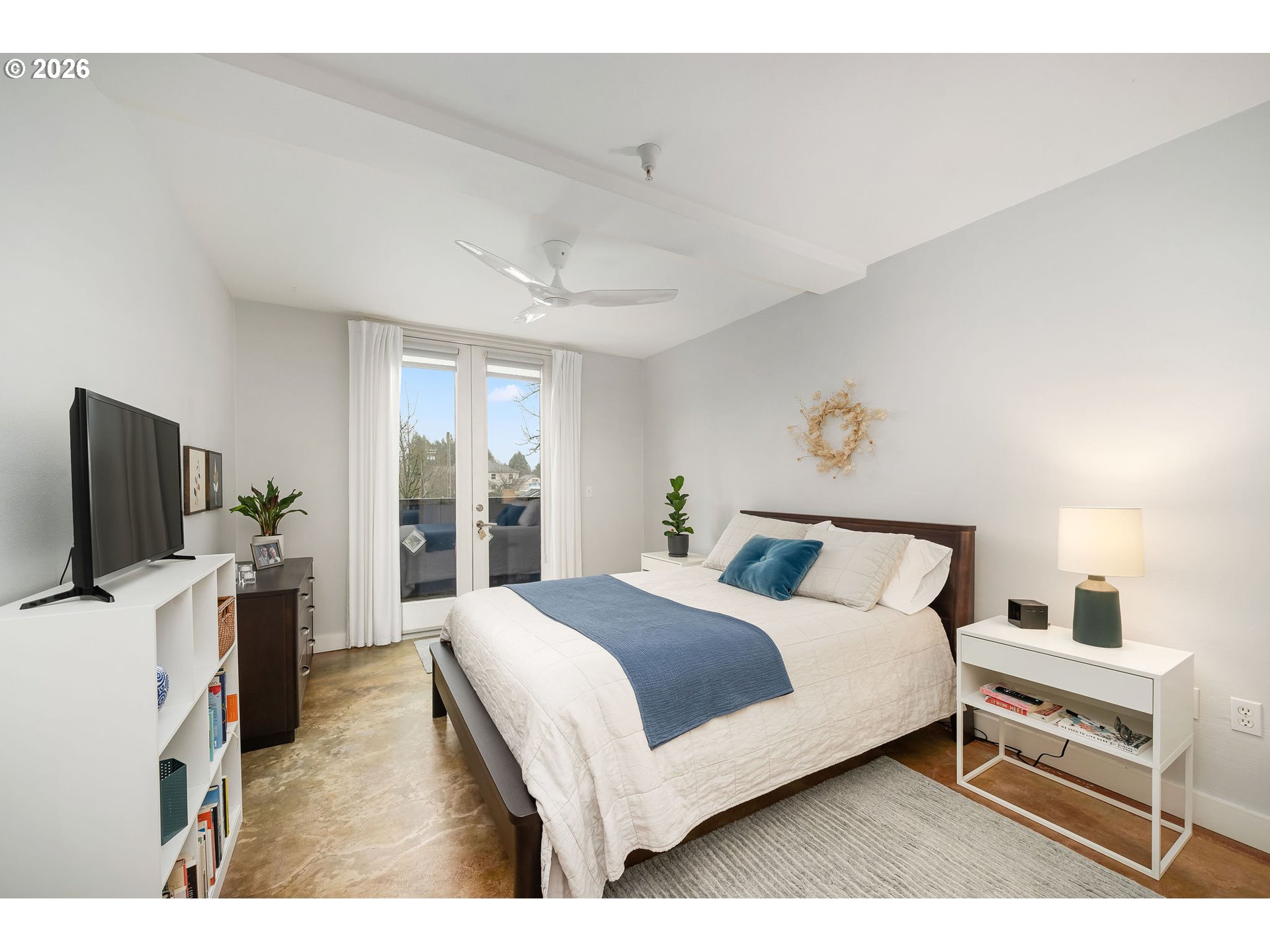 Modern Loft Living in the Heart of NE Portland!Discover urban sophistication at Graham Street Lofts, a boutique 12-unit contemporary building offering style, light, and flexibility in one of Northeast Portland’s most vibrant neighborhoods. This second-floor 2 bedroom, 1 bath loft-style condominium delivers 1,058 square feet of thoughtfully designed living space with a perfect blend of industrial character and modern comfort.Concrete floors, clean architectural lines, and expansive windows set the tone, filling the home with natural light and city energy. The open-concept living and dining areas flow seamlessly through french doors to a private balcony, ideal for morning coffee or evening unwinding. The sleek, completely updated kitchen anchors the space with stunning quartz countertops, stainless steel appliances, an island for casual dining, and ample storage—perfect for both everyday living and entertaining.The generously sized primary bedroom features a walk-in closet and its own balcony access, creating a peaceful retreat above the street. A versatile second bedroom or studio-style flex space also opens to a balcony, making it ideal for guests, a home office, or creative workspace.Comfort meets efficiency with radiant heat, mini-split heating and cooling, in-unit washer/dryer, and modern utilities. With off-street and on-street parking options, secure bike storage, easy access to public transit, and a location on a bus line, getting around the city is effortless.Situated by the N. Williams entertainment district, which includes local cafés, restaurants, shops, and neighborhood favorites, this home offers true city living with a refined edge. Whether you’re seeking a stylish primary residence or a low-maintenance urban retreat, this Graham Street Lofts condo delivers character, convenience, and contemporary appeal.
