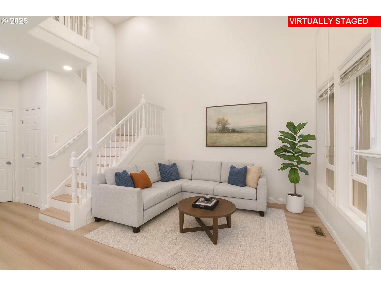 - OPEN SUNDAY 12/14 12-2! Must see townhome with completely updated interior including new luxury vinyl plank flooring on both levels, new paint, stainless steel kitchen appliances, granite counters, and much more to see in person! AC is also brand new, furnace replaced end of 2018, and water heater is newer as well. Inviting entryway with den/sitting area, opens up to a huge kitchen looking out to the dining area and living room with 2-story high ceilings and cozy gas fireplace. Plenty of large windows offers natural light and tons of built-ins throughout for storage! Upstairs, a vaulted primary bedroom with attached bathroom and walk-in closet along with two bedrooms and hall bathroom. Washer/dryer also on upper level for added convenience. Great location near Intel, Nike, various parks, and dining options. Also, in a quiet neighborhood with no HOA!