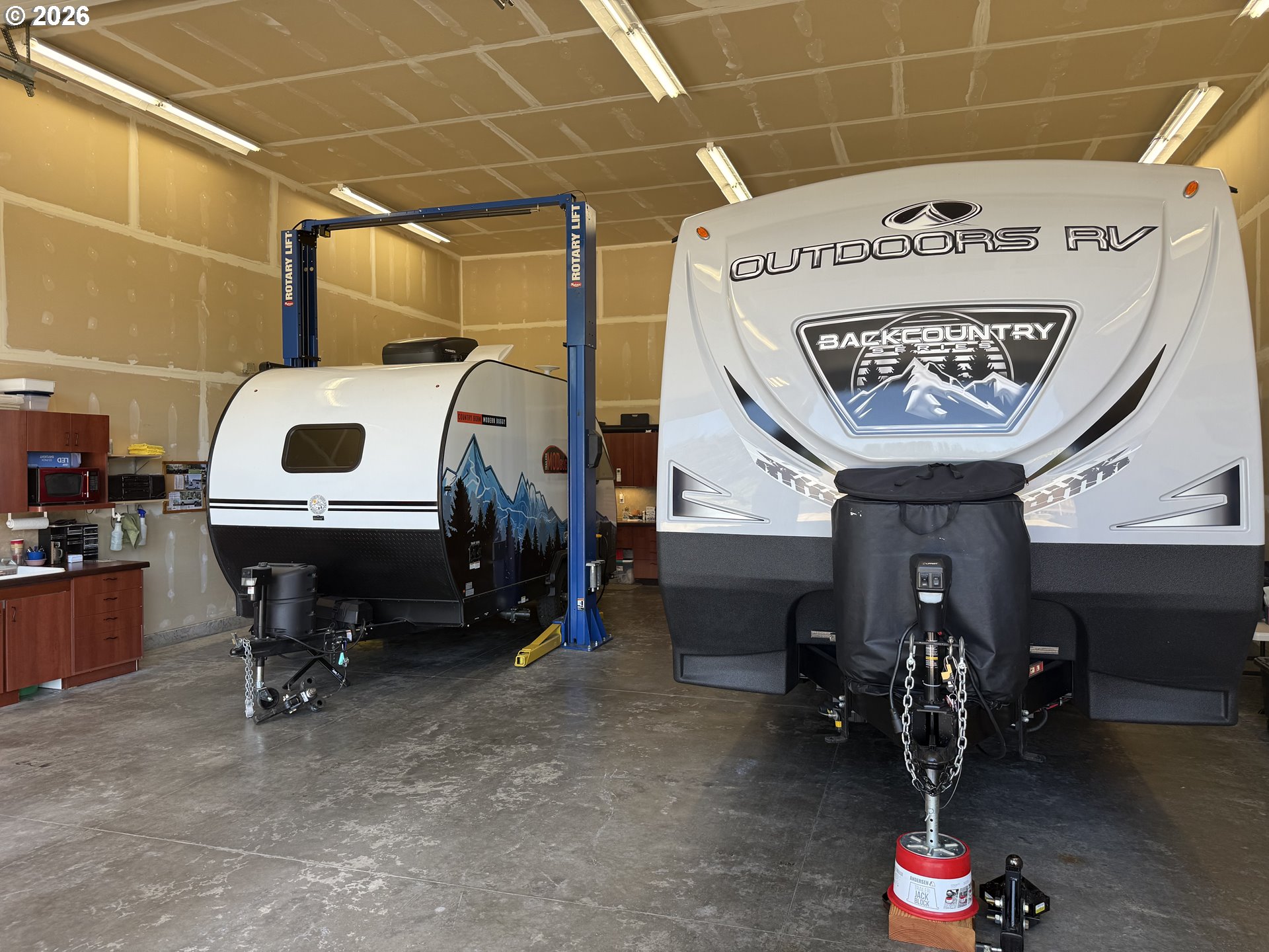 - 4.7 Acres! 2 Bay RV Garage with 12k lift, 16 ft. Doors, A/C and Heat. Three Car Garage and workshop with A/C and Heat. Triple Wide Manufactured Home with A/C and Heat. Extra Wide Hallways, Wood Burning Stove and Fireplace, Pantry, Skylights, adn Mud Room with Sink. Dual Sinks in Primary Bath and Guest Bath, Soaking Tub, Front Yard Sprinkler System, Gorgeous 20x40 Covered Deck!