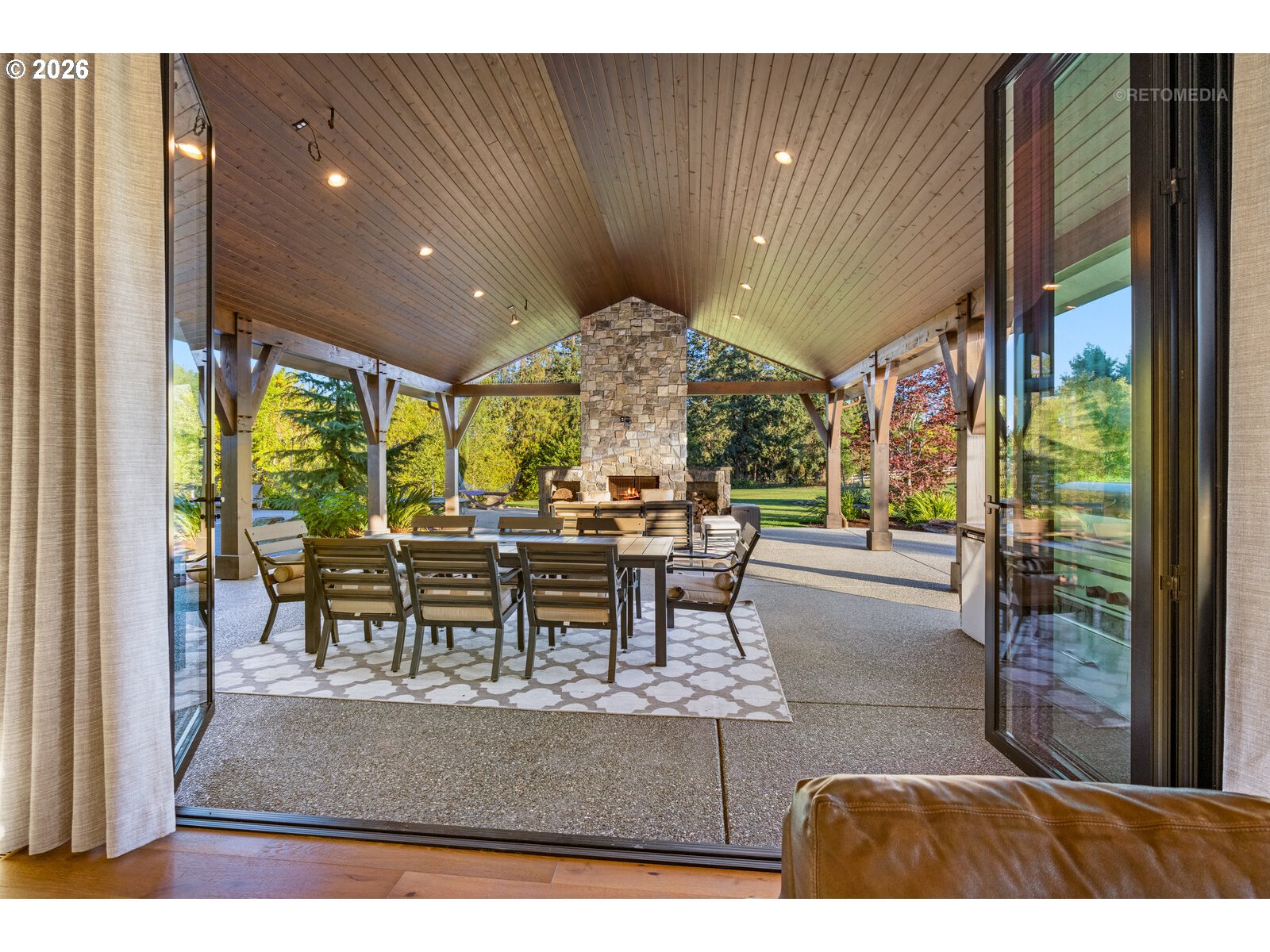 - Experience unparalleled luxury in this breathtaking 7,649-square-foot main home, set on a peaceful 9-acre property, complete with a separate RV shop featuring additional living space. The heart of the home is a gourmet kitchen outfitted with top-tier Wolf stainless steel appliances, a Subzero refrigerator, and a heated island top. A vent hood, walk-in pantry, and butler’s pantry provide abundant storage and prep space for the most discerning chefs. Designed for entertainment, the family room is wired for surround sound, while multiple gas fireplaces—including an outdoor wood-burning fireplace—create inviting spaces to gather. Step outside to enjoy the pool, outdoor kitchen, and the warmth of the wood fireplace on cooler evenings. Indulge in ultimate relaxation with the sauna, hot tub, and an opulent master bath featuring a freestanding tub. For RV enthusiasts, this property offers drive-through bay parking with hookups, along with an impressive total of 11 garage spaces. The additional 1,487 square feet of detached living space is perfect for guests or private retreats. Striking exterior beams crafted from Douglas fir add architectural charm to this exquisite home. A true masterpiece of luxury, comfort, and functionality. Don’t miss this rare opportunity!