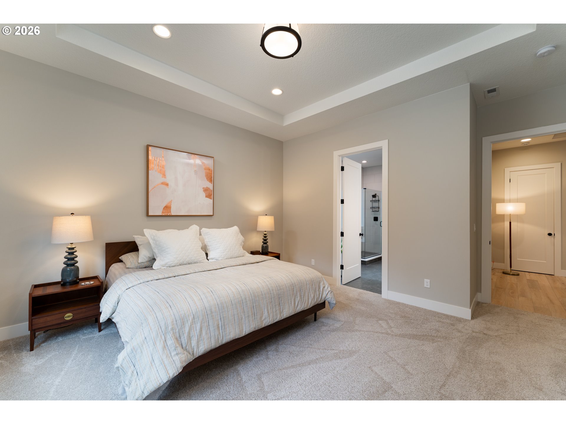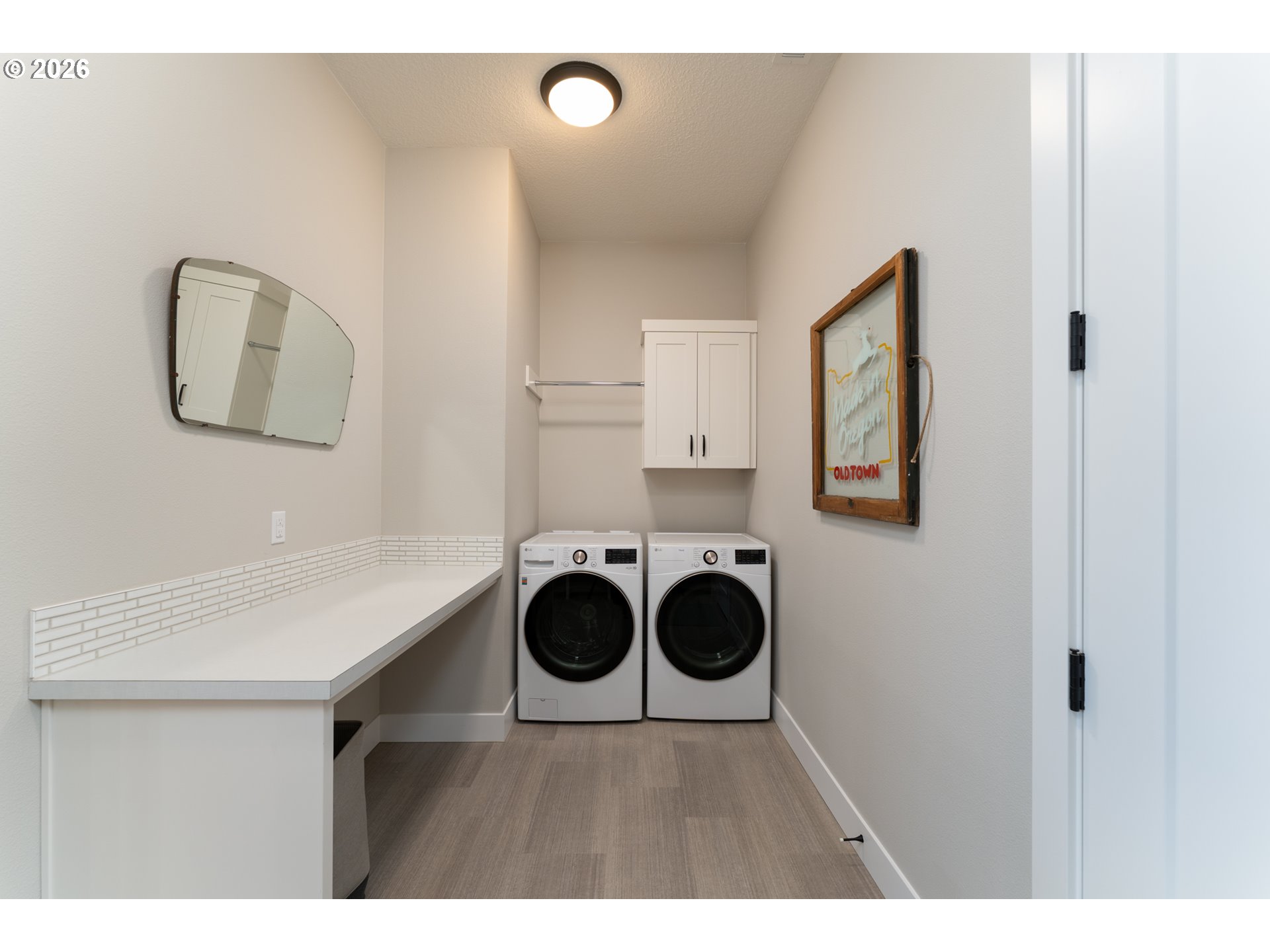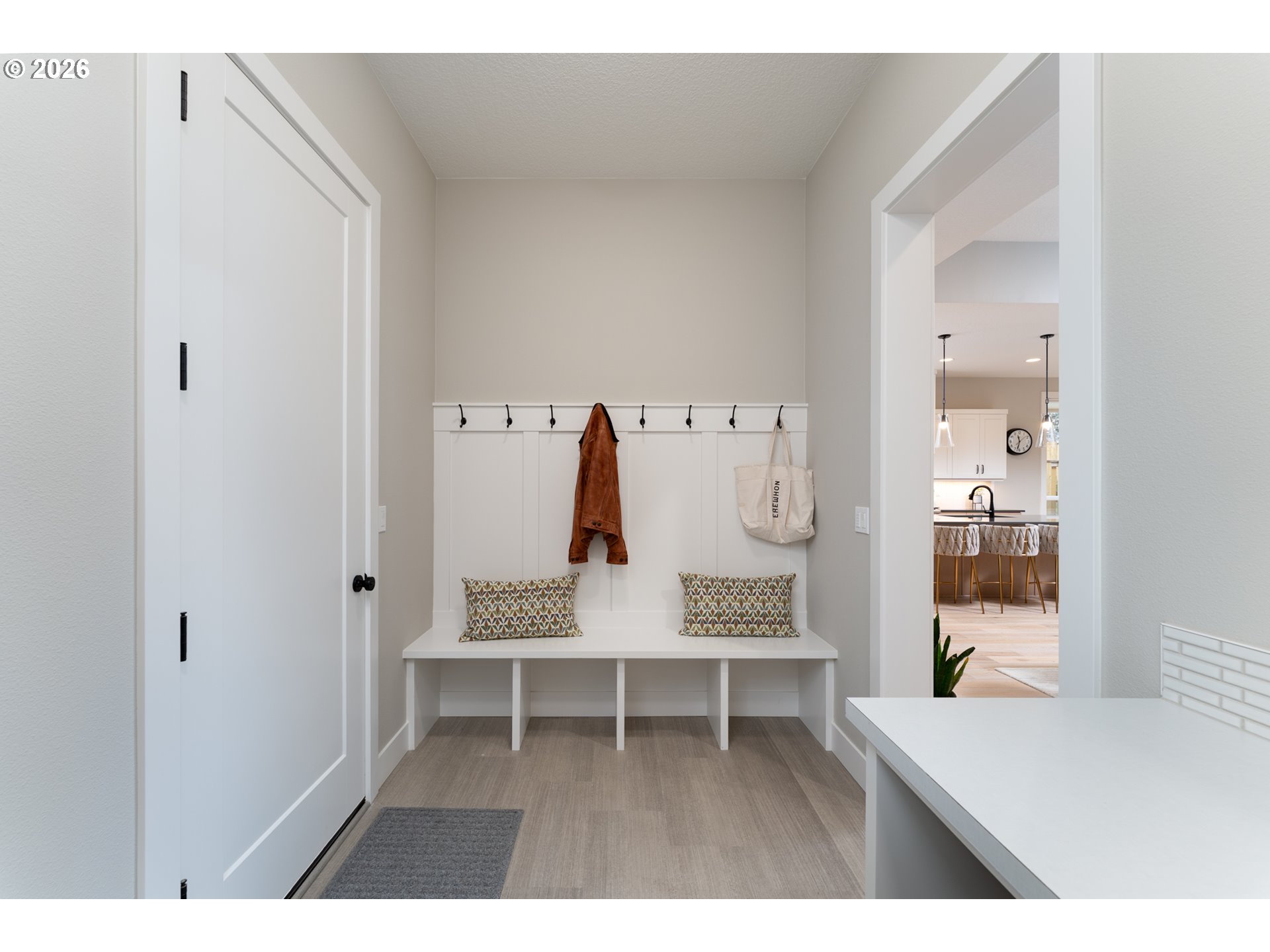 - Modern Contemporary Farmhouse situated in the heart of Garden Home. Garden Terrace is an 8-lot development on a dead end street blocks to Trader Joes, Old Market Pub, Fanno Creek Trail, and Moonshadow Park with easy access to Multnomah Village and Washington Square. Completed in 2023 by Westwood Homes and loaded with architectural details and designer finishes, this home has been lightly-lived in, well-cared for and clean as a whistle. Interior finishes include engineered hardwood and tile floors, custom cabinetry, automatic and room darkening window treatments. The main level primary suite includes 10-foot ceilings, dual vanities, soak tub, separate glass/tile shower & large walk-in closet. The kitchen includes quartz counters and island, Thermador appliances including 36-inch (6 burner) gas range with integrated range hood and large pantry. The great room has 12-foot ceilings, gas fireplace, open shelving with additional built-ins. Generous den with large closet and additional small storage area. Utility/mud room with folding shelf, barn door and boot/coat bench and hooks. The upper level includes two bedrooms, full bath and additional 4th bedroom or bonus room. Two-car garage with additional space ideal for shop, work bench or exercise space. Exterior amenities includes a low maintenance grounds, fenced yard, covered patio plumbed with gas. Recent improvement and updates include a new front yard and landscape, rear flagstone path and landscape, second fence gate, garage sink and extra hose bib. Ultra quiet and close-knit community with Washington County Taxes. Seller is licensed real estate broker in the State of Oregon.
