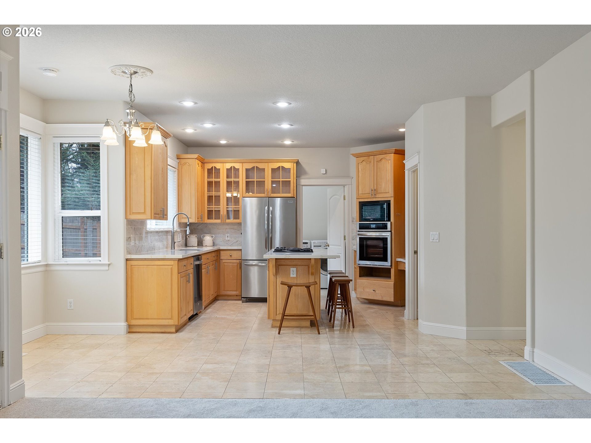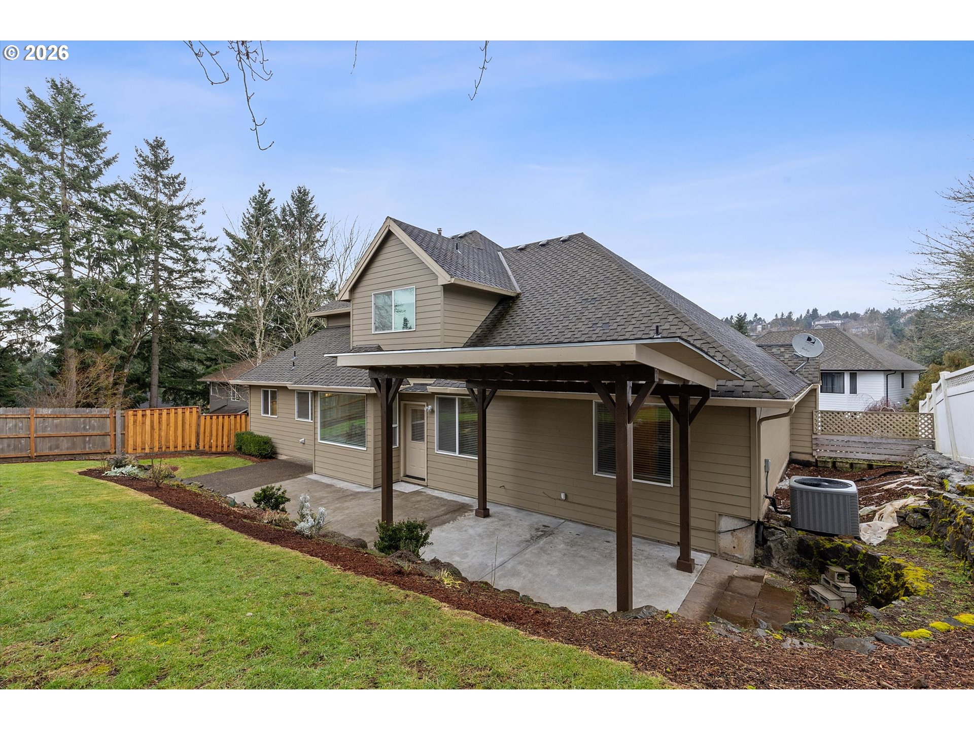 Beautiful traditional home in West Linn's sought after Barrington Heights neighborhood with NO HOA. Situated on a quiet flag lot with excellent curb appeal, including a soaring brick entryway. Through the front door is a formal living room with high ceilings and a gas fireplace. On the main level of the home you'll enjoy a formal dining room, office, family room, utility room, eating nook, updated kitchen AND the primary suite. The large updated kitchen has quartz countertops, stainless steel appliances and a WALK-IN PANTRY. French doors give way to the main level primary suite with a walk-in closet & an ensuite bathroom with walk-in shower and jetted tub! Upstairs there are three additional bedrooms (one would make a great bonus room) and another full bathroom. Don't forget about the large 3-car garage with extra storage space! Fenced backyard with a BRAND NEW patio cover excellent for outdoor living!Gas Appliances ~ Central Air ~ Outdoor Living ~ Move-in ready!