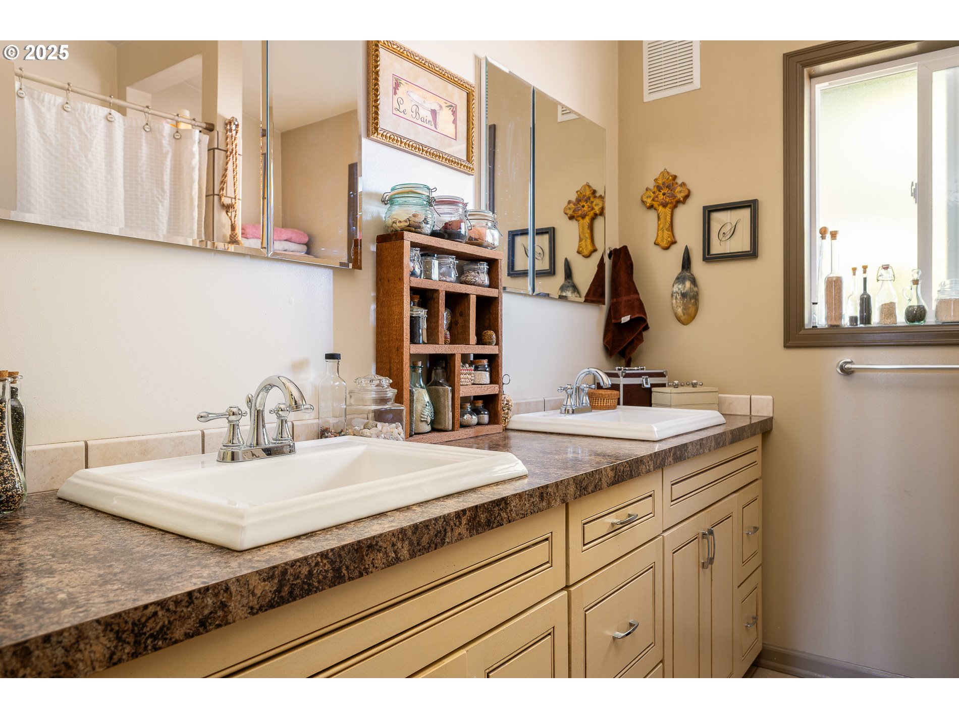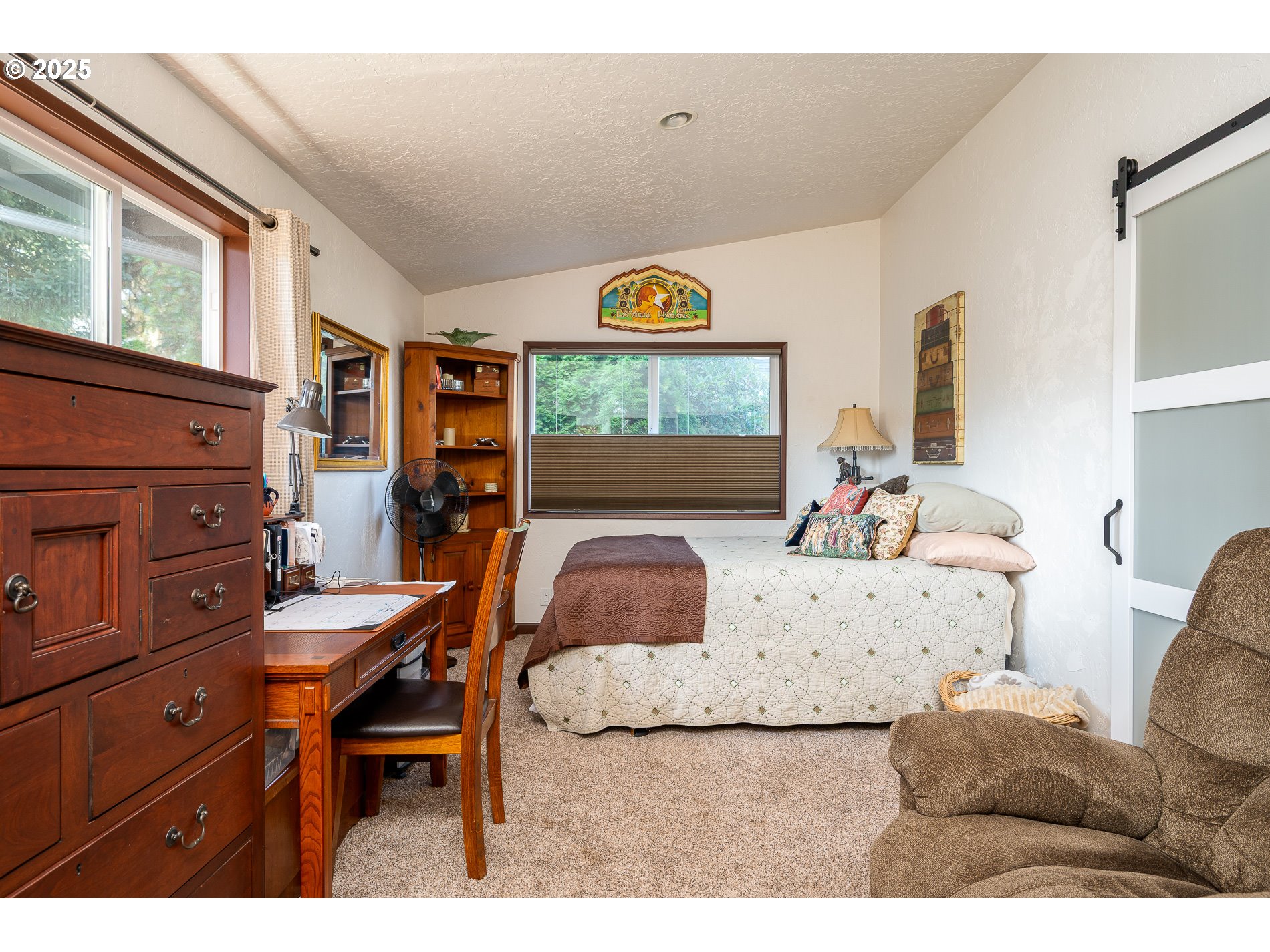 - Welcome to this unique single-family home featuring three bedrooms, two primary bedrooms with en suite. Perfect for multi-generational living or extra flexibility. High ceilings and a beautiful exposed beam bring in lots of natural light. Cozy wood fireplace insert in living room creates a warm atmosphere. The fully fenced yard offers both privacy and plenty of space for pets, play, or gardening. Enjoy the great outdoor areas with a covered front patio for relaxing evenings and a spacious backyard designed for entertaining. Large, oversized driveway for all your toys that is 3 cars wide. Ideally located near a local elementary school and just minutes from Glendoveer golf course, this home combines comfort, convenience, and lifestyle in one! Home features new furnace in 2024, new roof in 2023, new garage doors fall 2024, gutted and updated west end primary in 2024, updated windows throughout.