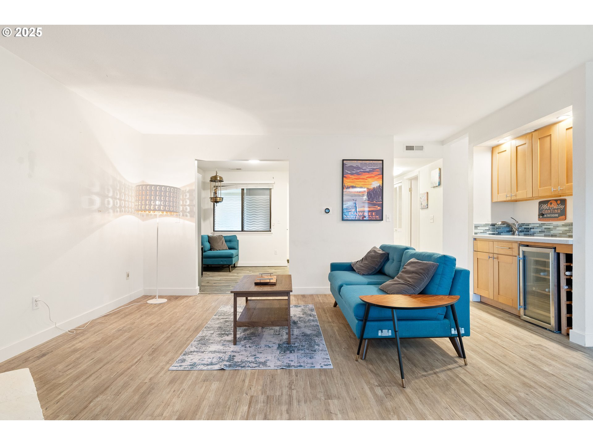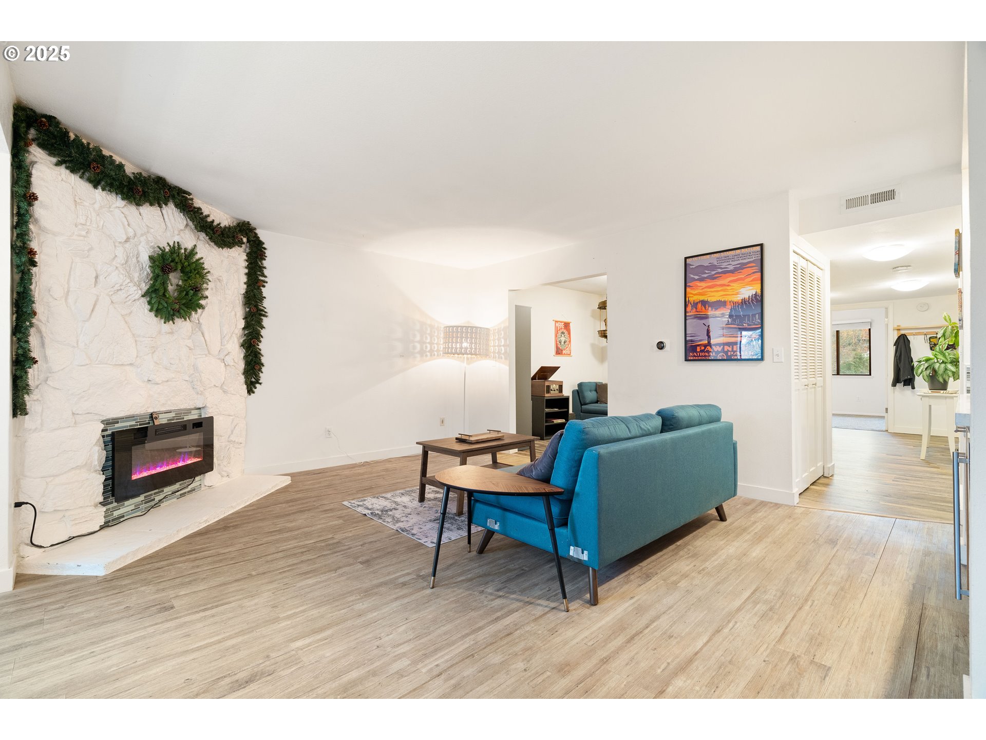 - Welcome home to bright, open living, where sunlit rooms and thoughtful updates create a sense of place that simply works! Picture mornings in your kitchen with the updated stainless appliances and quartz counters, the kind of space that makes coffee and conversation feel effortless, then move seamlessly into the living room where high ceilings amplify the light and views of grassy grounds and trees offer a private touch of nature right outside your windows. The fireplace sets the mood with a single switch, while the entertainer's wet bar with wine fridge stands ready for impromptu gatherings or quiet evenings with a perfectly chilled glass. Your primary suite offers a true getaway with double closets and an ensuite bath that lets you start your day in your own private sanctuary. The flexible bonus room becomes whatever you need: currently a music and reading room, it can easily be an additional home office, creative studio, or add two small walls for an instant third bedroom. With a dedicated office nook (perfect plant and cat perch!), second bedroom, detached garage, and plenty of privacy, you'll find yourself right at home. Beyond your door, you'll have multiple parking spots and the Wilkes neighborhood delivers conveniences galore: Costco runs take five minutes, PDX is a quick fifteen, and Glendoveer's scenic walking trails and Wilkes Park are practically at your doorstep, with local favorites like Honey Jar Cafe and Giusto Farms rounding out your new everyday favorites. This is living made easy, comfortable, and utterly your own.
