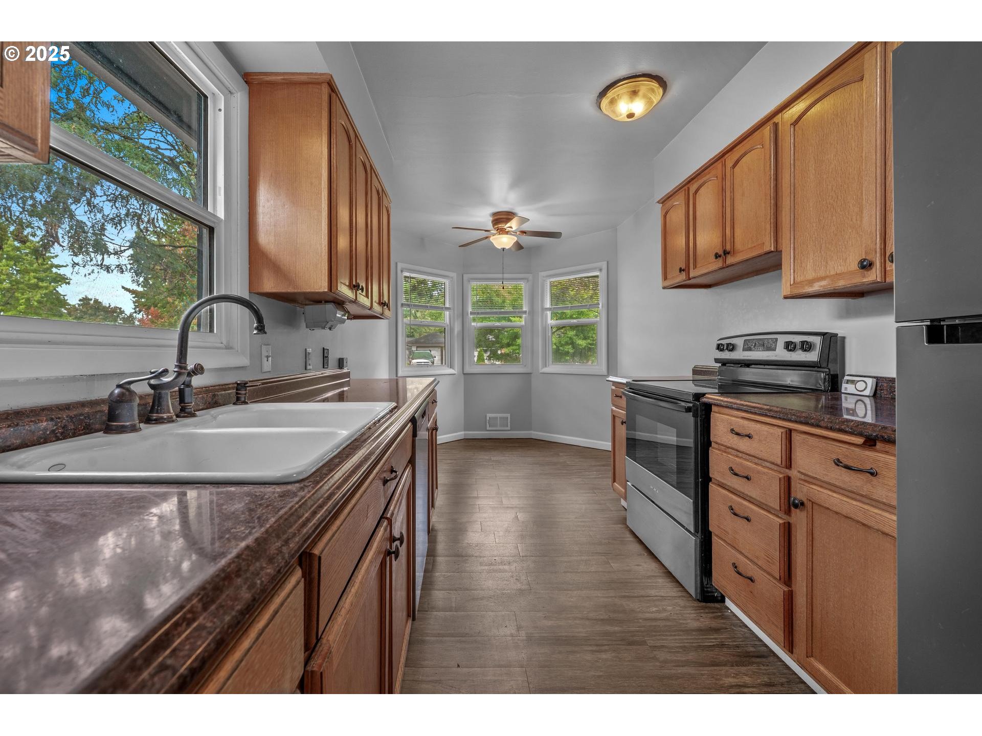 - Great opportunity for single story living with a full basement. 4 bedrooms, 2 bathrooms, 2240 sq/ft. Potential for dual primary bedroom or multi-generational living. Updated throughout. Kitchen features stainless appliances, stone counters & breakfast nook. Laminate flooring throughout main floor. Full living & dining rooms. Basement has two bedrooms, and one could easily be used as an entertainment or game room. Quiet neighborhood with easy access to I205. [Home Energy Score = 4. HES Report at https://rpt.greenbuildingregistry.com/hes/OR10189094]