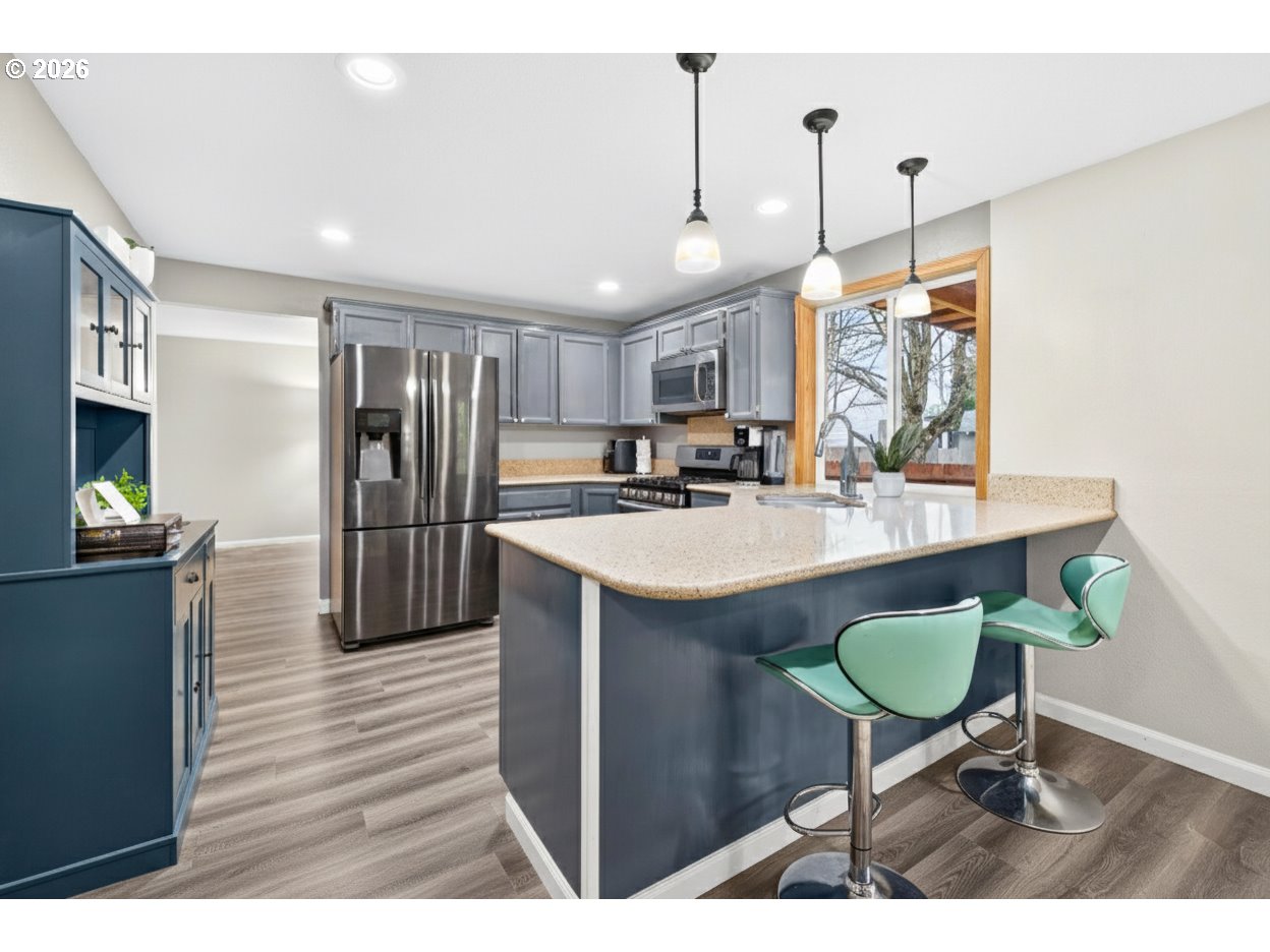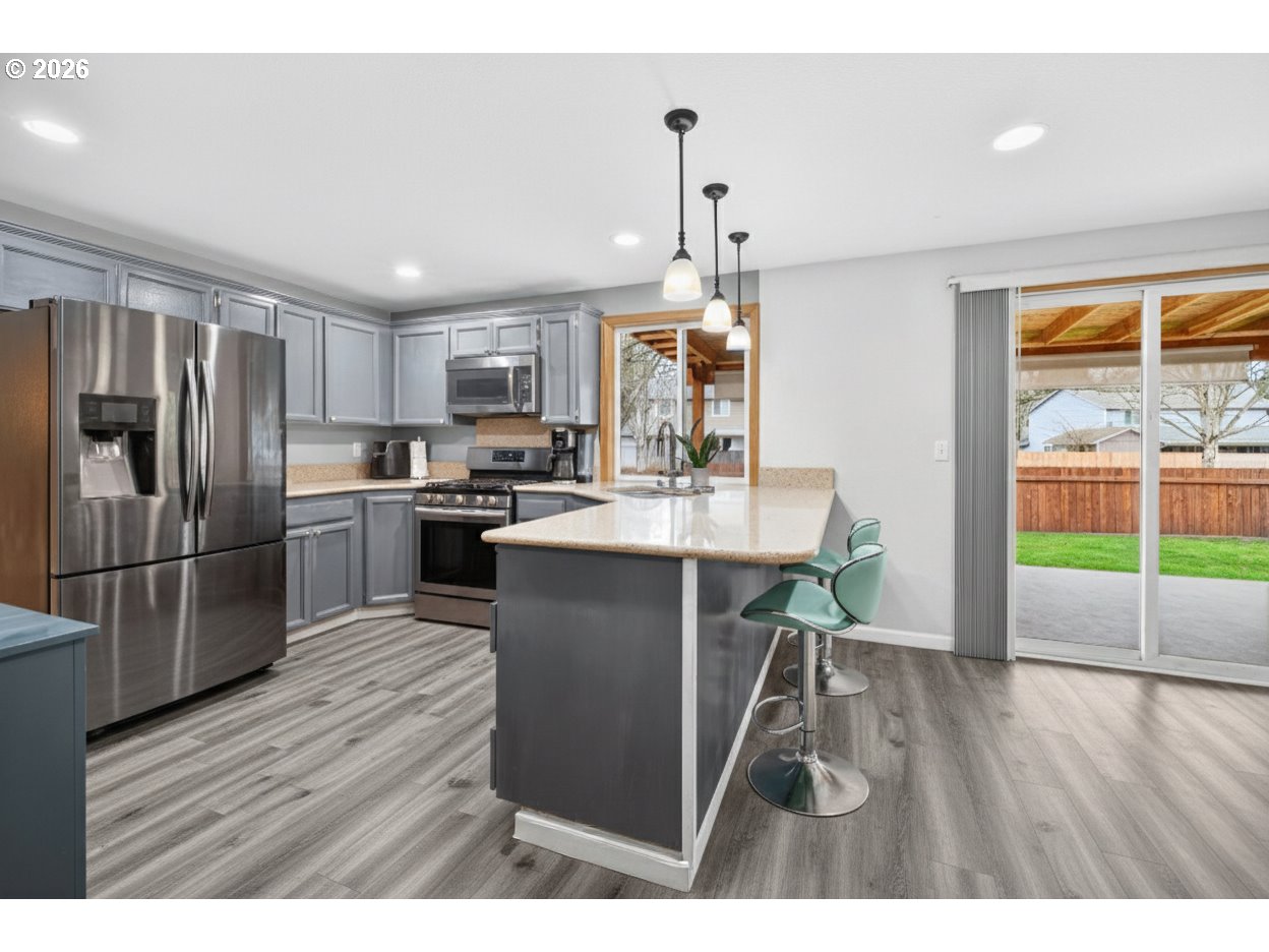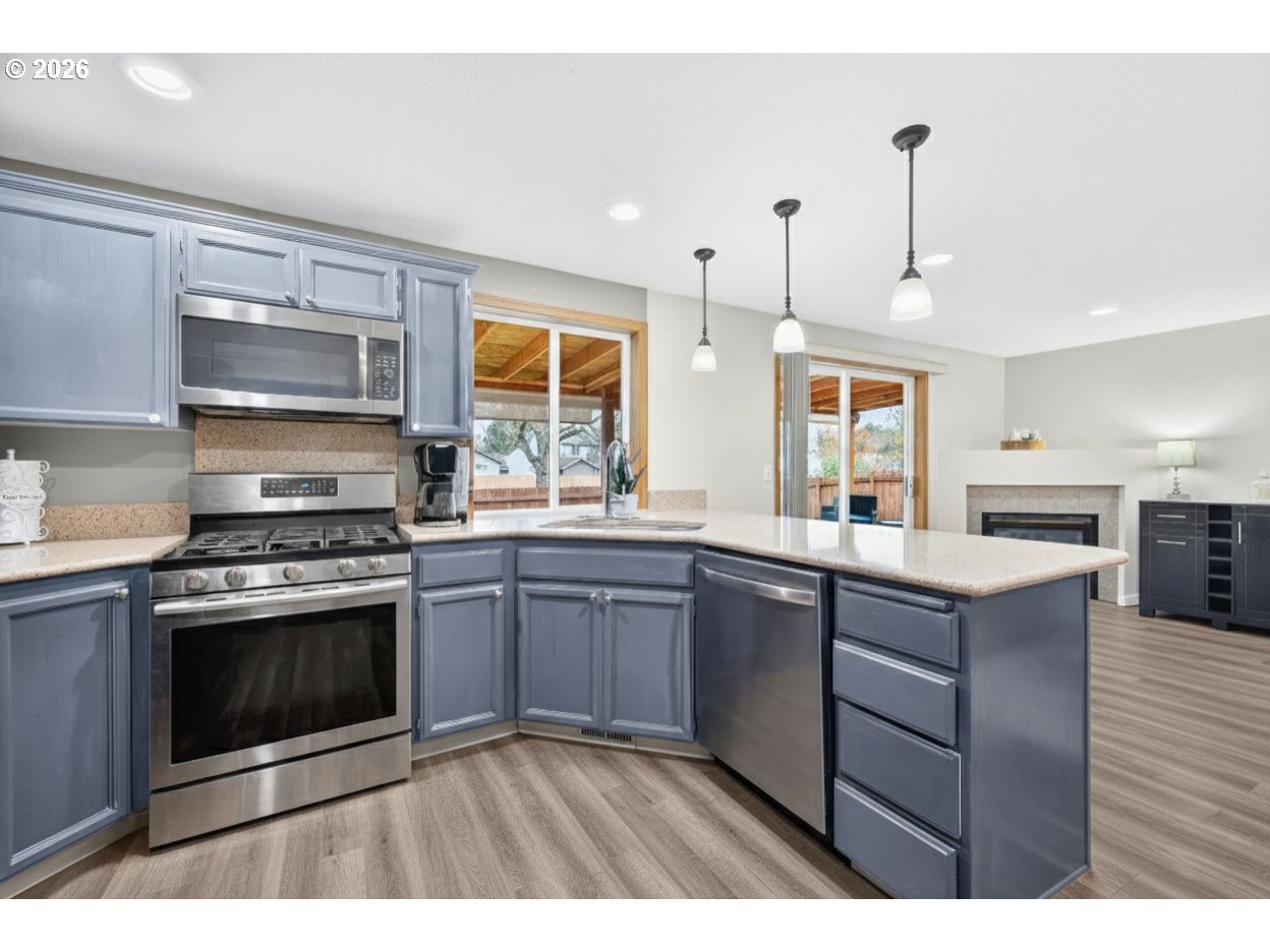 Welcome to 12 SE 9th Cir, a spacious 4-bedroom home thoughtfully updated for comfort and modern living. From the moment you arrive, the beautifully designed low-maintenance dry garden creates a peaceful and welcoming first impression. Inside, a bright open floor plan makes everyday living and entertaining effortless. The updated kitchen shines with stainless steel appliances, granite countertops, pendant lighting, and an eating bar. New LVP flooring flows throughout the entire main level, complemented by fresh interior paint and newer carpet upstairs for a move-in-ready feel. A cozy gas fireplace anchors the family room, with easy access to the covered patio and fully fenced backyard—perfect for gatherings, playtime, or quiet evenings at home.Upstairs, all four bedrooms offer generous space, including a comfortable primary suite with double sinks and a walk-in closet. Outside, the expansive driveway provides ample parking for multiple vehicles, along with dedicated RV and boat parking. With its thoughtful updates, flexible space, and inviting design, this home is ready to welcome its next chapter.