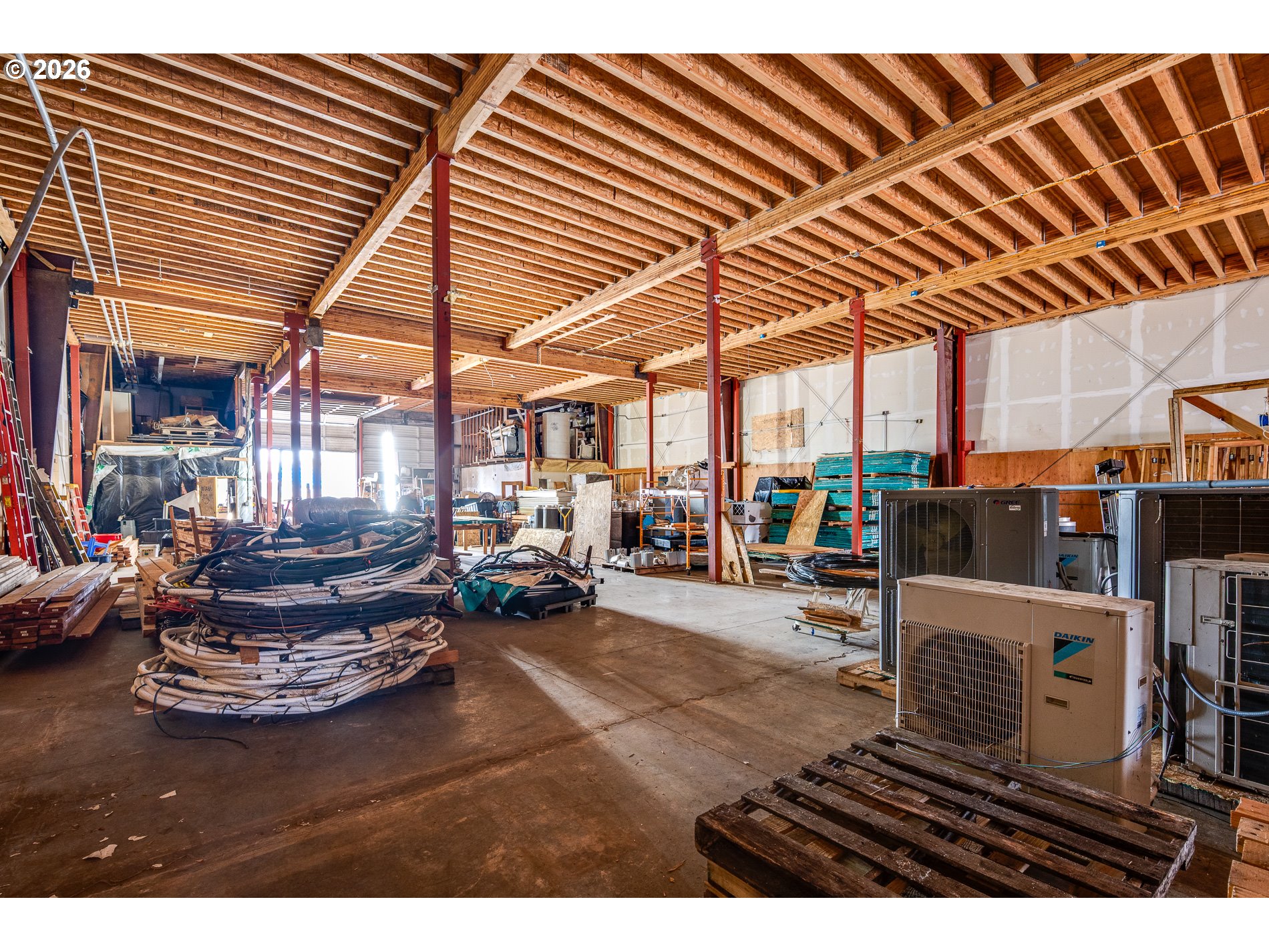 - Exceptional opportunity to acquire a highly functional warehouse with versatile use potential. The building can be easily demised to accommodate a variety of operational needs. It includes two private offices, each equipped with its own restroom. The open layout provides unobstructed space ideal for manufacturing, distribution, production, mechanical operations, and more. The property is equipped with three phase electrical service and features an additional 6,300 square feet of clear span mezzanine space, offering valuable expansion or storage capacity.