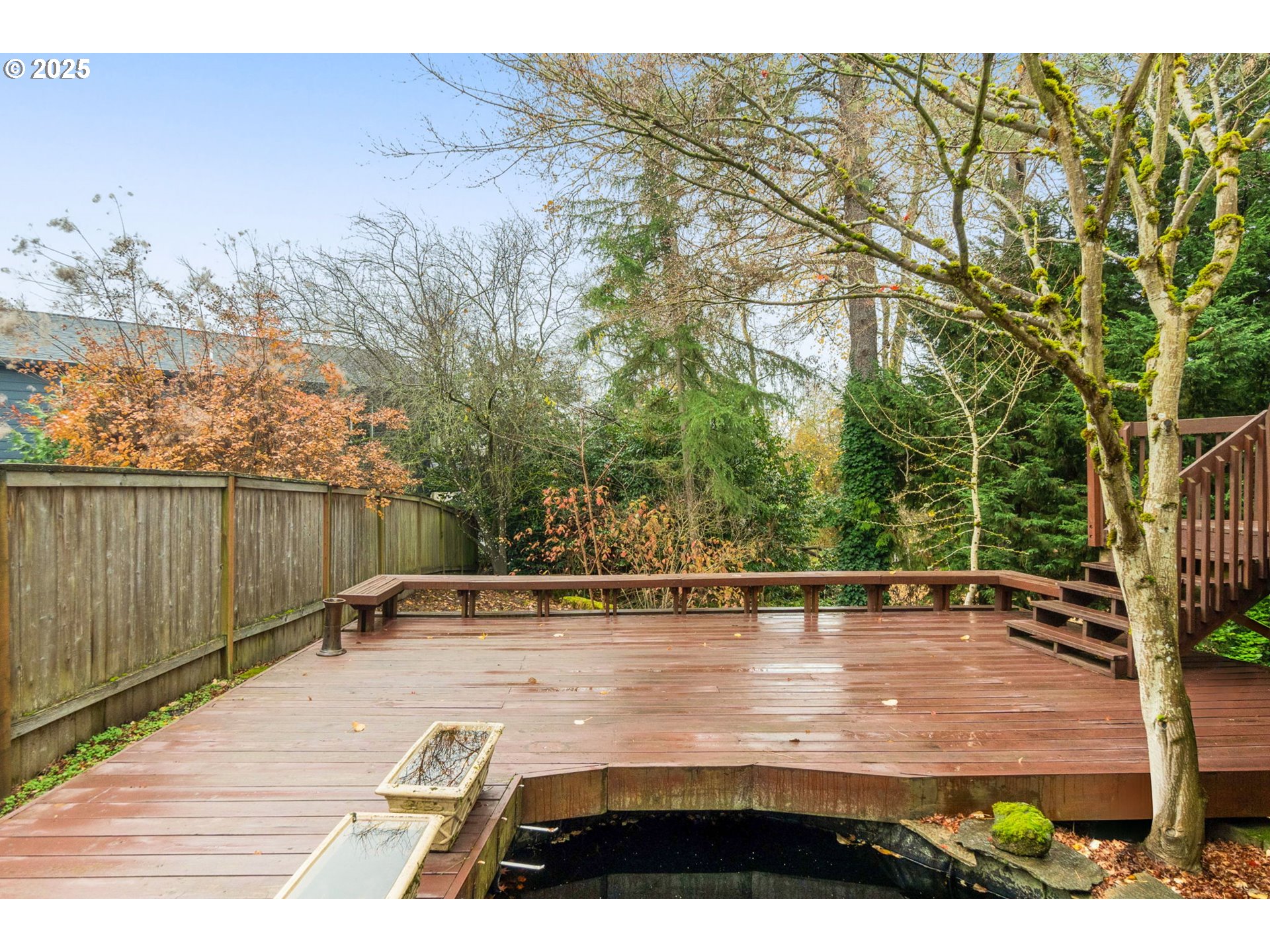 - Tucked into the end of a quiet cul-de-sac, this two-story home offers a blend of privacy, practical features, and everyday convenience. The setting is one of its standout qualities — no through traffic, a calm street, and a backyard designed to feel like its own little retreat.The outdoor space is where this home truly shines. An expansive deck overlooks a landscaped pond with a small waterfall, creating a peaceful backdrop that feels miles away from city life. It’s a rare combination: a low-maintenance yard that still delivers serenity, movement, and year-round interest.Inside, the layout is functional and comfortable. The main level flows naturally, with living and dining areas that look out onto the deck and greenery. Upstairs, the primary suite includes a walk-in closet and a versatile flex space — ideal for an office, reading room, creative corner, or anything that calls for a bit of separation and quiet. Both secondary bedrooms also feature walk-in closets, offering generous storage throughout.The extended-bay garage adds a smart bonus: extra room for a workshop area, storage, or gear that doesn’t quite fit in a standard two-car layout.Conveniently located near Washington Square Mall, major retail, dining, and everyday services, this home keeps essentials close while preserving a tucked-away feel. A comfortable, well-cared-for property with an outdoor setting that makes it easy to stay awhile.