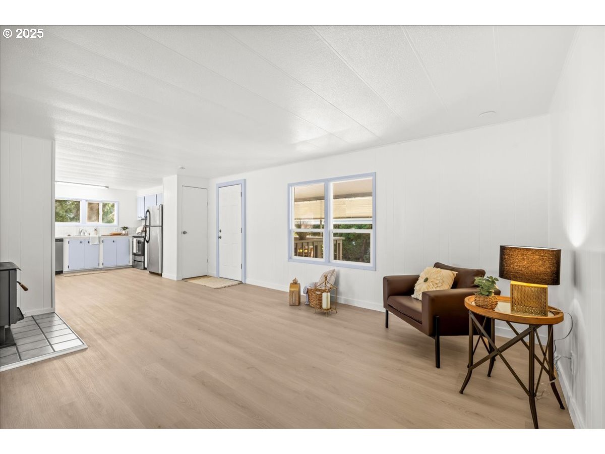 - Welcome to Pine Ridge Park, a quiet all-ages manufactured home community on the edge of town, offering peace and convenience just minutes from shopping, restaurants, and public transit. This beautifully refreshed single-wide home features fresh paint inside and out, a thoughtfully updated kitchen with stainless steel appliances, and durable LVP flooring throughout.The home offers 2 bedrooms and 1 bath, along with an inviting wood-burning stove to keep you cozy. An addition provides a versatile flex/office space, perfect for working from home or hobbies. Enjoy relaxing on the covered front deck, the spacious yard, and take advantage of off-street parking plus a large powered workshop for storage or projects.Another bonus: no property taxes! Park rent is $975/month. Ask your agent about financing options available for manufactured homes on leased land. Don’t miss the chance to make this move-in-ready home yours in the welcoming community of Pine Ridge Park.