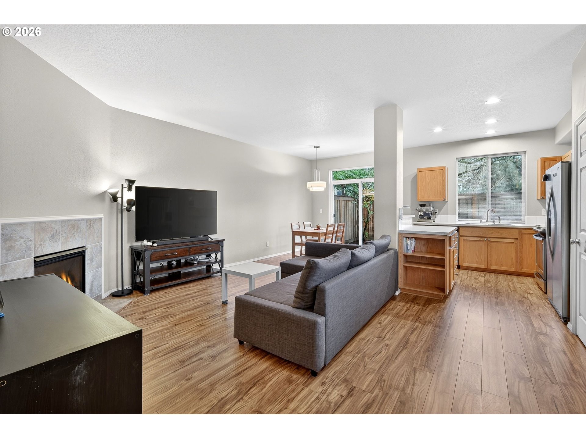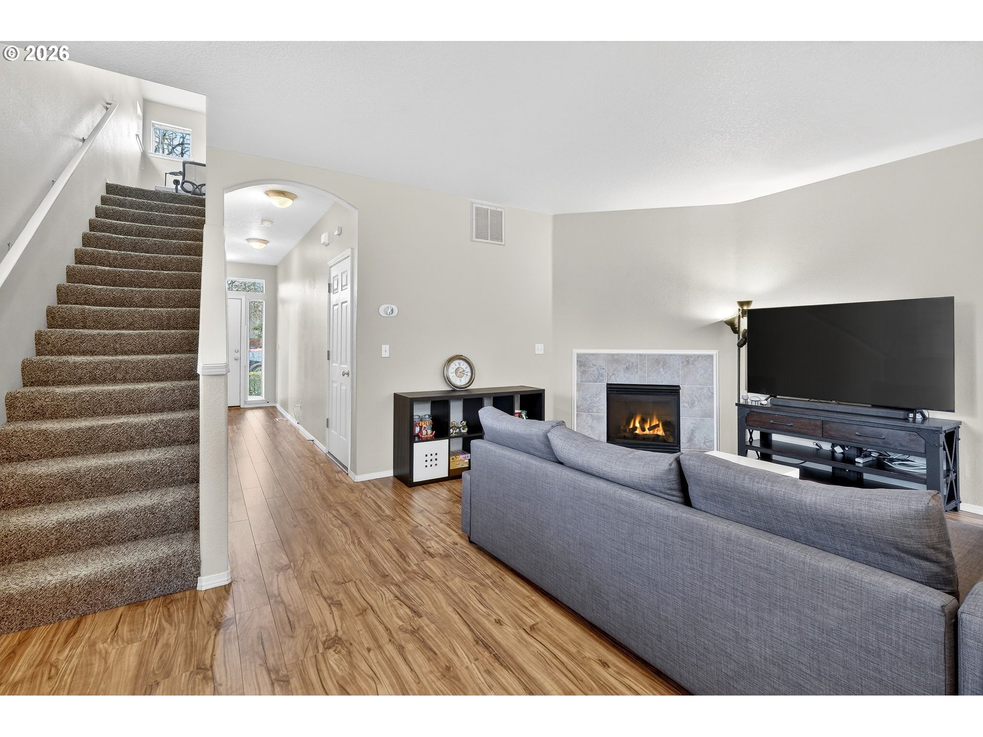 - *OPEN SATURDAY 1/31 & SUNDAY 2/1 FROM 12 PM - 2 PM* Welcome home! Gorgeous end-unit townhouse in Arbor Vineyards, tucked beside peaceful (HOA owned) greenspace on a quiet non-through street—with a brand-new roof & upgraded to a tankless water heater! A charming covered porch leads into a bright main level with engineered hardwood floors, powder room, and direct access to a clean attached one-car garage with under-stair storage. The open-concept great room features a cozy corner fireplace and flows effortlessly into a well-appointed kitchen with island, stainless steel appliances, pantry, and dining nook with slider to a fenced patio and yard—perfect for relaxing or entertaining. A gate in the fence leads to a common area that provides a nice buffer from neighbors. Upstairs, fully carpeted, a versatile loft opens to a spacious primary suite with French doors, vaulted ceiling, ensuite bath, and walk-in closet, plus two additional bedrooms, hall bath, and convenient laundry. Enjoy easy access to Arbor Vineyards park, playground, nature area, shopping, dining, and trails—don’t miss this one!
