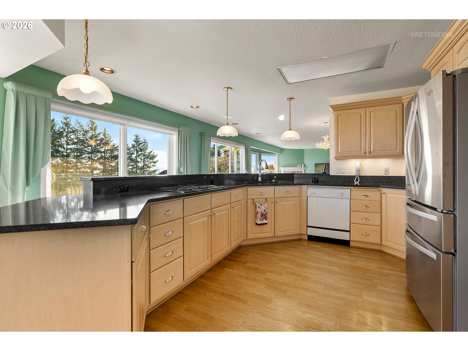 Custom built to take advantage of every view. Gorgeous mountains and valley open to morning sunrises. Huge Primary on the main floor with walk in shower, soaking tub, large vanity and walk in closet. 3 additional flexible rooms for family, guests or office. Updates include: newer roof, garage door opener, kitchen quartz counters, exterior paint. Fabulous, efficient geo thermal heating system, 100 gallon propane tank behind garage, wired 220 at gazebo area, 1191 SF of unfinished daylight basement rough plumbed for bathroom and bar sink and adds extra square footage instantly. Please request architectural renderings., 3 car garage has handy sink, LA water for quality inexpensive water. 2006 septic tank replaced. 2014 updated cooktop and refrigerator