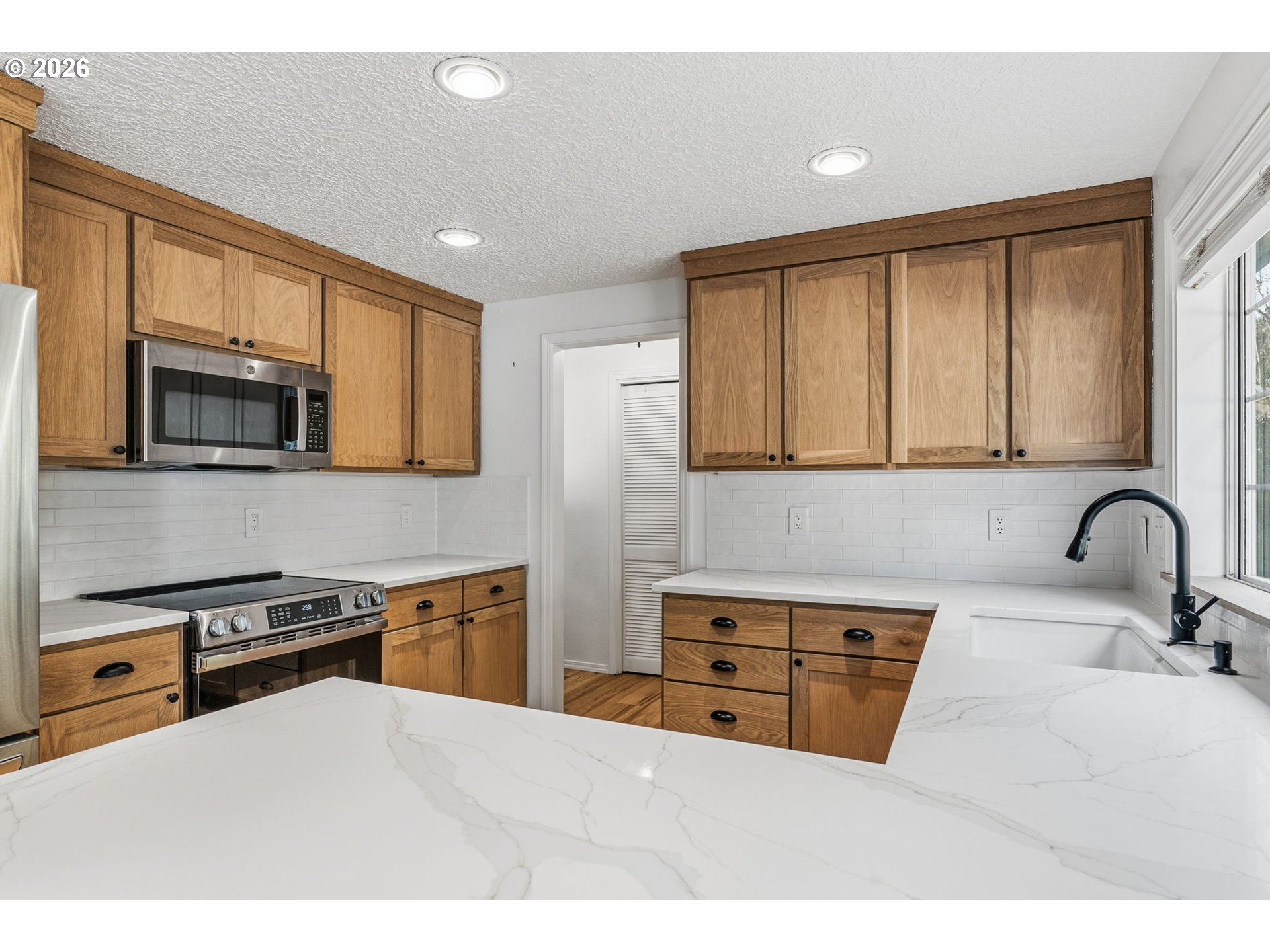 Welcome to this beautifully remodeled Felida home where thoughtful design meets everyday comfort. Offering 3 bedrooms and 2 fully renovated bathrooms across 1,250 sq. ft., this home also features a separate, dedicated home office, equipped with its own mini-split system—perfect for remote work, creative space, or guest use. Inside, enjoy two distinct living areas and a stunning brand-new kitchen, featuring quartz countertops, custom white oak cabinetry, a designer tile backsplash, and new stainless steel appliances. Both bathrooms have been completely remodeled with elegant tile finishes, and the home is anchored by new luxury vinyl flooring throughout. Step outside to a private, landscaped oasis with a cobblestone patio, tranquil water feature, firepit, and mature apple trees—ideal for entertaining or unwinding year-round. Additional highlights include an EV charger, a large side gate with RV parking, and attention to detail at every turn. This turnkey Felida property blends modern updates with timeless charm, an exceptional opportunity in one of the area’s most desirable neighborhoods.