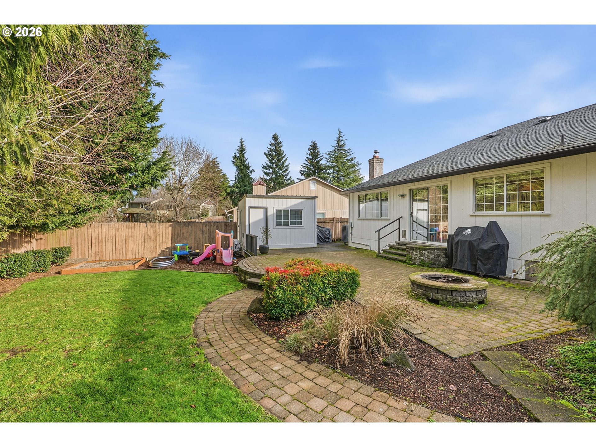 Fenced, Fire Pit, Garden, Outdoor Fireplace, Patio, RV Parking, Tool Shed, Water Feature, Yard