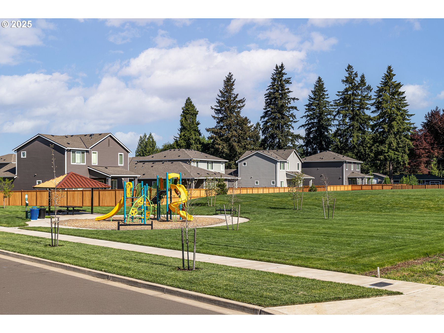 - The Columbia floor plan is the perfect blend of modern design and functional living, providing an airy and open concept layout that encourages both relaxation and socialization. As you step through the front door, you are immediately welcomed by the open sightlines that lead from the foyer into the expansive family room. This central living space serves as the heart of the home, where high ceilings and large windows create a bright and inviting atmosphere. The family room flows effortlessly into the dining area and kitchen, ensuring that no matter where you are in the main living space, you feel connected to everything happening around you. The living room is centered around a beautiful gas fireplace that will make for a cozy oasis during the cold winters. The master bedroom is tucked away towards the back of the home with its own, separate hallway giving the room tons of privacy. It also features a massive walk-in closet that adds a significant amount of storage space to the home.This home has a large, fenced-in backyard that features an attached, covered patio that provides some much needed shade during the warm summer months! The front of the home also has a covered patio that makes the perfect nook to relax and enjoy the neighborhood views. This home is located directly across the street from the brand-new, private playground and beautiful shared green space that is great for kids and dogs to run around. The community also features paved sidewalks that are great for walking and biking. The community is built on two private streets that prevent through traffic and enhance the overall safety of the neighborhood.