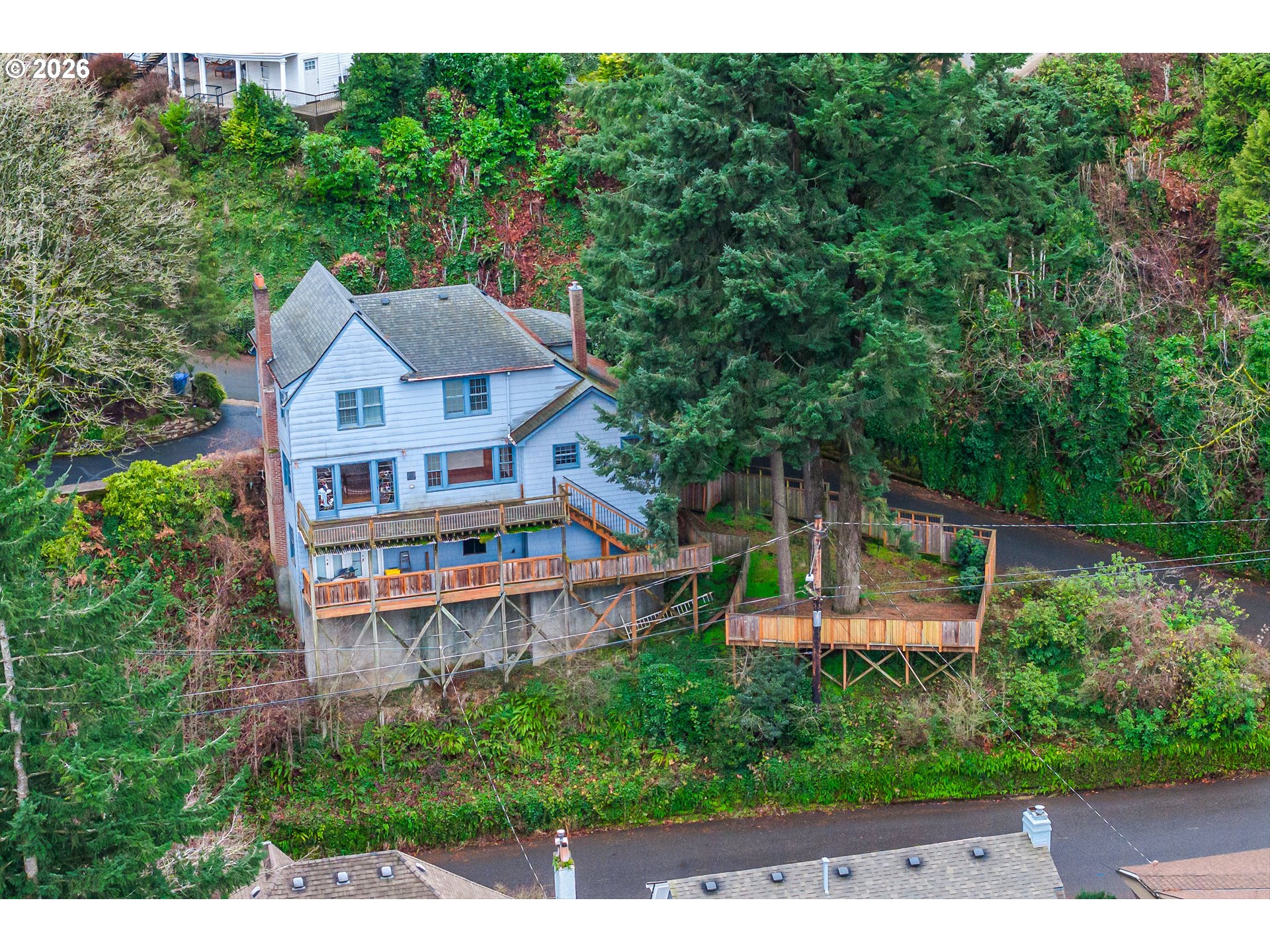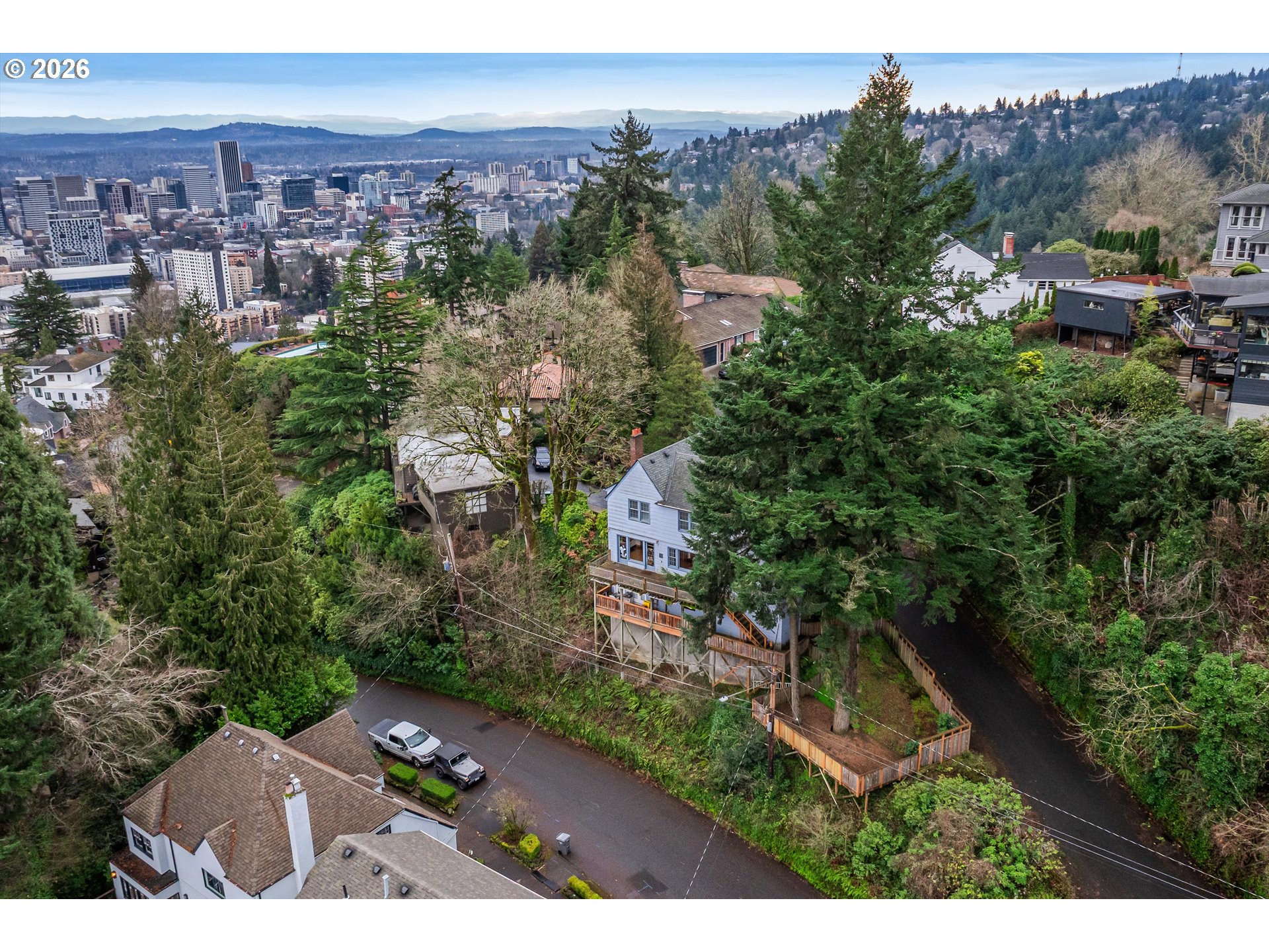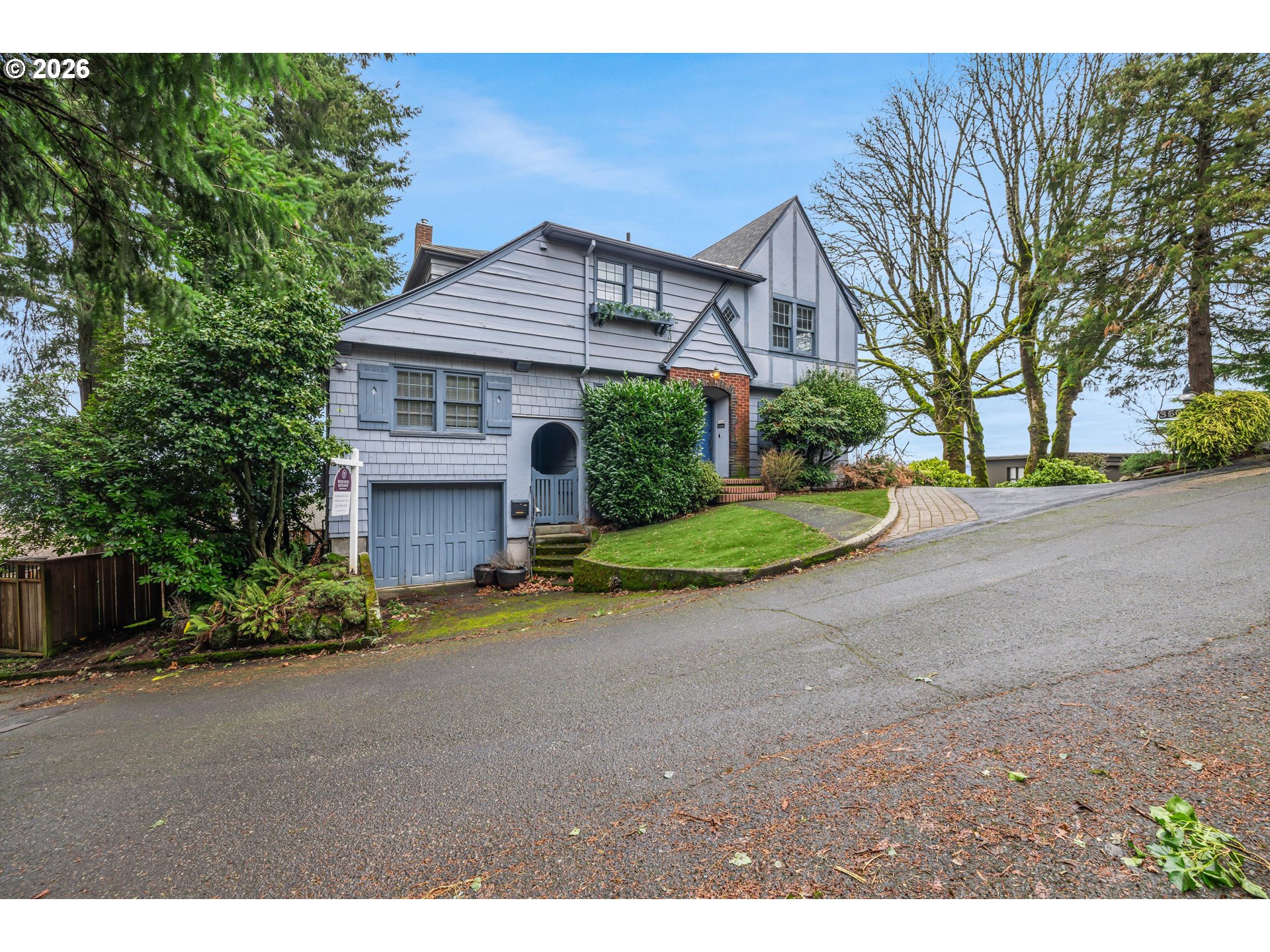 - Classic 1928 Tudor in Portland’s prestigious Kings Heights neighborhood, offering timeless architecture and city and Willamette River views from the rear of the home. This 3 bedroom, 2.5 bath residence blends historic charm with modern updates. Rich wood floors and elegant crown moldings highlight the character throughout, while fresh interior paint and new carpet provide a move-in-ready feel. The formal dining room features beautiful built-ins, adding both charm and function for entertaining and everyday living. Light-filled living spaces showcase classic detailing and an inviting layout. Situated on a private hillside setting with mature landscaping, this home enjoys a peaceful retreat just minutes from downtown Portland, NW shops, dining, and trail access. Finished studio apartment that can be rented separately, with full bathroom, wood burning fireplace, kitchenette and separate entrance. A rare opportunity to own a distinctive Tudor in one of Northwest Portland’s most sought-after neighborhoods with breathtaking outlooks and enduring style. [Home Energy Score = 1. HES Report at https://rpt.greenbuildingregistry.com/hes/OR10239184]
