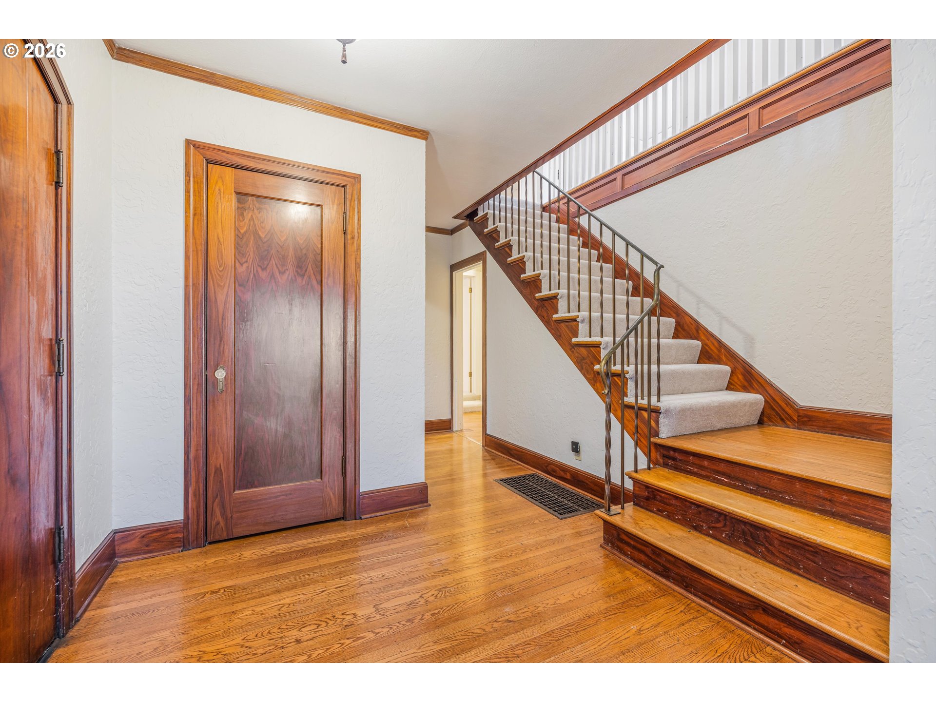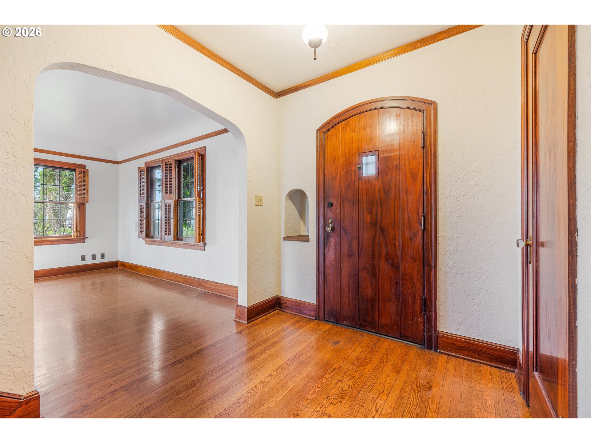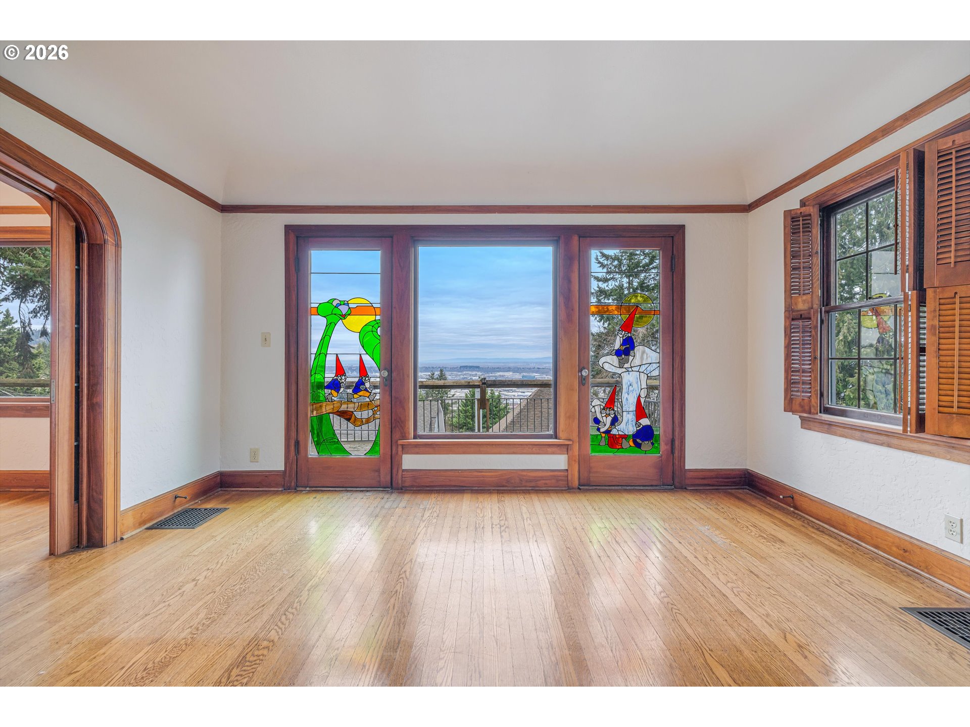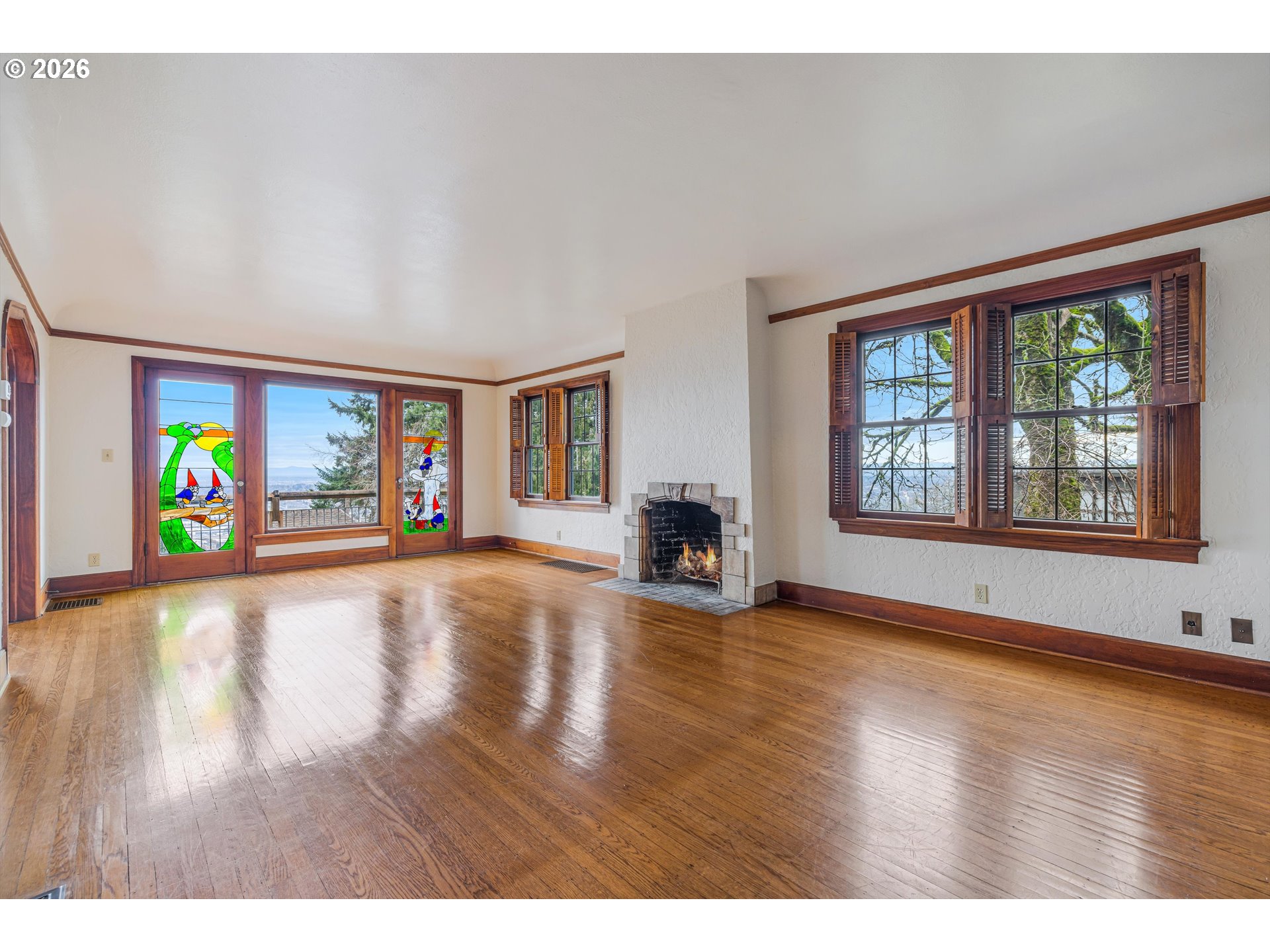 - Classic 1928 Tudor in Portland’s prestigious Kings Heights neighborhood, offering timeless architecture and city and Willamette River views from the rear of the home. This 3 bedroom, 2.5 bath residence blends historic charm with modern updates. Rich wood floors and elegant crown moldings highlight the character throughout, while fresh interior paint and new carpet provide a move-in-ready feel. The formal dining room features beautiful built-ins, adding both charm and function for entertaining and everyday living. Light-filled living spaces showcase classic detailing and an inviting layout. Situated on a private hillside setting with mature landscaping, this home enjoys a peaceful retreat just minutes from downtown Portland, NW shops, dining, and trail access. Finished studio apartment that can be rented separately, with full bathroom, wood burning fireplace, kitchenette and separate entrance. A rare opportunity to own a distinctive Tudor in one of Northwest Portland’s most sought-after neighborhoods with breathtaking outlooks and enduring style. [Home Energy Score = 1. HES Report at https://rpt.greenbuildingregistry.com/hes/OR10239184]