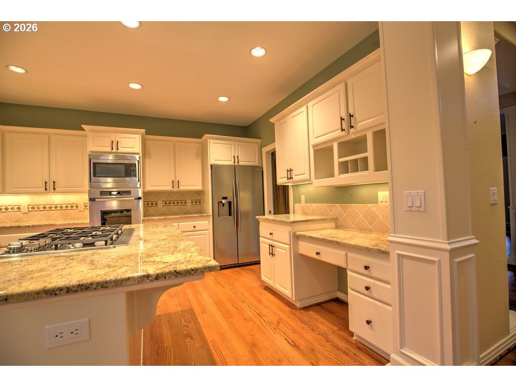 - A truly stunning and special Bull Mountain home, custom-built and beautifully upgraded, offering a rare combination of elegance, privacy, and an exceptional greenbelt setting. Positioned on a ¼-acre lot backing to a peaceful greenbelt, this residence feels both serene and secluded while remaining close to everything. From the moment you enter, the home impresses with its inviting flow and thoughtfully designed living spaces, ideal for everyday comfort and effortless entertaining. The gourmet kitchen features a large island and quality appliances, opening seamlessly to an expansive family room with built-ins and a striking rock fireplace. Enhancements include air conditioning, central vacuum, wet bar, custom blinds, and abundant storage throughout. The primary suite is a true retreat, featuring heated bathroom floors, a heated towel rack, and a heated toilet, along with two walk-in closets for exceptional comfort and convenience. Outdoor living is exceptional. A level, entertainer’s backyard showcases stamped concrete, rock walls, ambient lighting, irrigation, and walking paths that blend naturally into the surrounding greenbelt. A covered deck with gas BBQ hookup creates a perfect year-round retreat, complemented by a storage building and new fencing (2021). A spacious three-car garage adds outstanding functionality with a workbench with sink, built-in cabinets, overhead storage, and a 220-volt outlet, ideal for hobbies, projects, or EV charging. Notable upgrades include a new HVAC system with two-zone baffle system (2019), new roof (2020), bathroom remodel (2021), new washer and dryer (2024), new main water line from street to house (2024), and solar attic fans (2025). Ideally located near Progress Ridge, Washington Square, and Bridgeport Village, with parks, walking paths, and trails nearby, plus access to desirable Tigard-Tualatin schools and convenient commuting routes. Homes of this quality, privacy, and setting rarely come available.