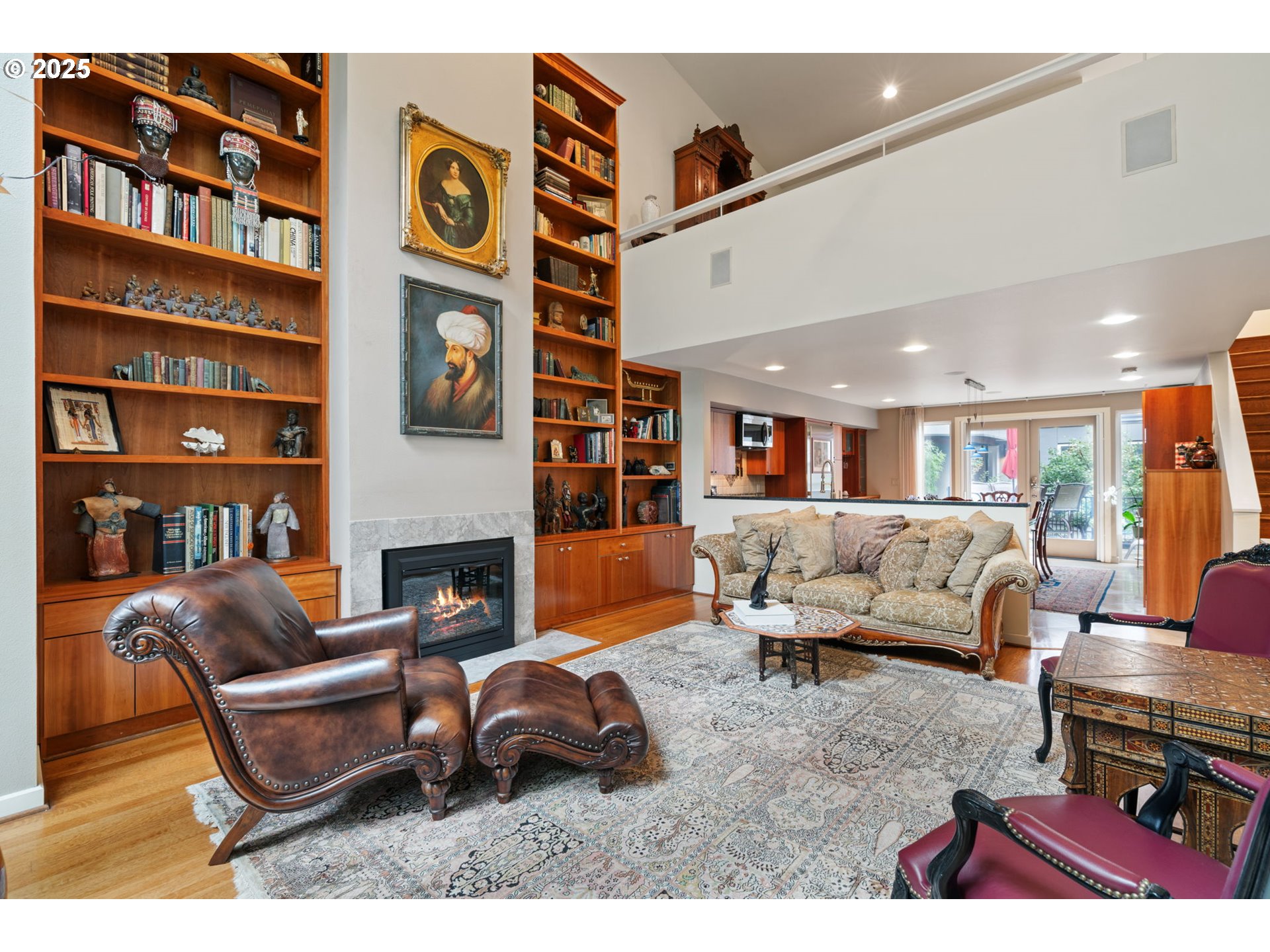 - In a city of glass towers and identical high-rise condos, this Pearl District townhome stands apart—an urban retreat where luxury meets individuality. A residence designed for those who crave character and privacy without sacrificing the energy of the city life. The main floor is a true centerpiece. The living room, anchored by soaring 20’ ceilings filled with floor-to ceiling bookshelves, creates a sense of warmth and sophistication not typically found in city living. The open concept design seamlessly connects the living room to an expansive kitchen and a private, quiet outdoor balcony, perfect for evening gatherings. The layout of the home was built for choice with the option of of two primary suites: on the ground floor, French doors open directly to a private courtyard , an inviting setting for morning coffee or quiet evenings under the covered patio. Or retreat upstairs to the third-floor loft suite, where high ceilings and oversized windows flood the space with natural light. Across the courtyard, with its own private entrance, a fully equipped studio ADU with kitchen provides unmatched versatility—ideal as a home office, guest quarters, or convert to an Airbnb rental. A two-car attached garage adds rare convenience, while recent community updates, including a new roof (2024) and fresh exterior paint (2025), ensure peace of mind for years to come. Located blocks away from Jamison Square, The Fields Park, and some of Portland’s best dining, cafés, and boutiques, this residence is more than a home—it's a refined sanctuary in the heart of the Pearl District.