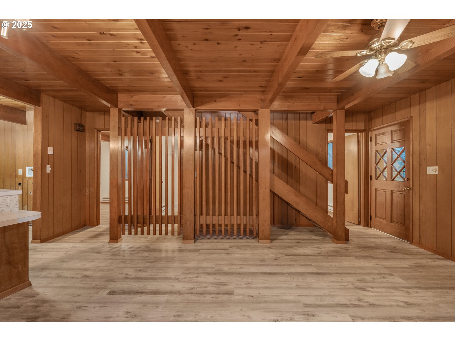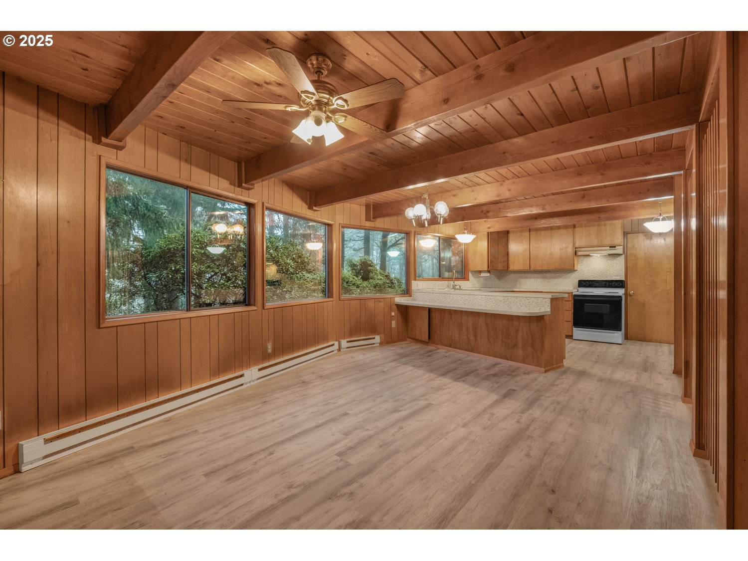 - Tucked away on 13.58 secluded, tree-filled acres across 3 tax lots, this rare country property is bursting with potential for the buyer who’s ready to roll up their sleeves and create something special. The main home is a 4 bedroom, 2 bath fixer making it an ideal canvas to make it your own, and there’s a second home likely to not be financeable. Inside, you’ll find gorgeous wood-beamed ceilings and a bright, welcoming layout. The main living space features beautiful laminate flooring and an open-concept living/dining area with a wall of windows framing peaceful forest views and filling the home with natural light. The kitchen offers tons of prep space for cooking and baking, plus an eat-bar that's perfect for casual meals and conversation. The main level includes two bedrooms, a full bath with walk-in shower, and a convenient laundry area. Upstairs, enjoy a spacious family room with another full wall of windows, a cozy pellet-burning stove, and sliders leading to a large 22x23 balcony deck that's the perfect spot to relax, unwind, and take in the treetop scenery. Two additional bedrooms and a full bath with tub/shower complete the upper level. Need space for hobbies, storage, or projects? You’ve got it: a two-level 24x30 shop with 18 inch cement that includes 2 barn doors. The barn design is similar to a daylight basement (the west side is open for horses or cattle to enter/exit the barn). Plus there's a 21x23 garage with storage cabinets and its own wood-beamed ceiling that could potentially be a great future bonus room, studio, or flex space. Enjoy the feel of true country living while still being minutes to dining, shopping, schools, and parks with hiking trails. A unique acreage-and-opportunity package so bring your vision and make it yours!