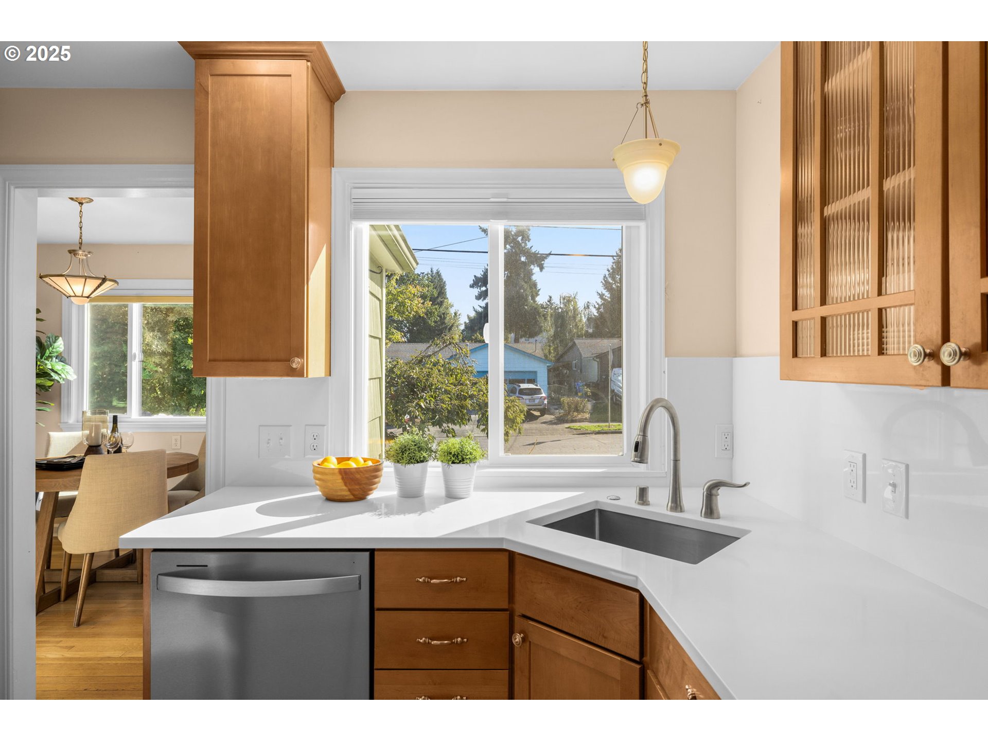 - Light abounds in this bright Westmoreland charmer! Many original details, including hardwood floors throughout home. Living room features beautiful gas fireplace with new insert (2025), remote control and original tile surround. Separate dining room. Two bedrooms and updated bathroom on main level. Beautiful primary retreat upstairs includes bright bathroom with double vanity, walk-in closet and separate office or nursery. Recent updates include new roof (2024), new deck (2023), new dishwasher and Quartz kitchen countertops (2025), new dryer (2023). Updated double-paned vinyl windows throughout. Unfinished basement offers loads of potential and includes a laundry area with sink. Single attached garage and off-street parking. Beautiful, fully-fenced backyard with deck, covered patio and gardening shed. Very desirable neighborhood. Walk to Westmoreland shops and restaurants. Less than four blocks to Westmoreland Park, Less than a mile to Eastmoreland Golf Club, Sellwood Community Center and Johnson Creek Park. Close to bus and MAX lines. [Home Energy Score = 6. HES Report at https://rpt.greenbuildingregistry.com/hes/OR10189272]