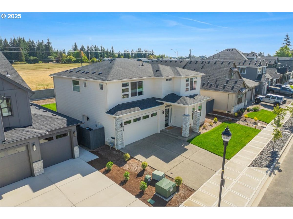 - Step into modern living with this stunning one year old home that feels better than new. From the moment you enter, soaring 20-foot ceilings and oversized windows fill the space with natural light. The sleek kitchen boasts ceiling height cabinets, double ovens, under cabinet lights and built in USB outlets. A modern cable stair railing leads upstairs, where the open design allows you to take in views of the space below. Every detail has been designed for style and function, from the up down blinds to the contemporary finishes throughout. The tandem three car garage offers plenty of room for vehicles, storage, or a home gym. Modern, light-filled, and thoughtfully designed, this is your forever home.