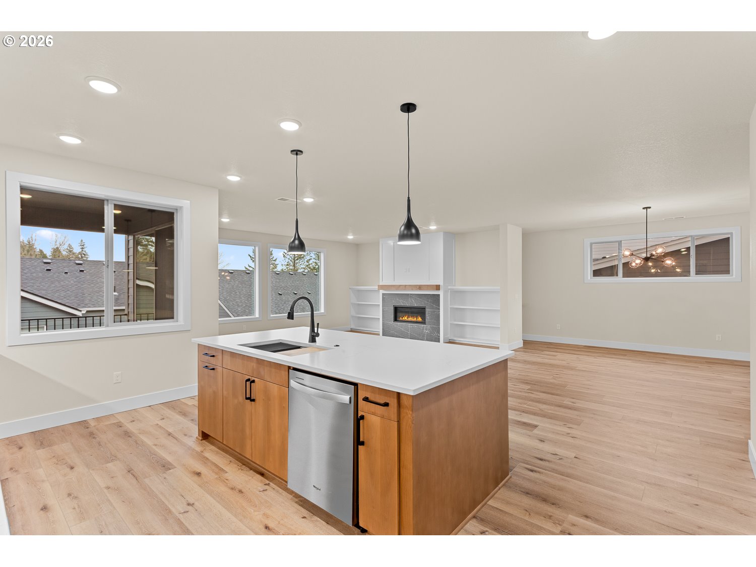 - Bedroom and full bath on main! This daylight basement home features generous living space throughout plus stunning territorial views from upstairs. Appointed with modern style alder-stained cabinetry, a gourmet kitchen with slab quartz countertops and undermount sinks, a walk-in pantry off the owner's entry and stainless steel Whirlpool appliances, including 5 burner gas cooktop w/hood vent, built-in double-ovens, microwave and stainless steel tub dishwasher. A large dining area and a den/5th bed on the main level. Upstairs you will enjoy an expansive primary suite with generous walk-in closet and adjoining bath with all tile shower and soaking tub plus 2 additional bedrooms and a large bonus/4th bed. Fully landscaped front and rear yard. Fenced back yard with gate. Seek solitude or fun in the daylight basement featuring a rec room and full bath. Central air conditioning, tankless hot water heater and built with energy saving features!