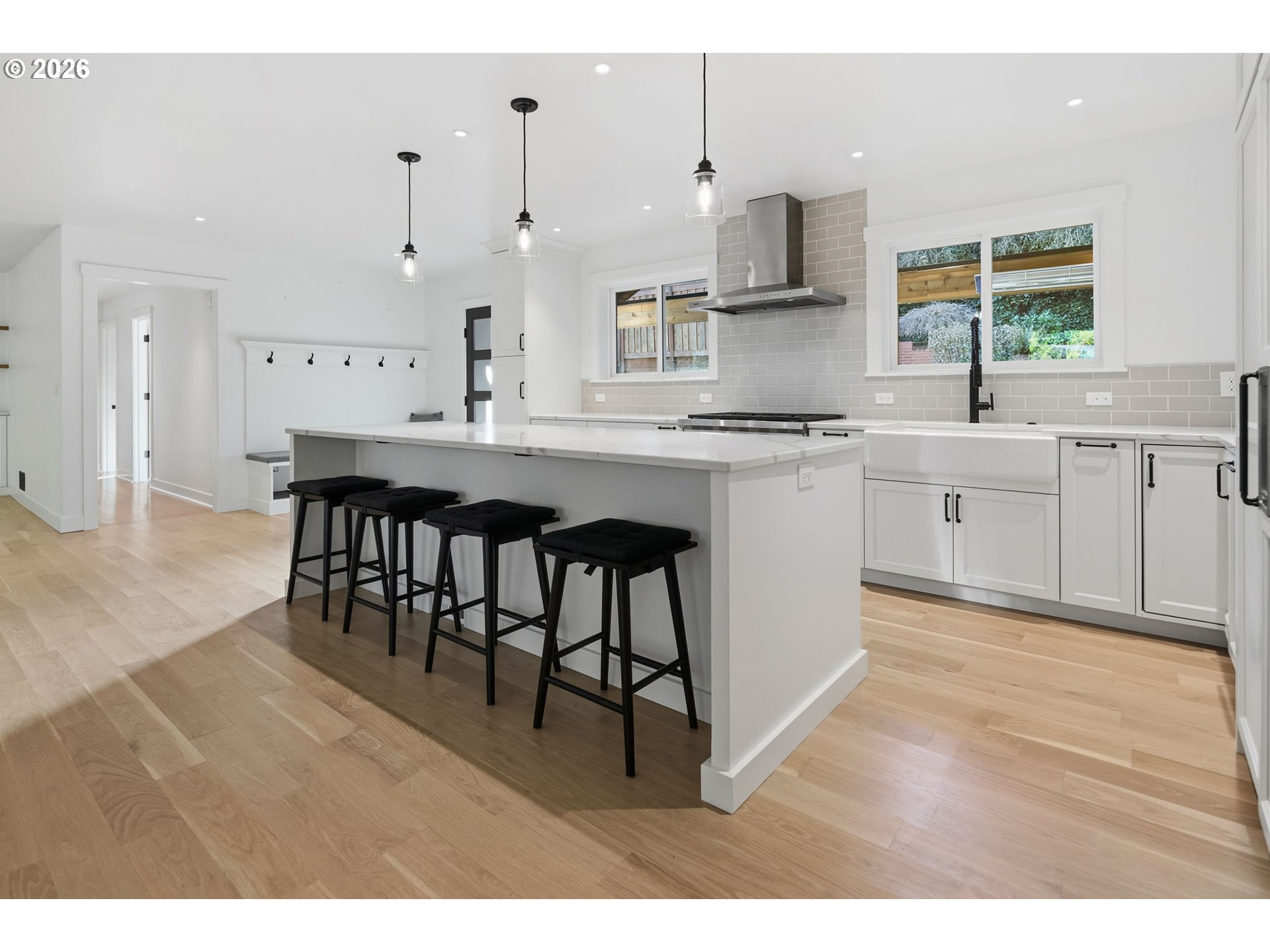 Tucked at the end of a quiet cul-de-sac in prestigious Dunthorpe, this beautifully updated 1951 residence offers a rare combination of privacy, scale, and timeless design on a generous .44-acre lot near Riverdale schools. Thoughtfully reimagined for modern living, the home features light-filled gathering spaces, a welcoming living room with floor-to-ceiling windows and a gas fireplace, and a refined kitchen with quartz countertops, a central island, and premium Wolf, Bosch, and SubZero appliances. A main-floor primary suite enhances everyday comfort, while additional bedrooms and flexible living space extend to the lower level. Inviting outdoor areas—including a cedar-paneled covered front porch and an expansive back patio overlooking a tiered yard—complete this elegant offering in one of Portland’s most desirable settings.