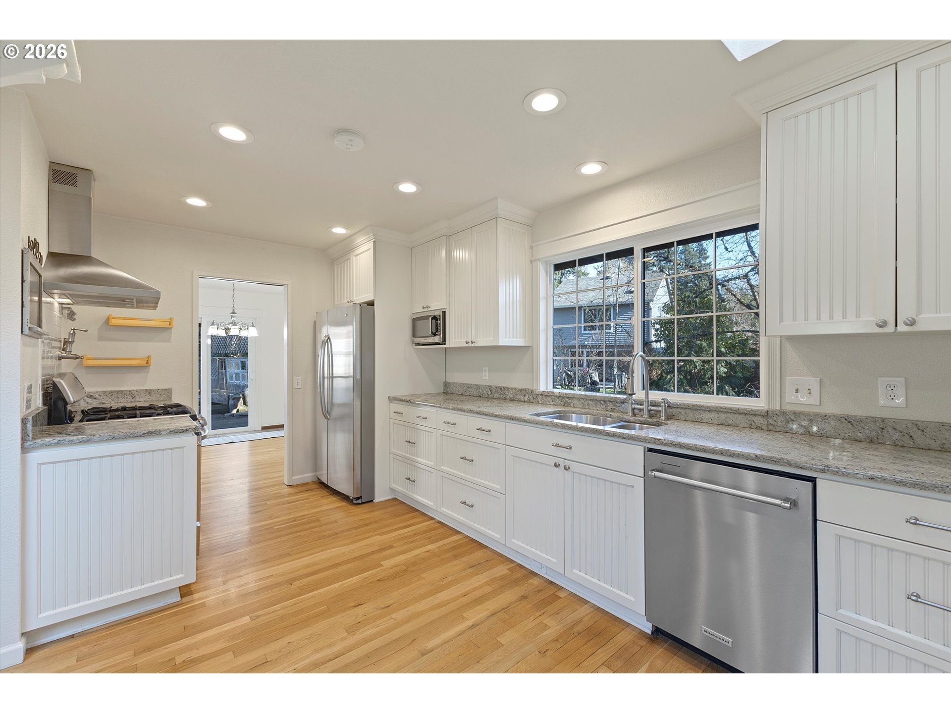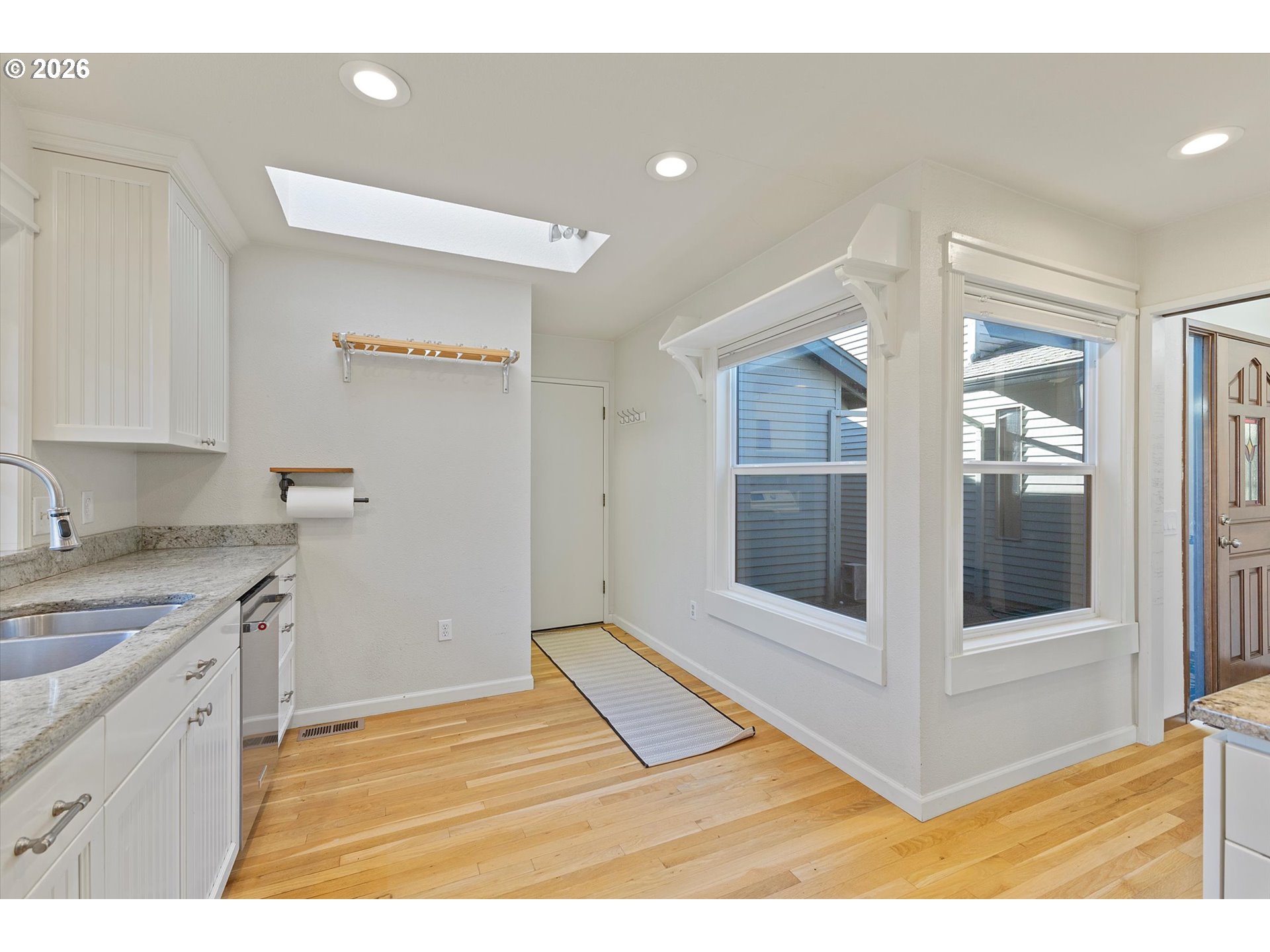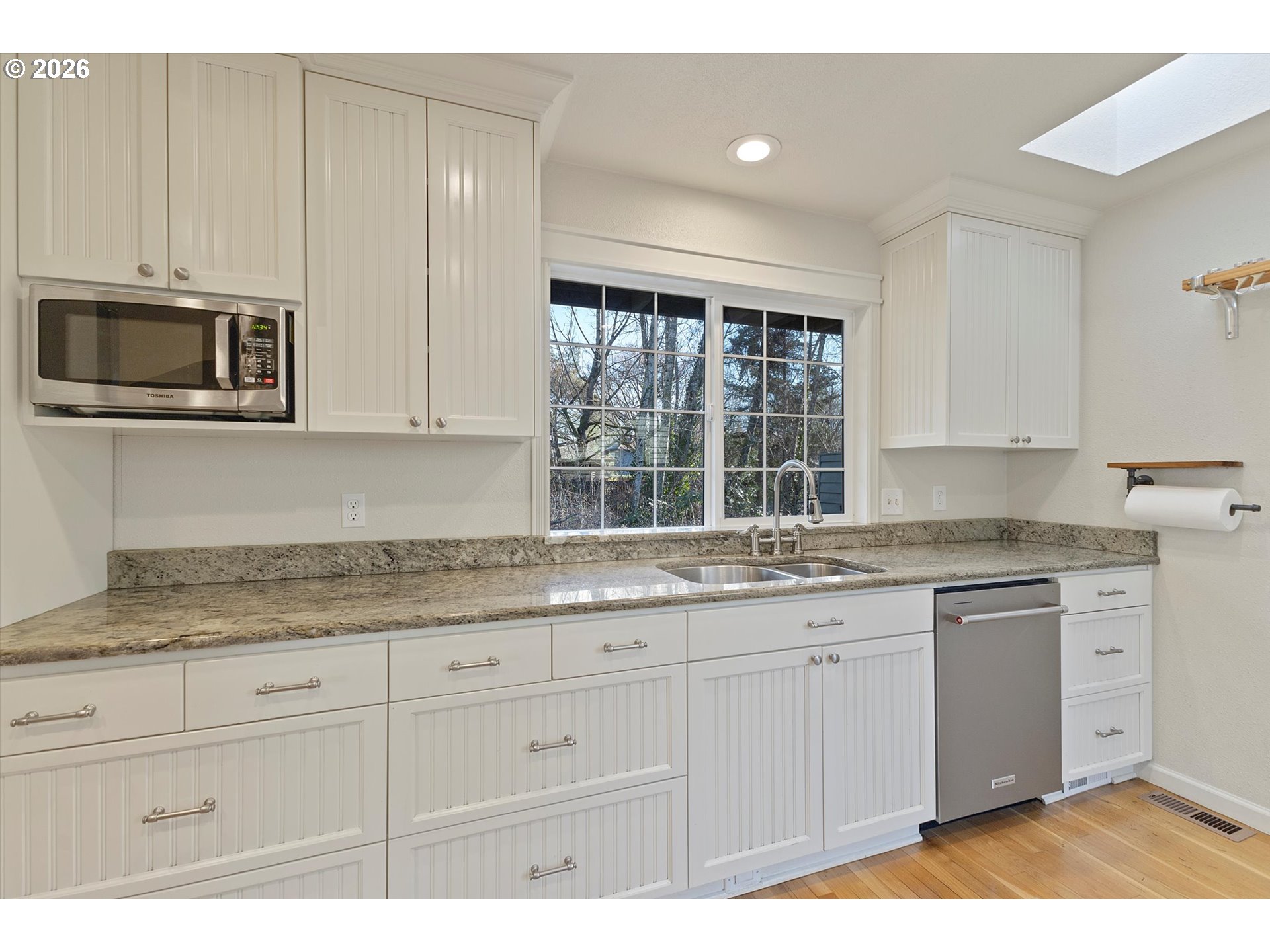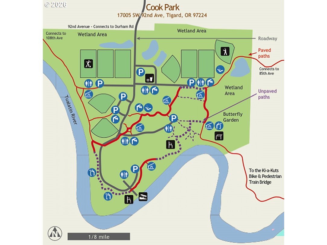 - My favorite location in Tigard! Trail to Cook Park, and Tualatin River is right across the street! Cook Park is amazing, 79 acres of trails, boat launch, ball fields, playgrounds, even a trail that goes across river into Tualatin. See video about location. Plus you can walk to school, cafes, Trader Joes, shops and restaurants! House is remodeled with gorgeous kitchen with granite, stainless appliances and gas range, skylight, and hardwood floors! The living room has vaulted ceiling and skylight with fireplace and skylight, dining room has hardwood floor and slider to private backyard with big deck, raised beds and greenspace on side and back plus little creek. Bathrooms are remodeled. This is a wonderful place to live, very quiet and private yet close to everything!!
