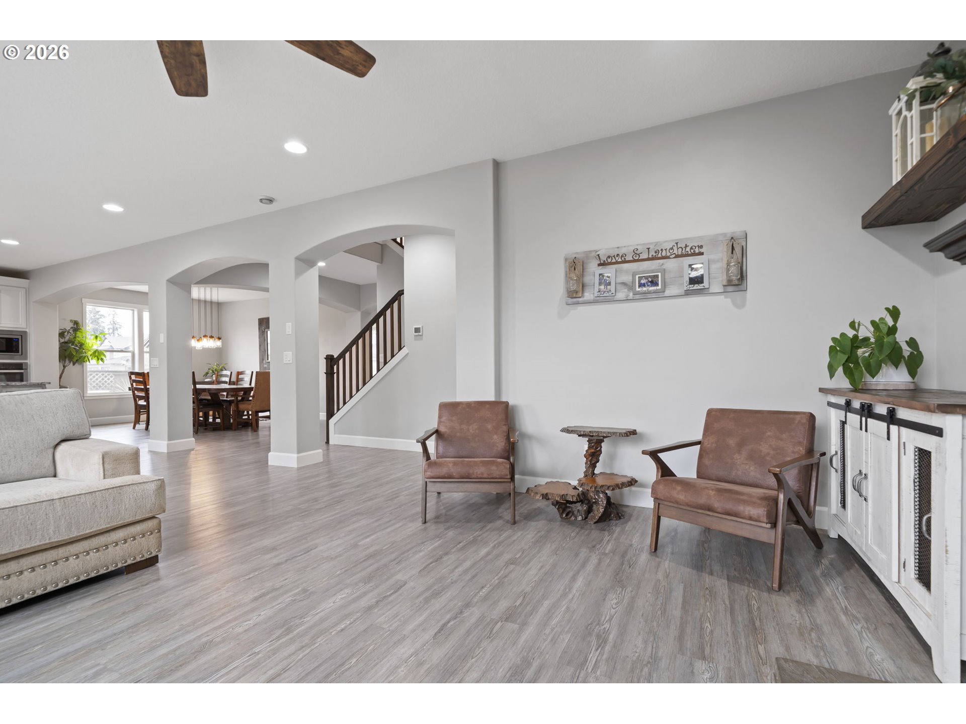 - Stunning corner-lot home offering rare privacy with only one shared property line and a fully fenced backyard with a patio and deck, creating endless possibilities for outdoor living, entertaining, play, or future garden dreams. The open-concept layout invites you in with a cozy fireplace anchoring the living room, flowing seamlessly into the kitchen with an island, stainless steel appliances, pantry, and a spacious dining area perfect for everyday meals or hosting friends. Two primary suites provide exceptional flexibility, including a main-level suite with an ensuite and walk-in closet, plus an upstairs primary retreat featuring dual sinks, a soaking tub, and a step-in shower. A sun-filled office with French doors offers the ideal work-from-home setup, while the upstairs bonus room is ready for movie nights, a game room, or creative space. With surround sound wiring in the living room and bonus room, upstairs laundry, a three-car garage, and a location with convenient access to parks, schools, shopping, and commuter routes, this move-in-ready home is designed to fit the way you live and love where you live.