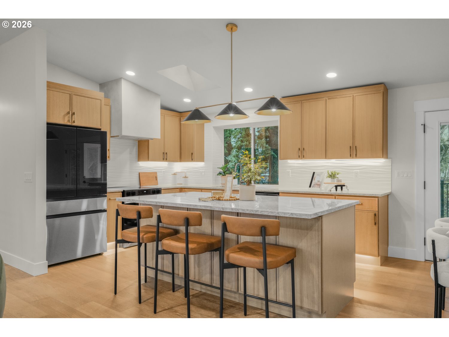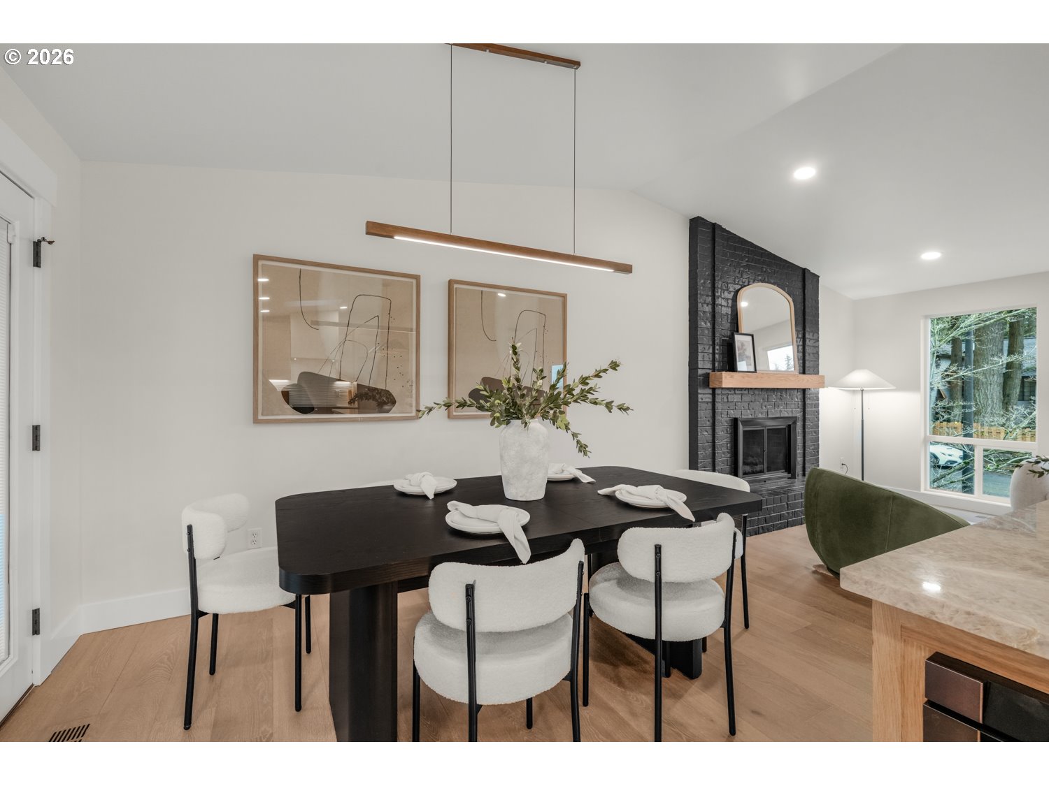 - A stunningly remodeled mid-century modern gem in the desirable Fir Park neighborhood, this exceptional 4-bedroom, 3-bath home blends timeless architecture with luxurious modern updates. Set on a beautifully landscaped .16-acre lot, the property offers striking curb appeal and has been thoughtfully remodeled inside and out with high-end, quality finishes throughout. Recent upgrades include a newer roof, A/C, a brand-new furnace and new garage doors for peace of mind. The light-filled home showcases engineered hardwood floors, luxury vinyl plank floors and fully redone drywall with a level 5 smooth finish, creating a sleek, sophisticated aesthetic. The living room is a showstopper, featuring dramatic floor-to-ceiling windows and a cozy wood-burning fireplace. The gourmet kitchen is equally impressive with stainless steel appliances, exquisite Taj Mahal quartzite countertops, a large island, and elegant under-cabinet and toe-kick lighting. The dining room’s French doors open to the deck, offering seamless indoor/outdoor living and entertaining.The primary bedroom is conveniently located on the main level with a private en-suite bath, accompanied by two additional bedrooms and a stylish guest bath. The fully finished basement provides incredible versatility with a spacious family room featuring LVP flooring, a wood-burning stove, and French doors leading to the backyard. A fourth bedroom and a bonus room, ideal for a home office, gym, or media space, complete the lower level.Step outside to a private backyard retreat with a deck, mature shade trees, a fire pit seating area, and a large storage shed. Ideally located near Gresham Station, restaurants, shopping, and schools, this exceptional home offers the perfect balance of design, comfort, and convenience.