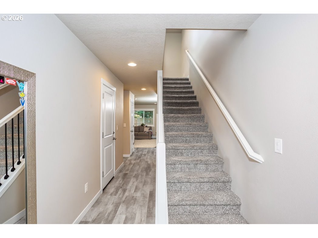 The super low HOA dues ($95/month) make this the best "affordability" value in Clark County. It is like living in a forest. Lots of privacy and a feeling of calm in back. Nice spot to barbecue or gather in a treed setting. 2 car garage, vinyl floors, 9-foot ceilings and expensive window coverings. Primary has a vaulted ceiling, walk-in closet and double sinks. 3 bedrooms plus a bonus area. Look at photo #5. The separation between units provides noise free living. Downstairs the units are separated by large buffer/storage closets which also eliminates any noise passing between the homes. Walking distance to shopping, dining, parks and schools. Quick access to I-5 and I-205. A very special home.