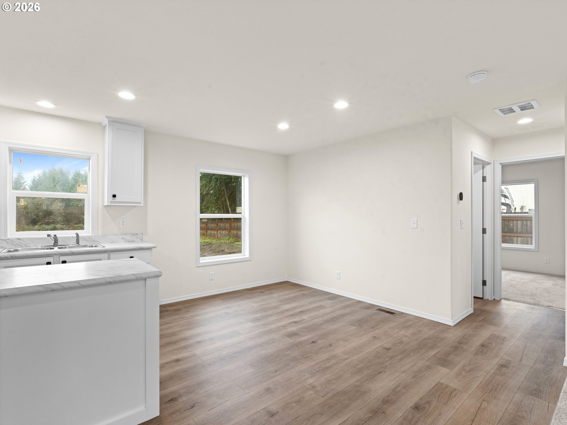 Hello there — I’m a brand-new manufactured home sitting on a generous .37-acre lot in Gaston’s Cherry Grove area, where the land is owned and conveyed together with the home for true ownership from day one. I offer 1,296 square feet of living space with three bedrooms and two full bathrooms, laid out in a way that feels comfortable and practical rather than overdone. My main living area is set up as a true great room, so the living, dining, and kitchen spaces connect easily and naturally. The kitchen includes new stainless steel appliances and a central island that keeps everyone in the mix, and there’s a separate laundry room with hookups so daily routines stay simple. Comfort is covered as well, with forced-air heating serving the home. Out back, the fenced yard is oversized and backed by woods, giving you space that feels open and private, with plenty of room for pets to run, play, and burn off energy. There’s also no shortage of parking here — whether it’s multiple vehicles, a boat, or an RV or trailer, there’s room without feeling crowded. I’m served by public water and have a brand-new septic system already in place. Day-to-day errands are easy, with Gaston Market located about 0.3 mile away for groceries and essentials, along with nearby spots for coffee, casual meals, and local services right in town. Forest Grove is roughly ten minutes away when you need larger grocery stores, retail, dining, medical offices, and Pacific University amenities. Outdoor recreation is close at hand too, with access to the Banks-Vernonia Trail for biking and walking, nearby parks, and scenic back roads that make the area popular for those who enjoy spending time outside. Gaston itself is known for its small-town feel, local schools, and strong sense of community, making it a place people choose for the lifestyle as much as the setting. I offer a comfortable, modern place to land, with room to breathe, space to spread out, and the convenience of everyday amenities close by.