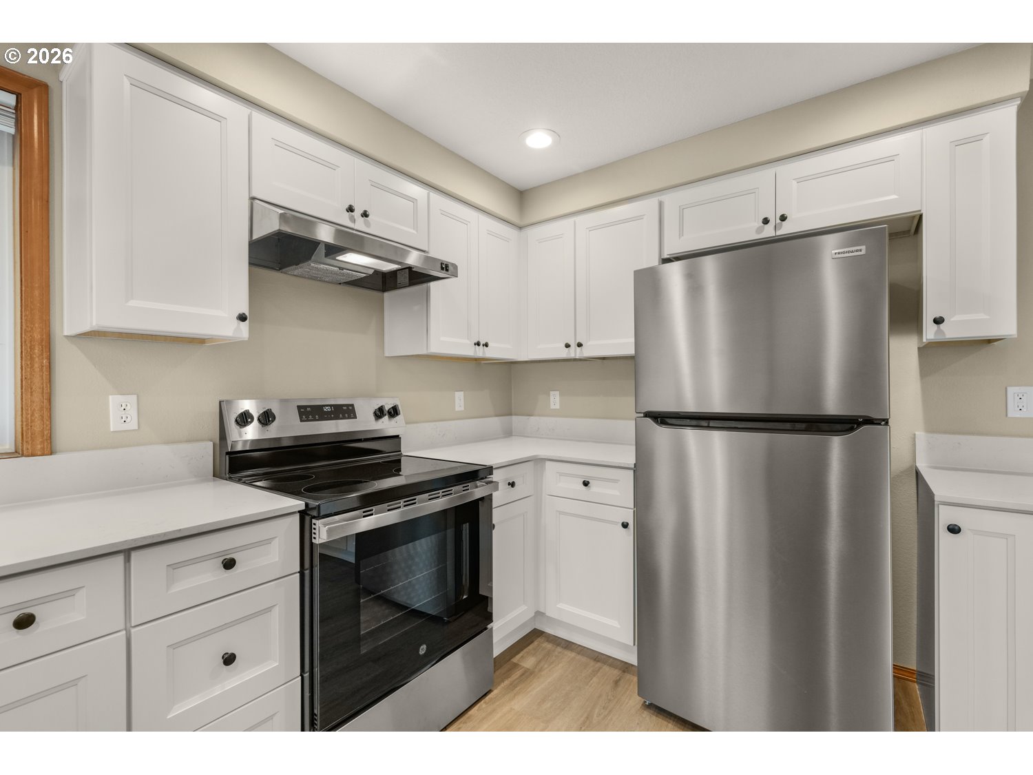Move-in ready and beautifully updated, this bright and airy home checks all the boxes. The main living space features attractive laminate flooring, a vaulted ceiling, and a cozy gas fireplace that's perfect for everyday living or entertaining. The kitchen shines with stainless steel appliances, quartz countertops, abundant prep and cupboard space, and an adjacent dining area with sliding doors that open to the backyard for easy indoor/outdoor dining. The primary bedroom offers a private en-suite bath with a walk-in shower, while two additional bedrooms and a full guest bath with tub/shower provide flexibility for guests, work, or hobbies. Enjoy a nicely sized, low-maintenance fenced backyard with a patio that's ideal for relaxing or gathering with friends. Fantastic location close to dining, shopping, schools, golf courses, and nature parks, with Intel’s Aloha campus less than 10 minutes away.